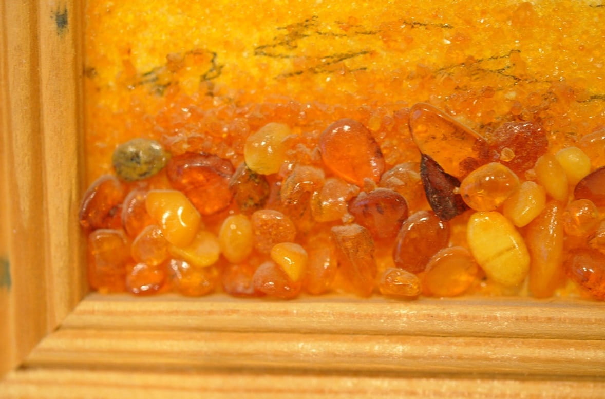 15,0 cm x 18,0 cm / PAMIĄTKA W BURSZTYNIE - MIĘDZYZDROJE