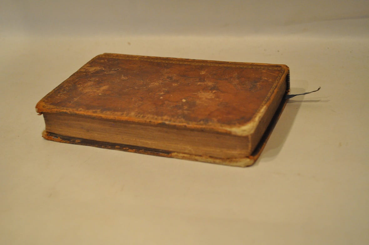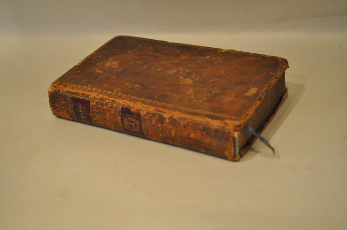 Grzbiet sześcio-polowy z tłoczonymi złoceniami, z szyldzikami w drugim i czwartym polu - z niewielkim ubytkiem górnej krawędzi.