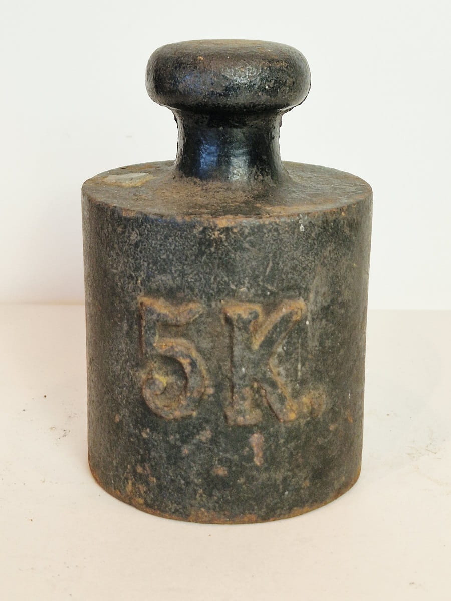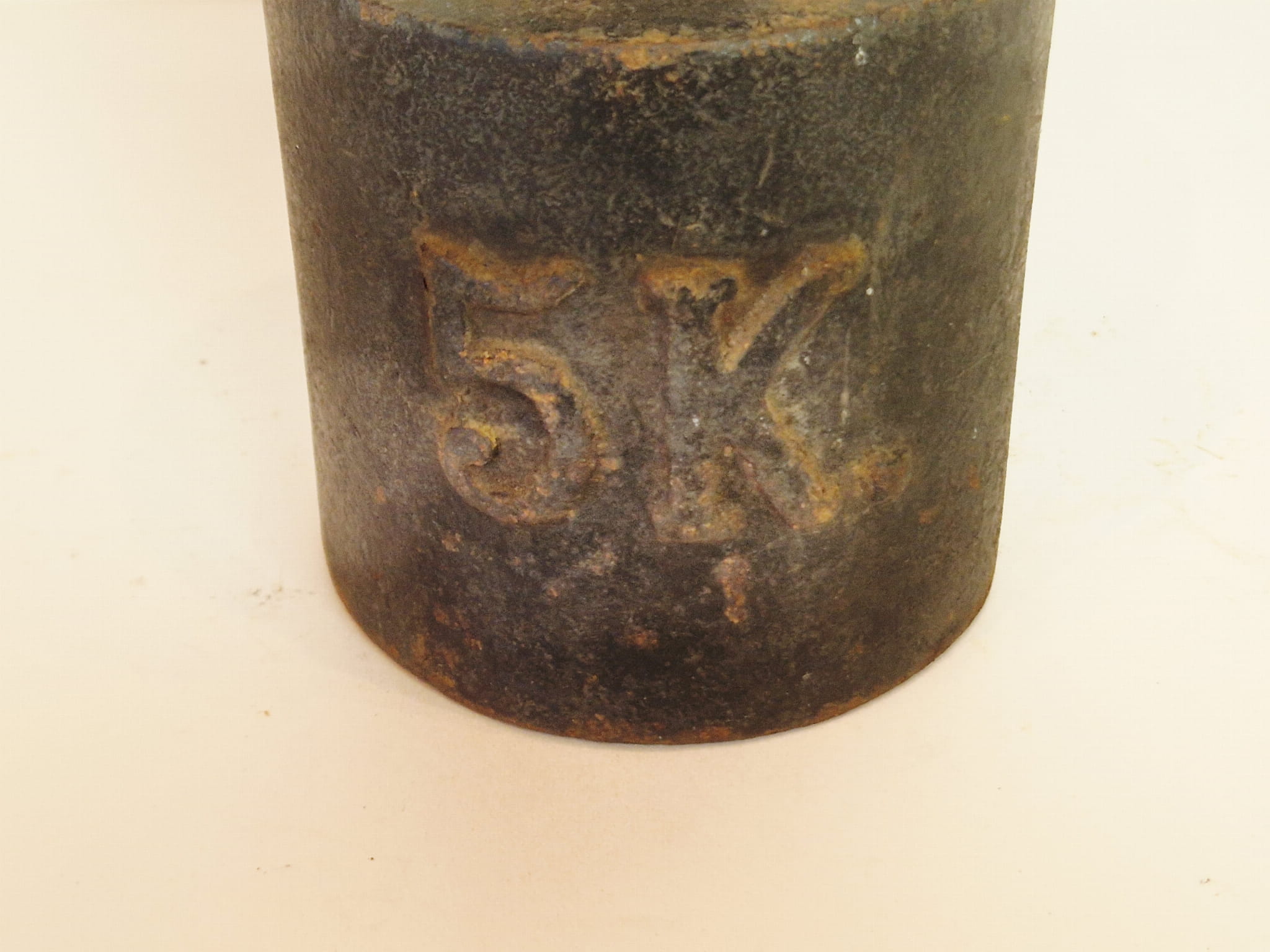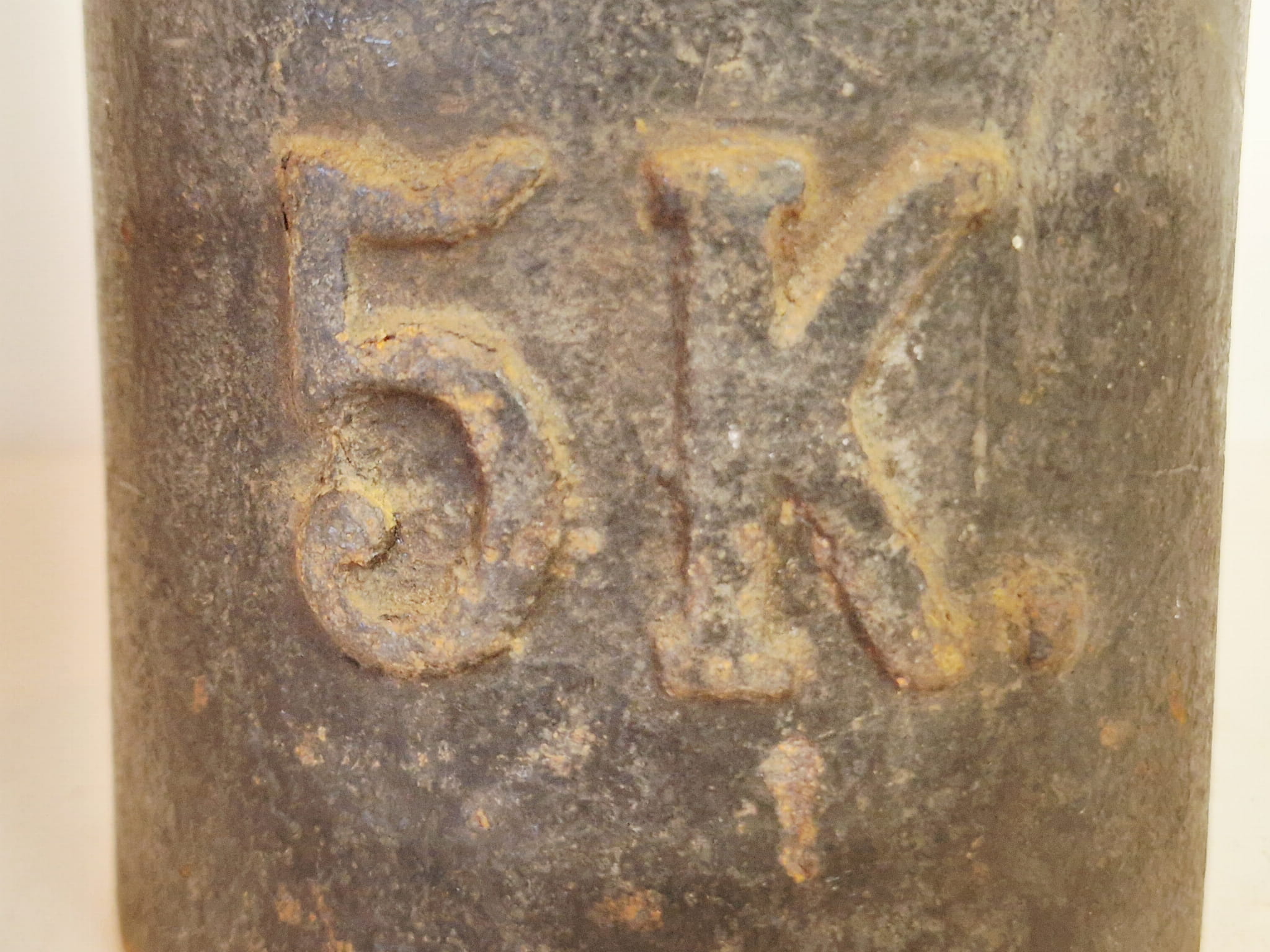 ZABYTKOWY (1884-1911) NIEMIECKI (Deutsches Reich) DUŻY (5 K.) METRYCZNY ŻELIWNY ODWAŻNIK HANDLOWY "5 K." (5 kg)