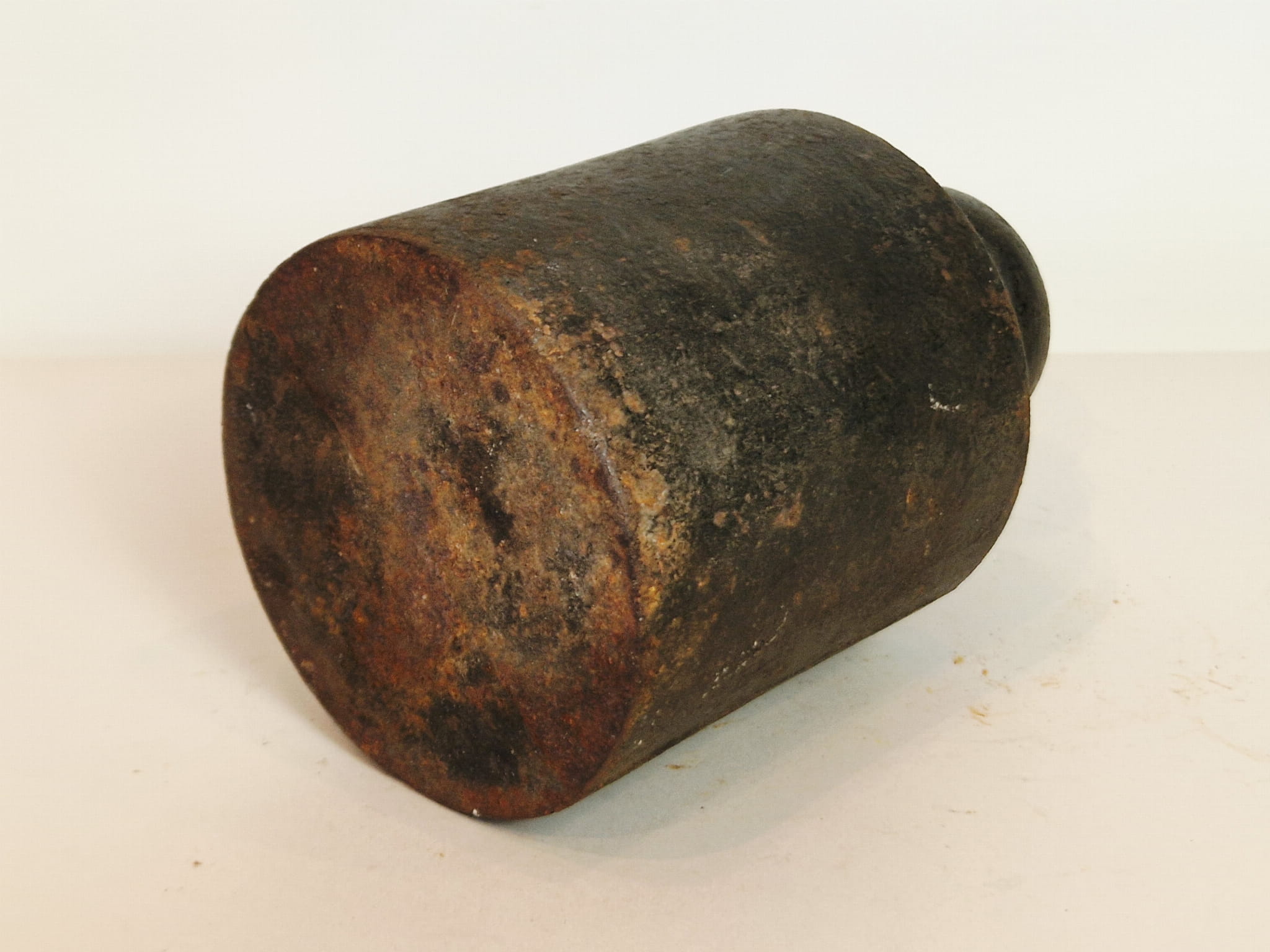 Na płaszczu odważnika czytelne, wypukłe oznaczenie nominału: