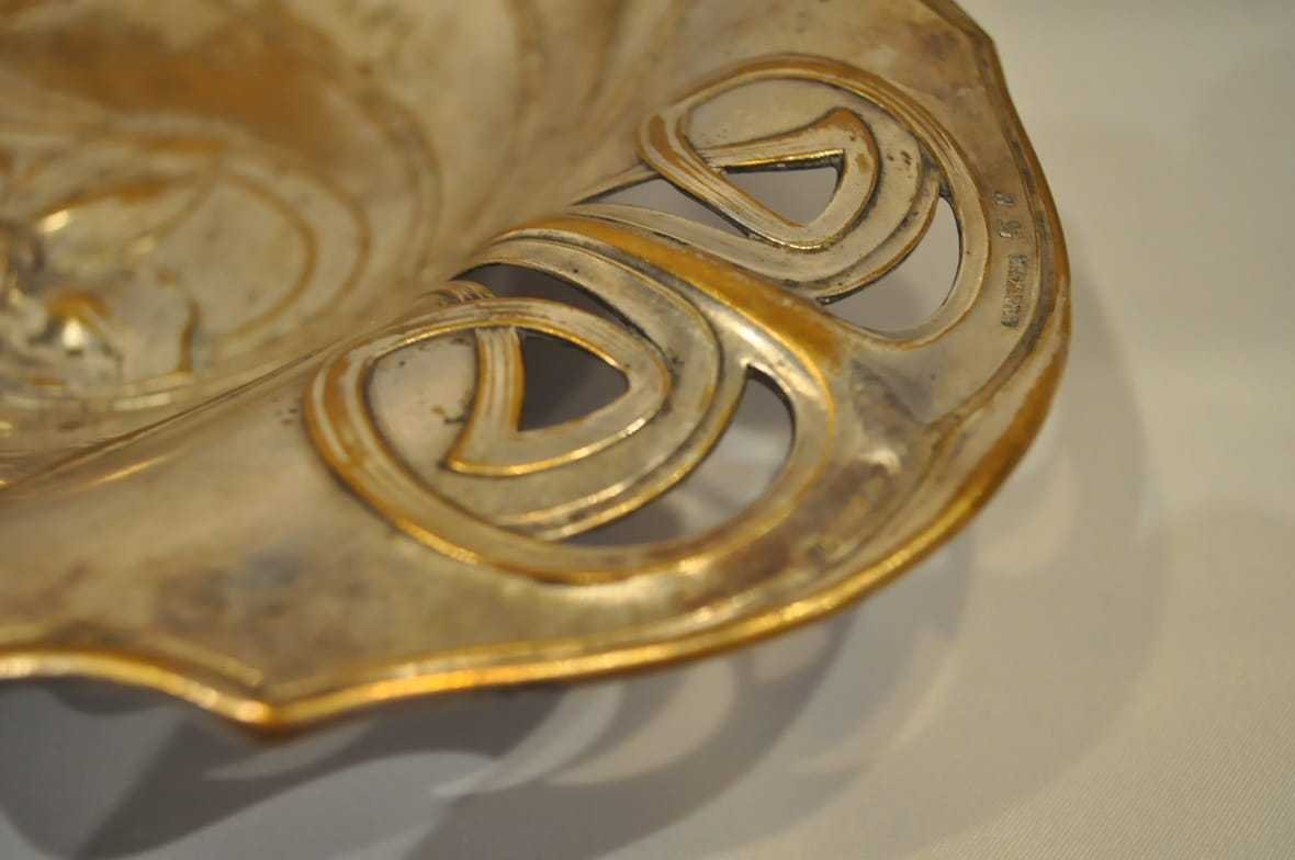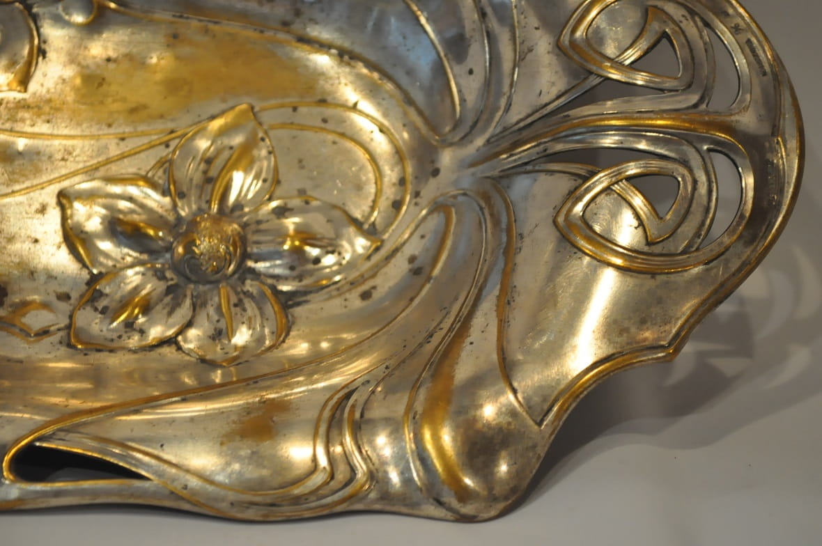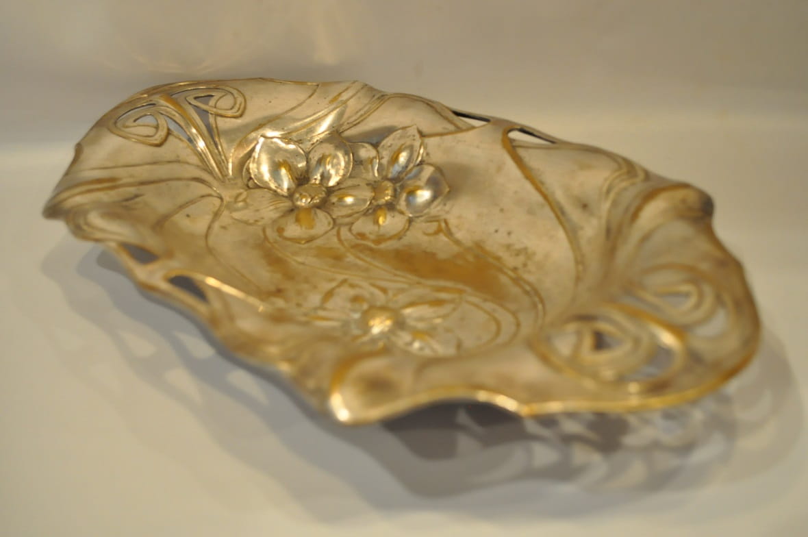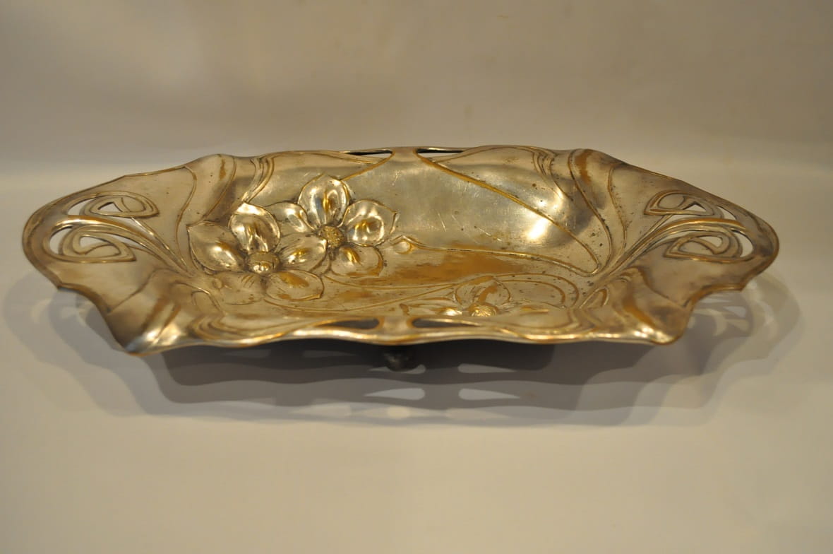(1886 - 1900) ZABYTKOWA POSREBRZANA PATERA IRYSY - PLEWKIEWICZ WARSZAWA