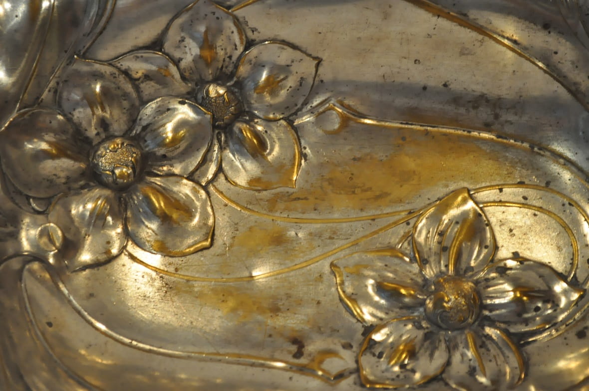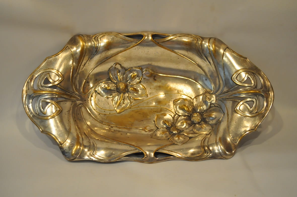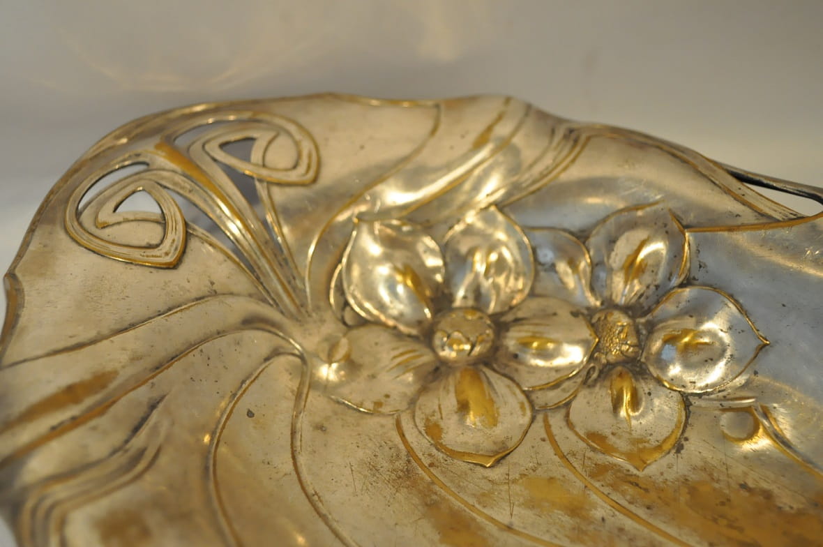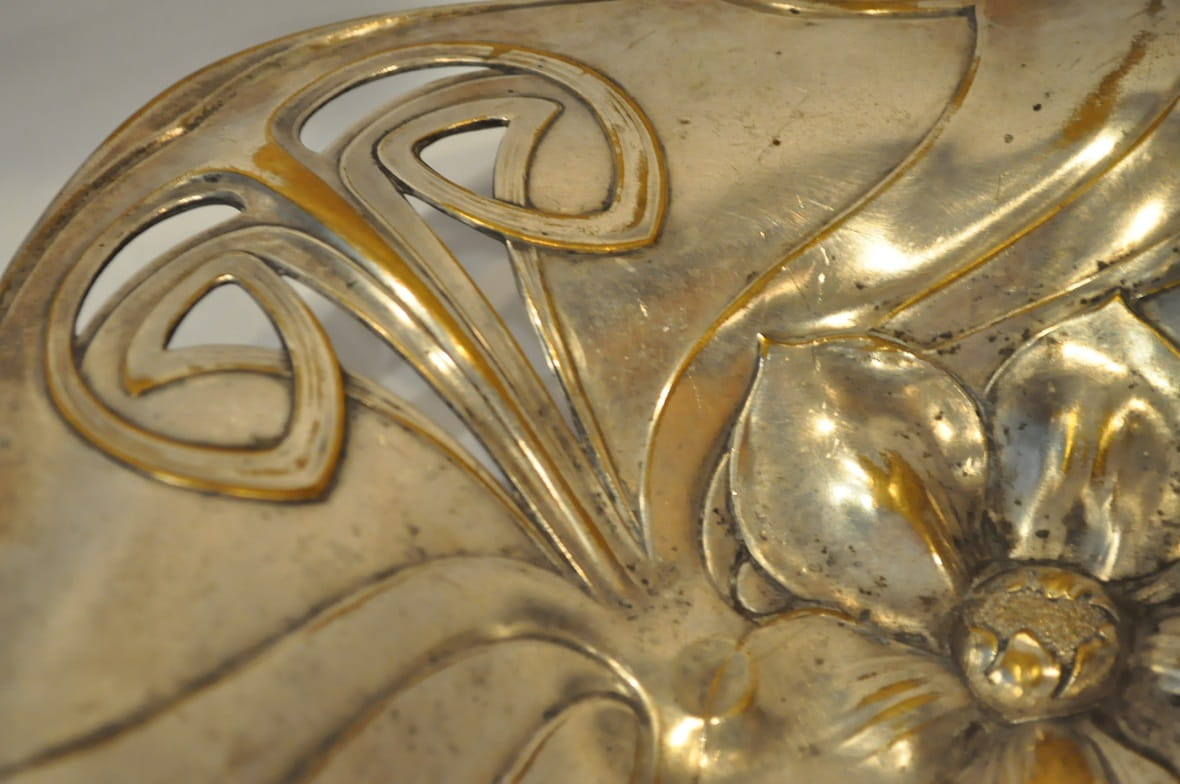 (1886 - 1900) ZABYTKOWA POSREBRZANA PATERA IRYSY - PLEWKIEWICZ WARSZAWA