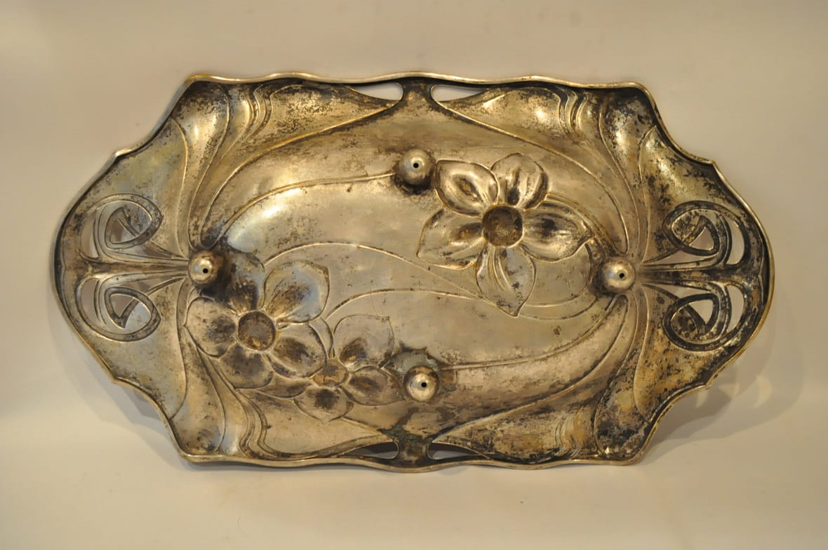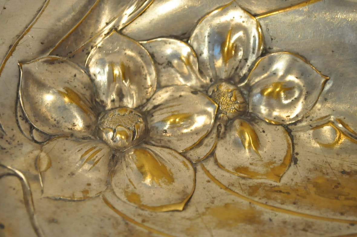ZABYTKOWA (1886-1900) POSREBRZANA PATERA "IRYSY"