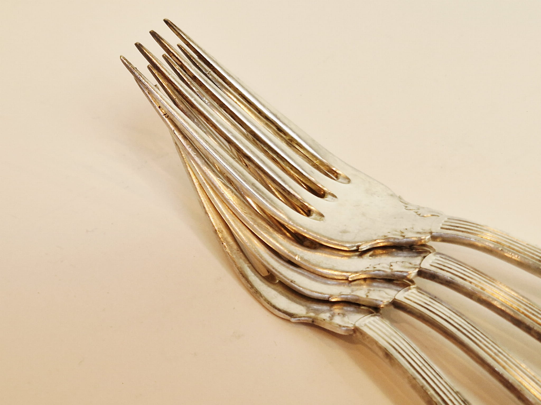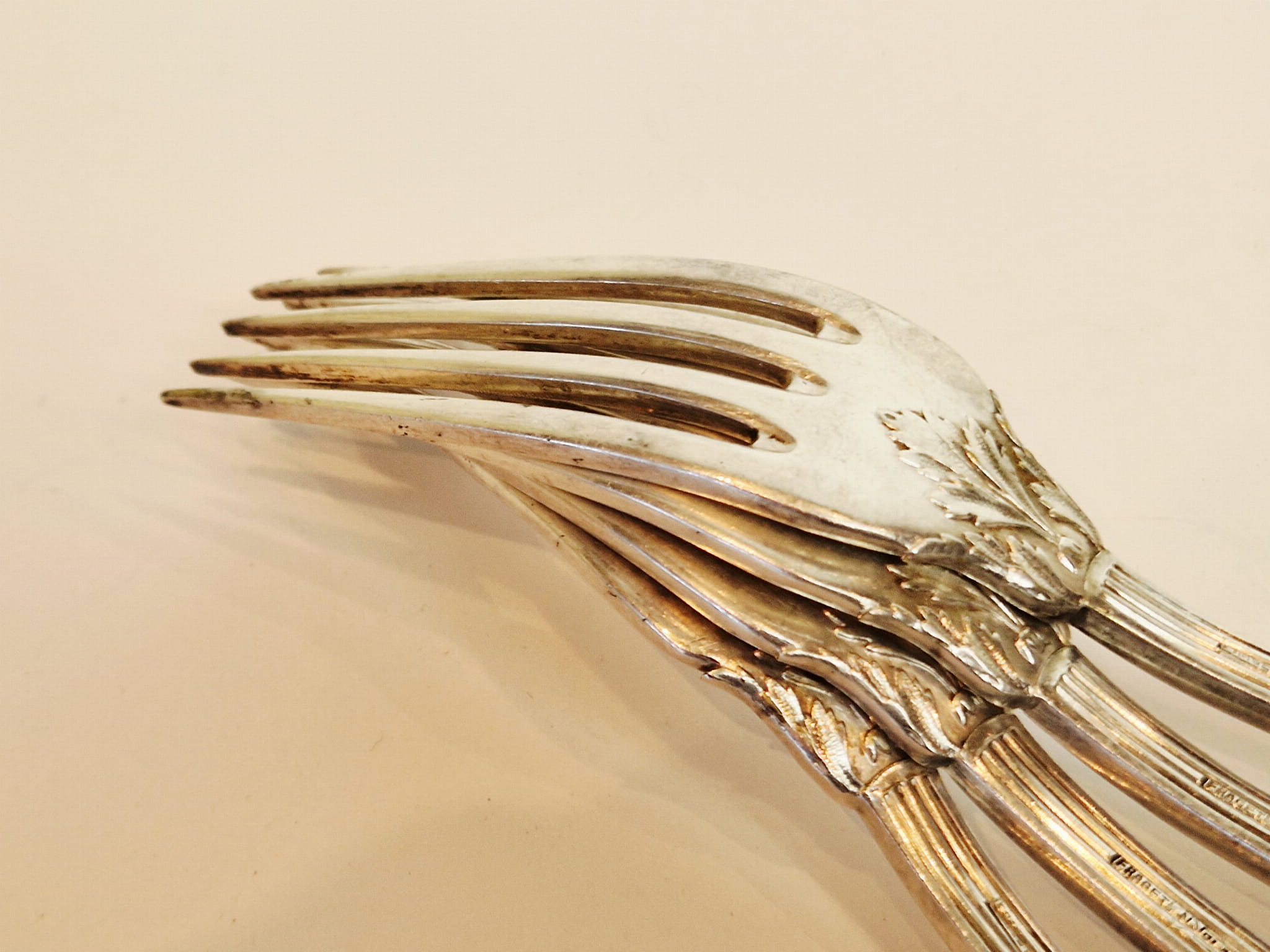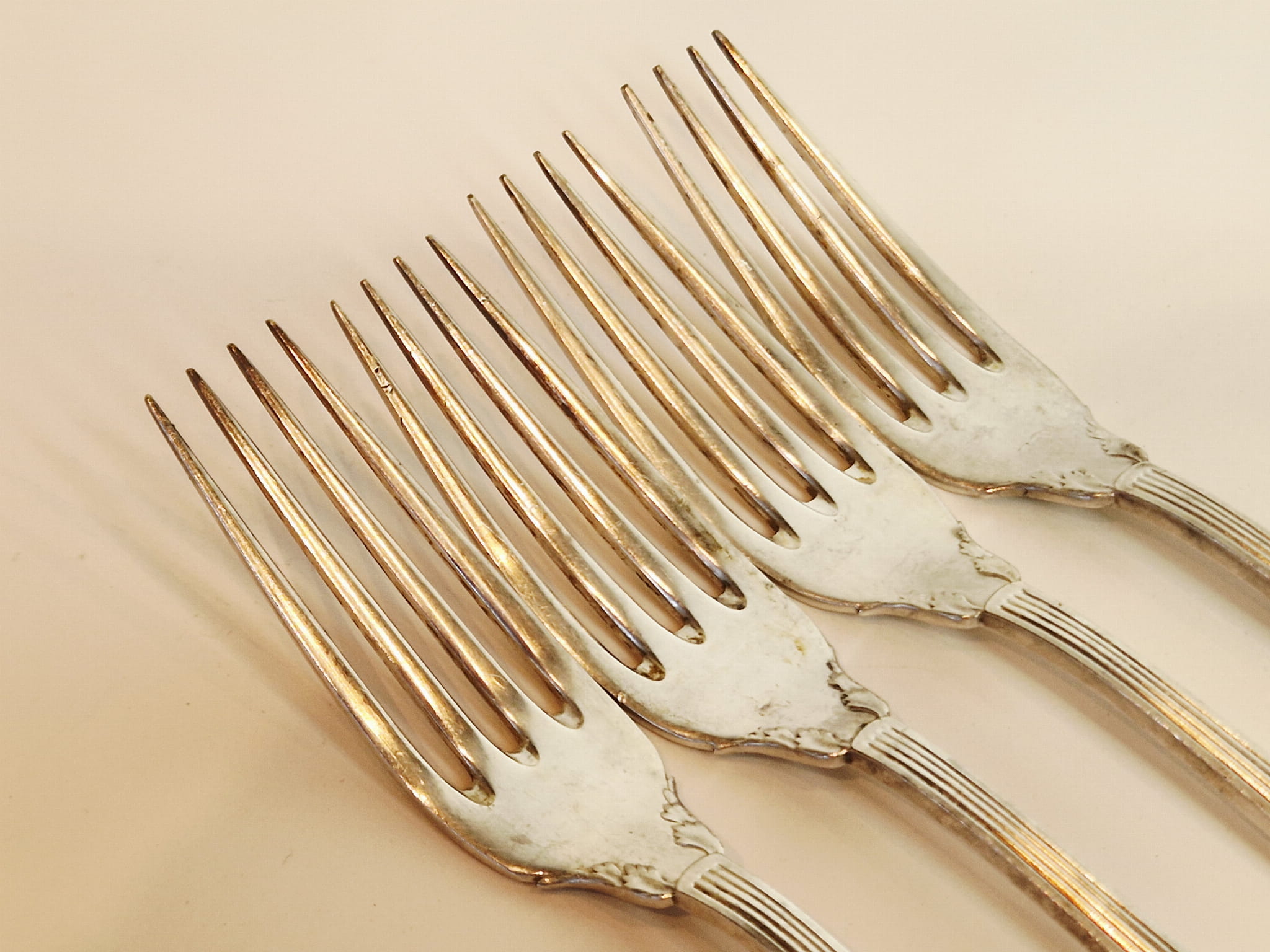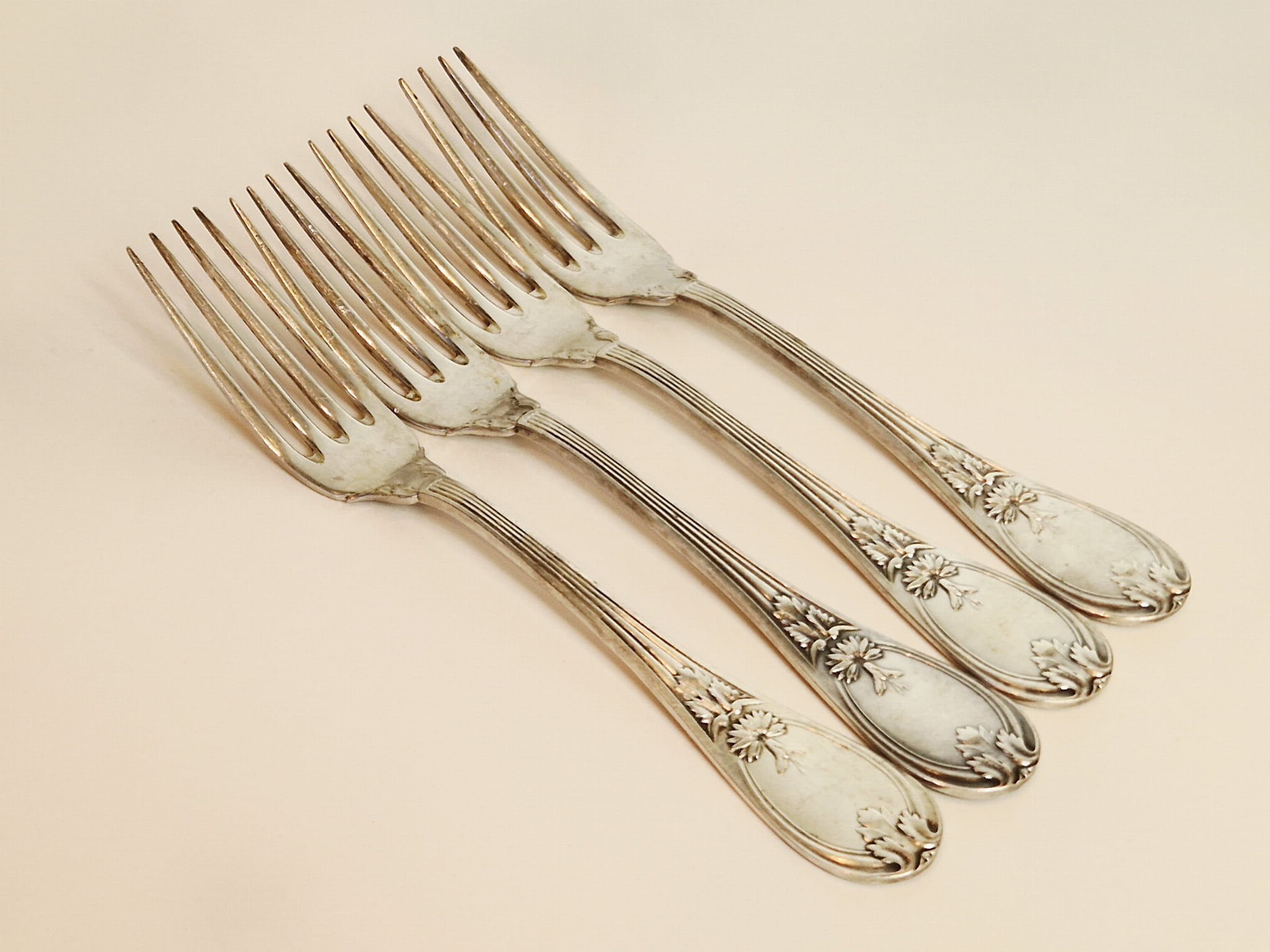 ZABYTKOWE (1896-1900) MASYWNE (85 g) POSREBRZANE WIDELCE STOŁOWE (21,6 cm)