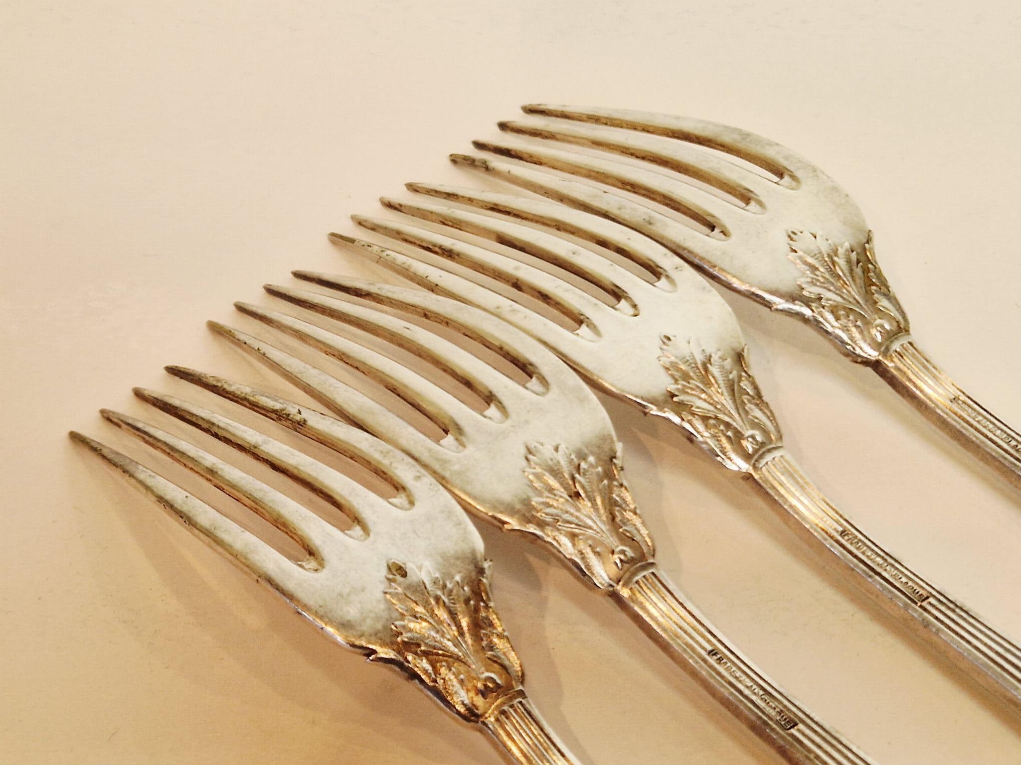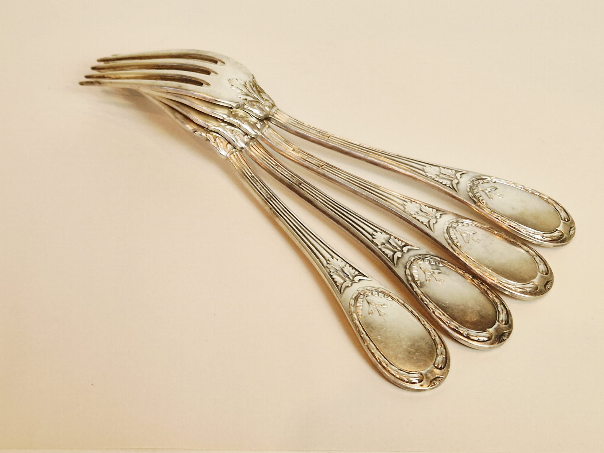 (1896 - 1900) WARSZAWA / 4 szt. - WIDELCE STOŁOWE FRAGET PLAQUE WZÓR TRIANON