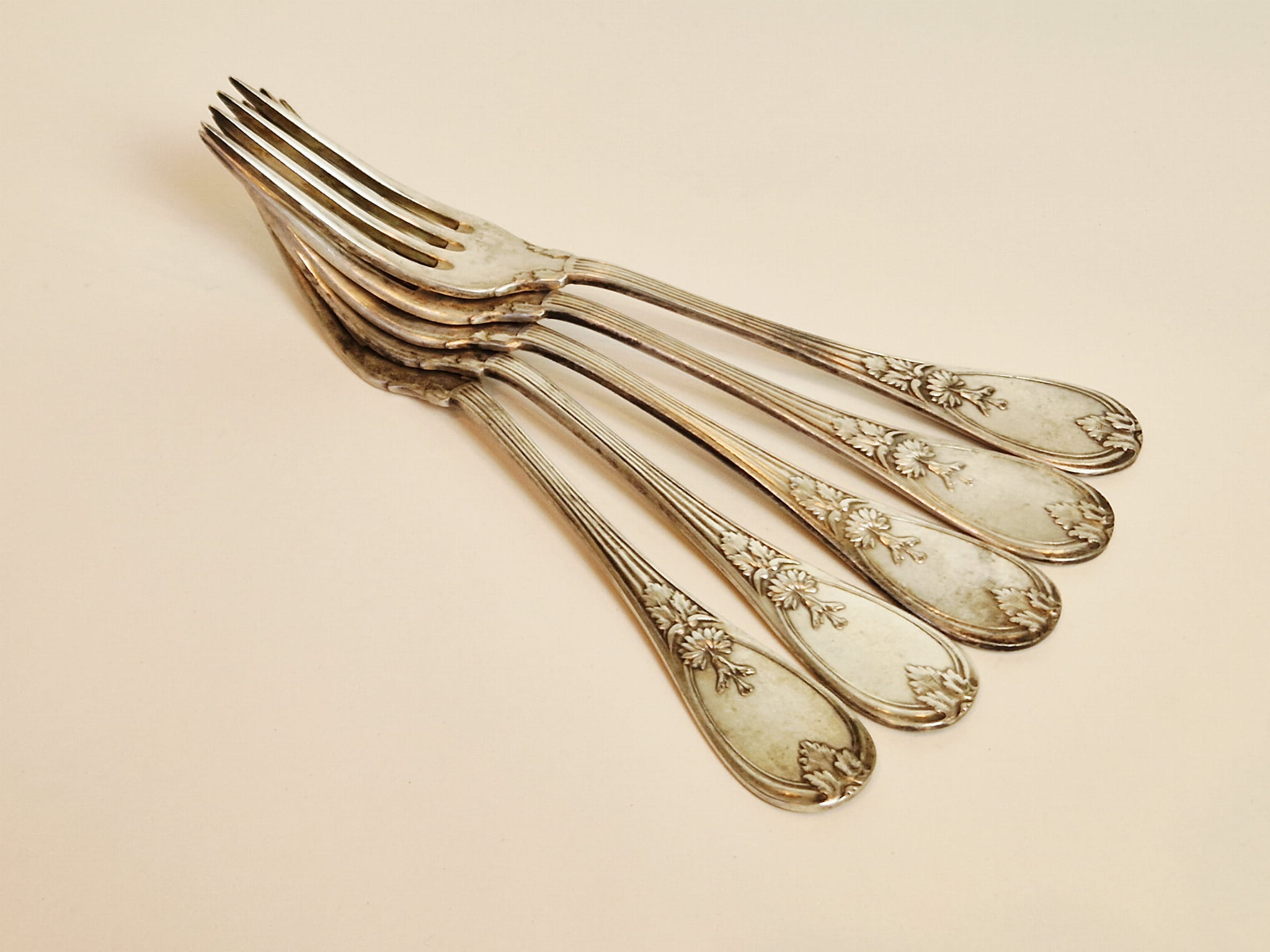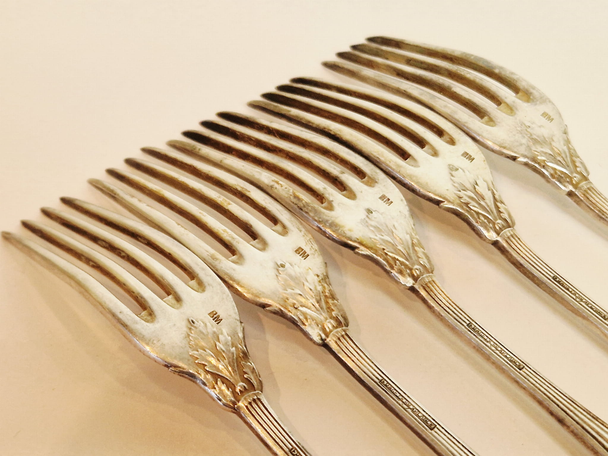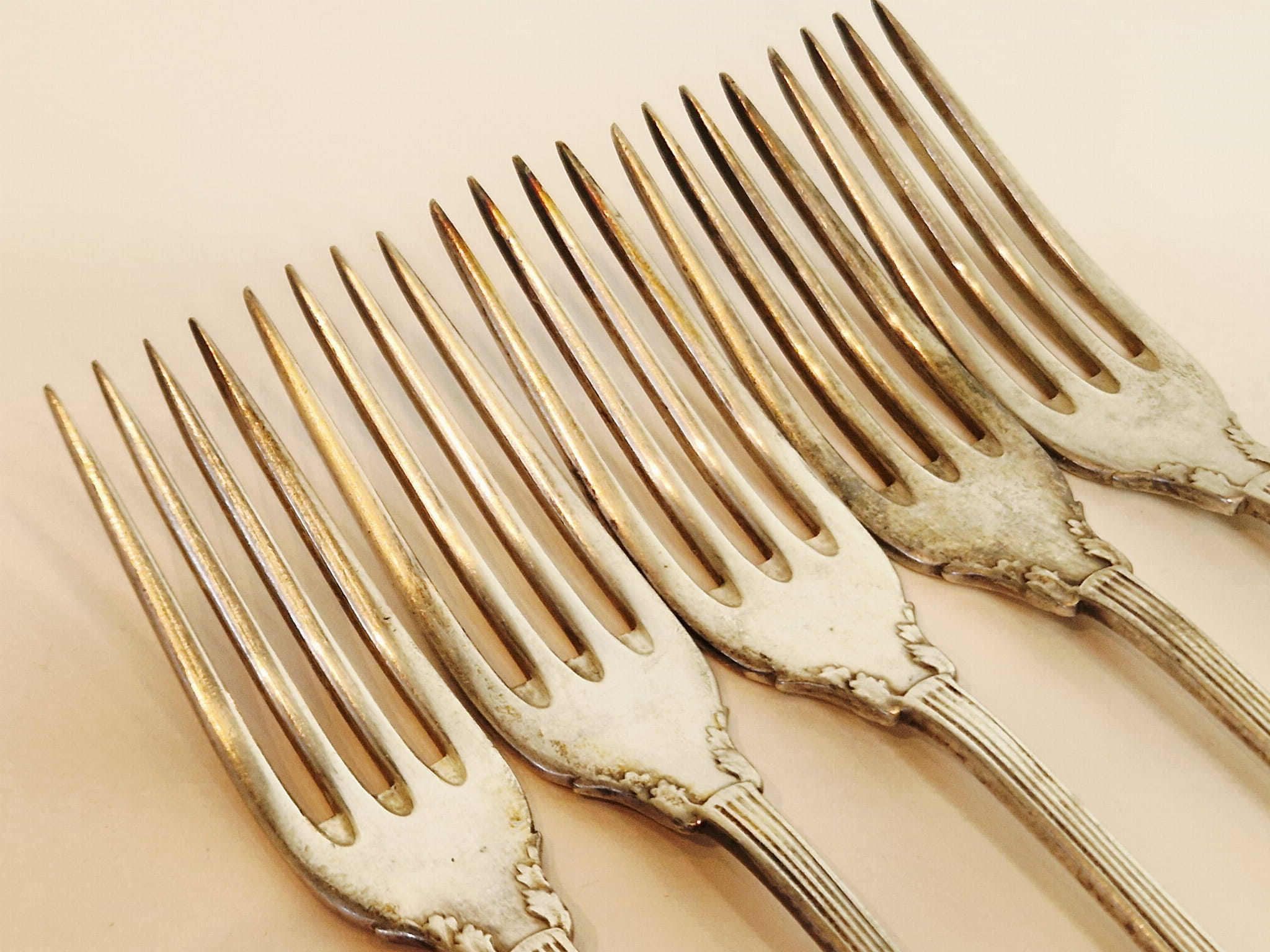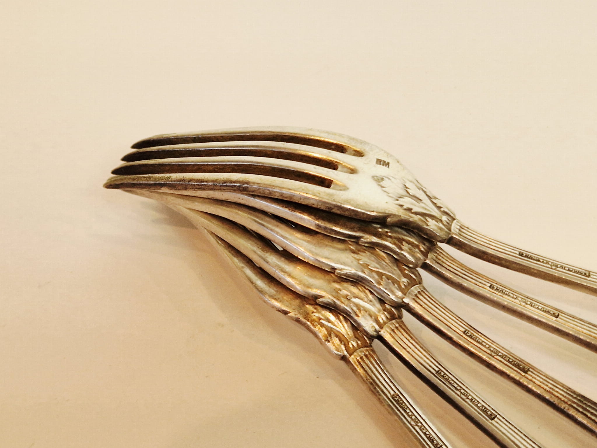 ZABYTKOWE (1896-1900) MASYWNE (61 g) POSREBRZANE WIDELCE STOŁOWE (19,2 cm)