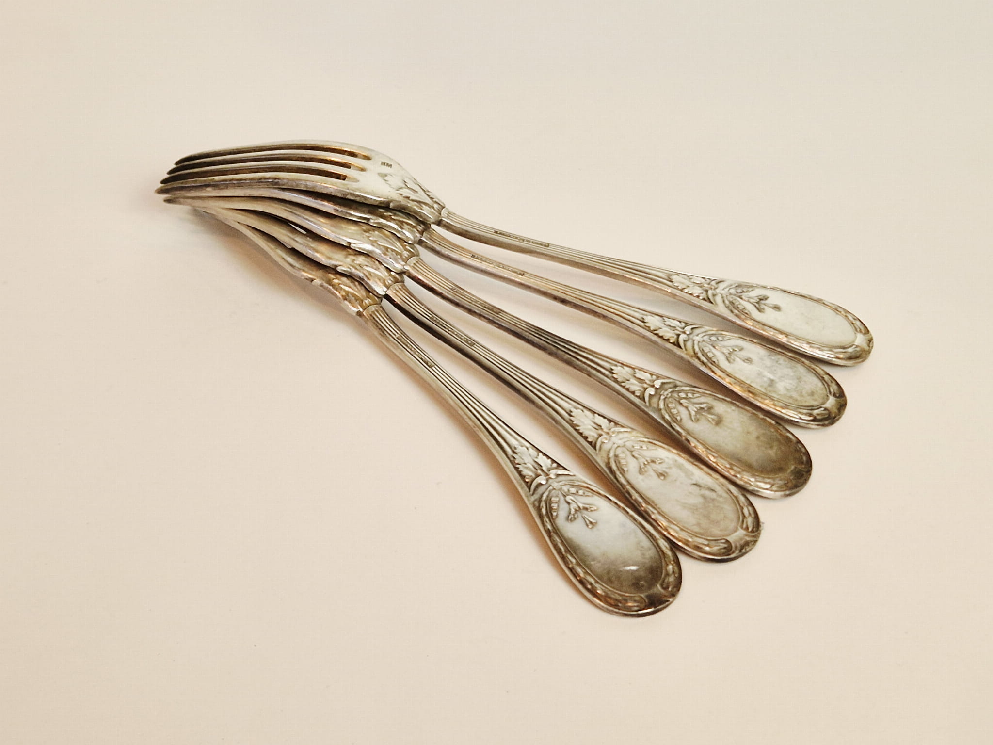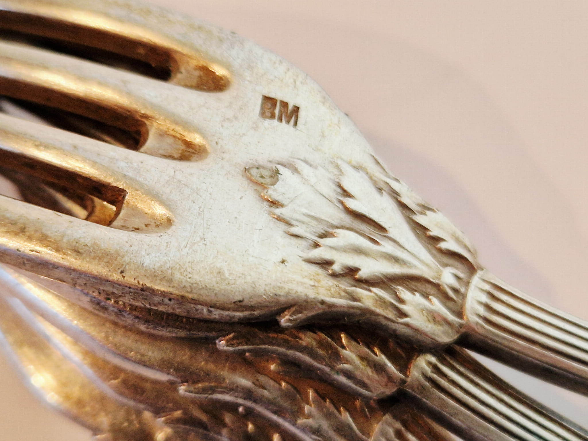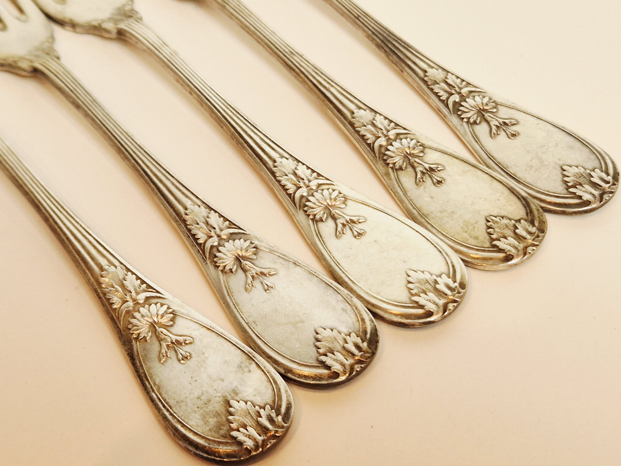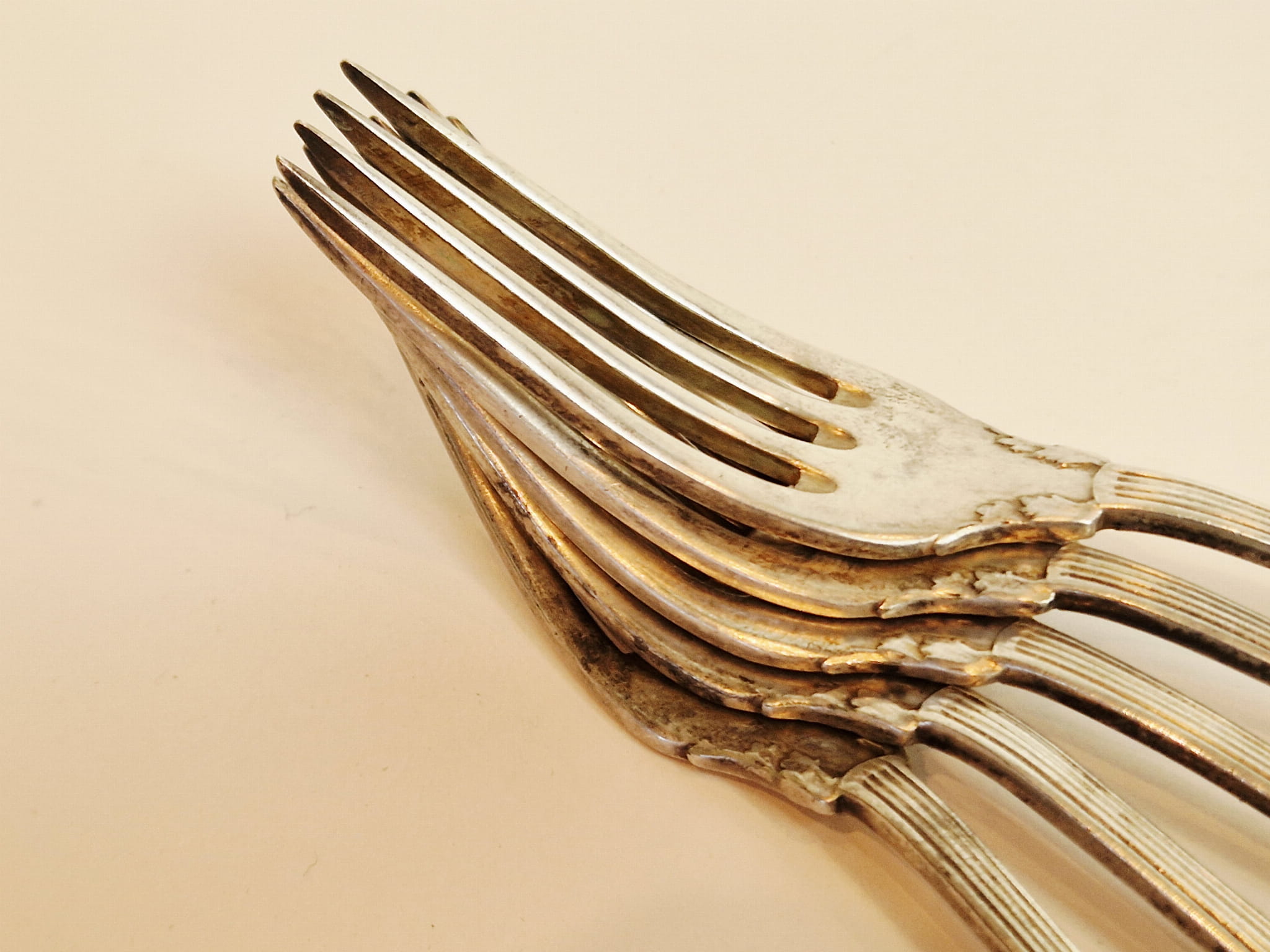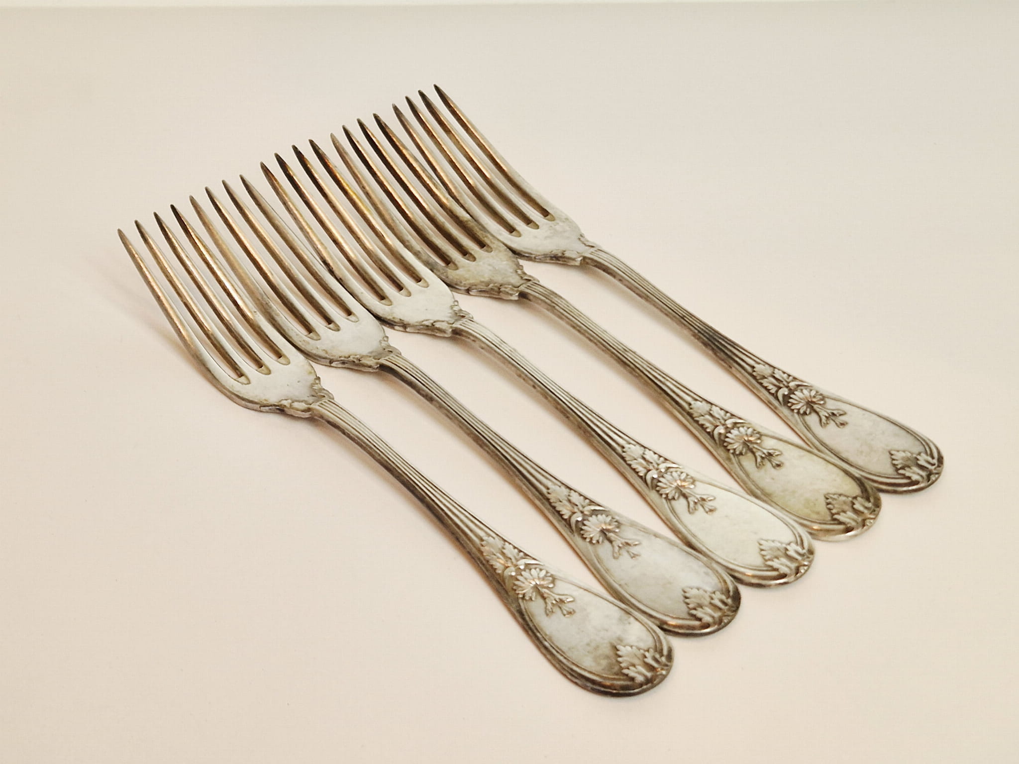 ZABYTKOWE (1896-1900) MASYWNE (61 g) POSREBRZANE WIDELCE STOŁOWE (19,2 cm)