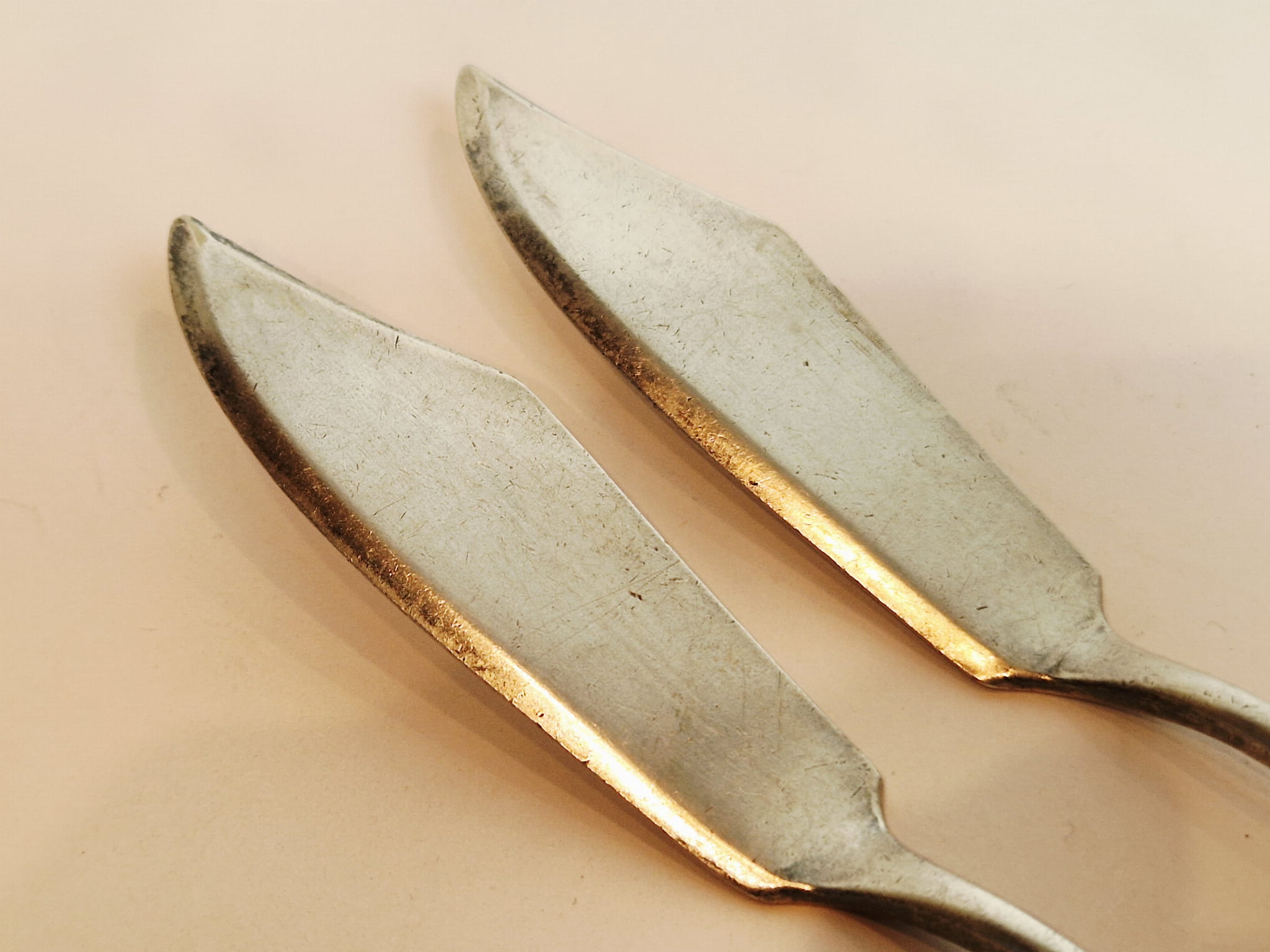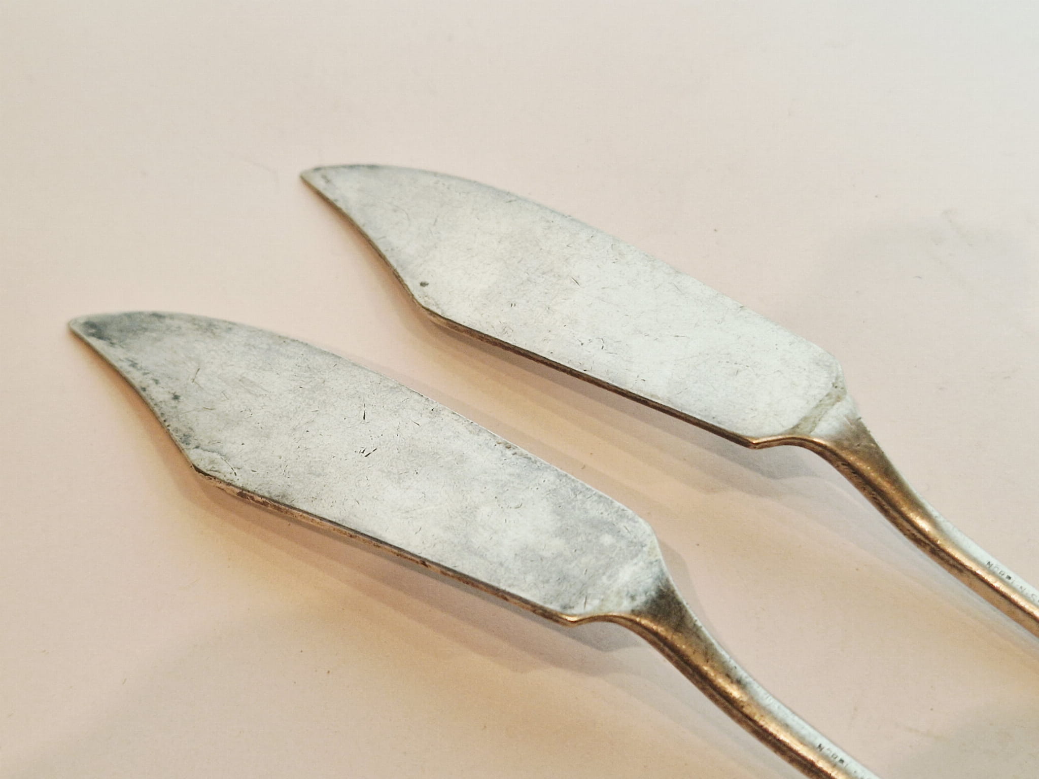 Noże w pierwotnym srebrzeniu - bez widocznych przetarć i ubytków powłoki.