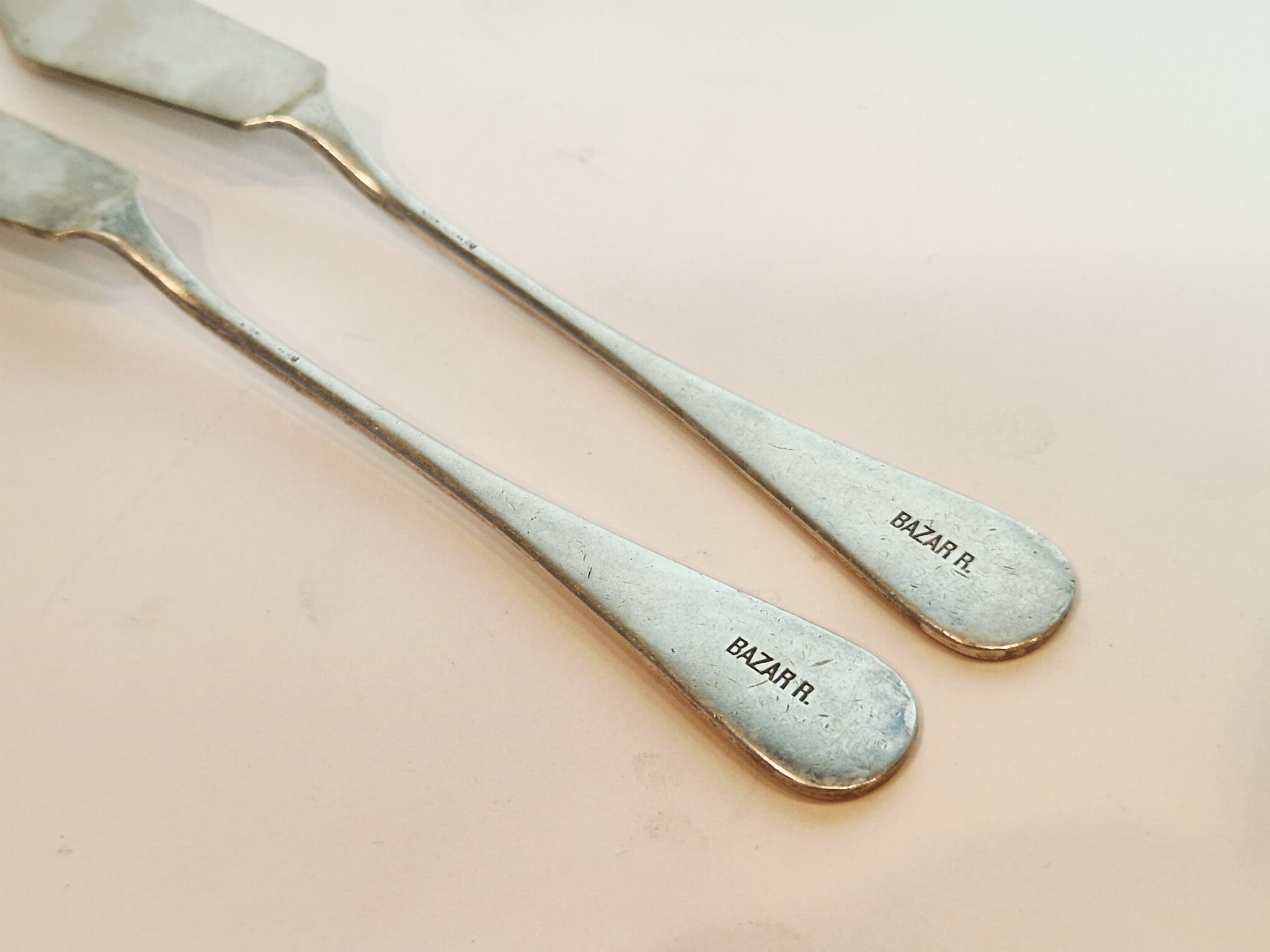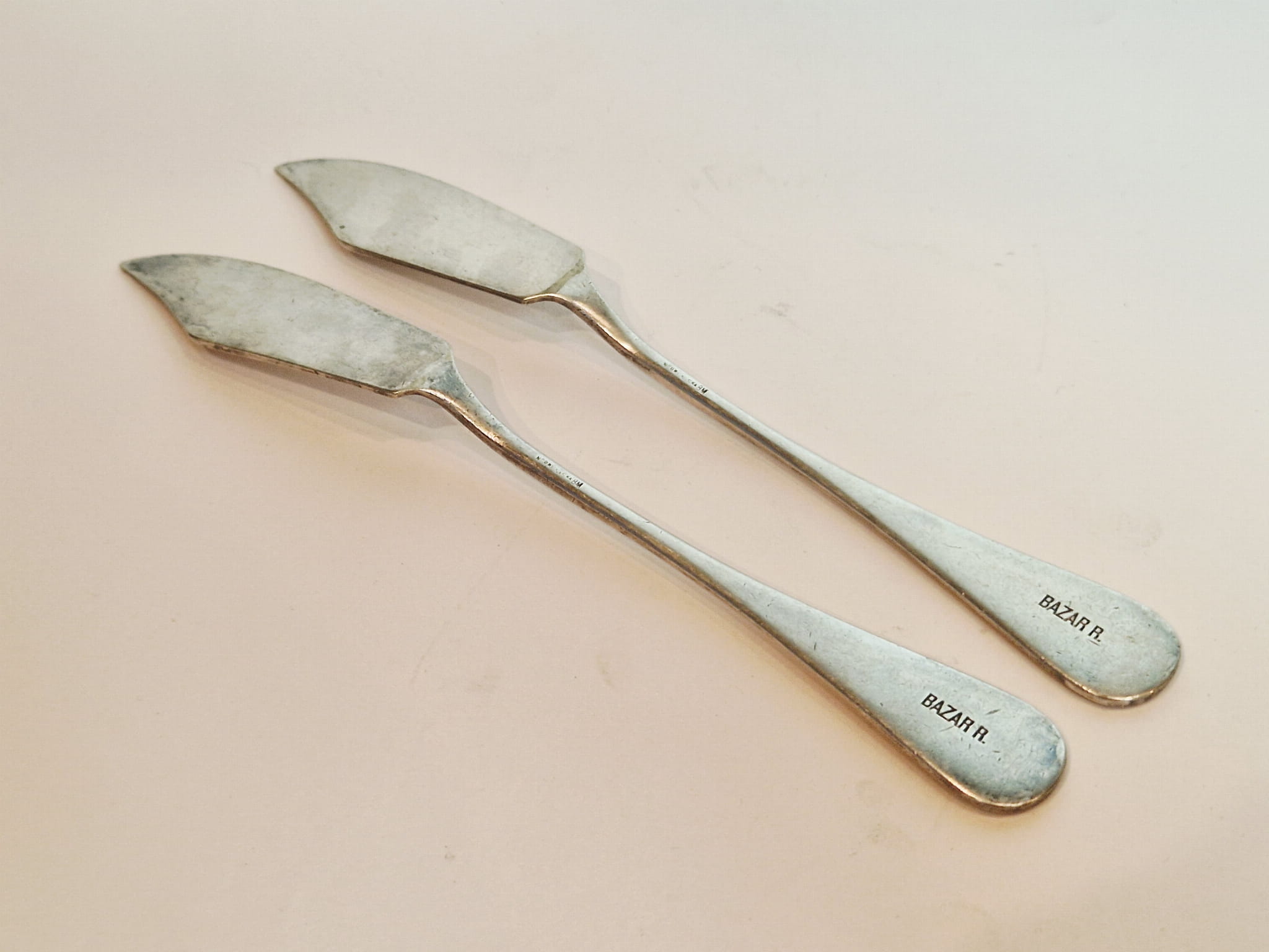 (1896 - 1901) HOTEL "BAZAR" POZNAŃ / 2 szt. - POSREBRZANE NOŻE DO RYB NORBLIN