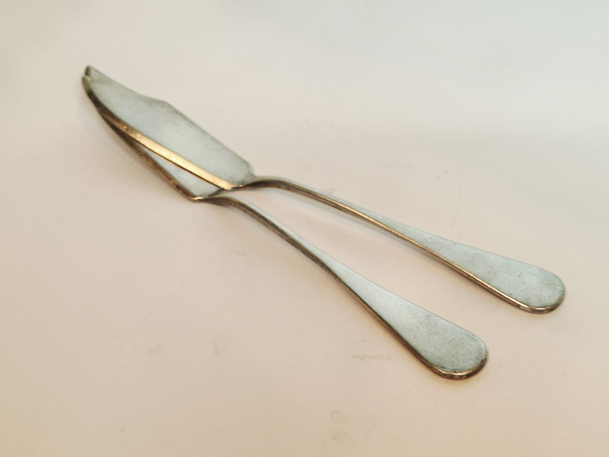 ZABYTKOWE (1896-1901) POSREBRZANE NOŻE DO RYB