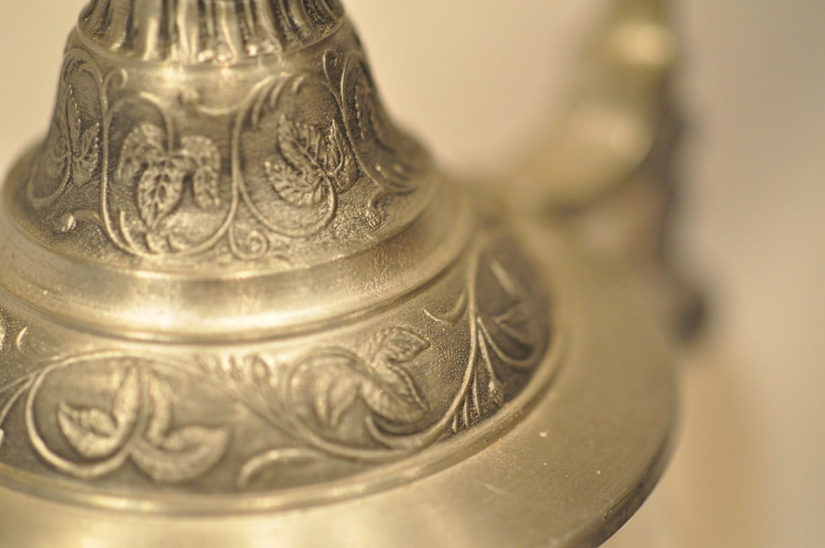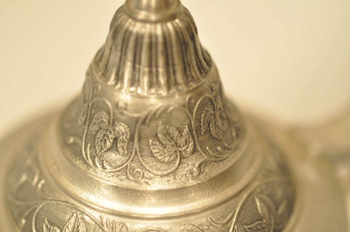Dekiel cynowy - bogato zdobiony.