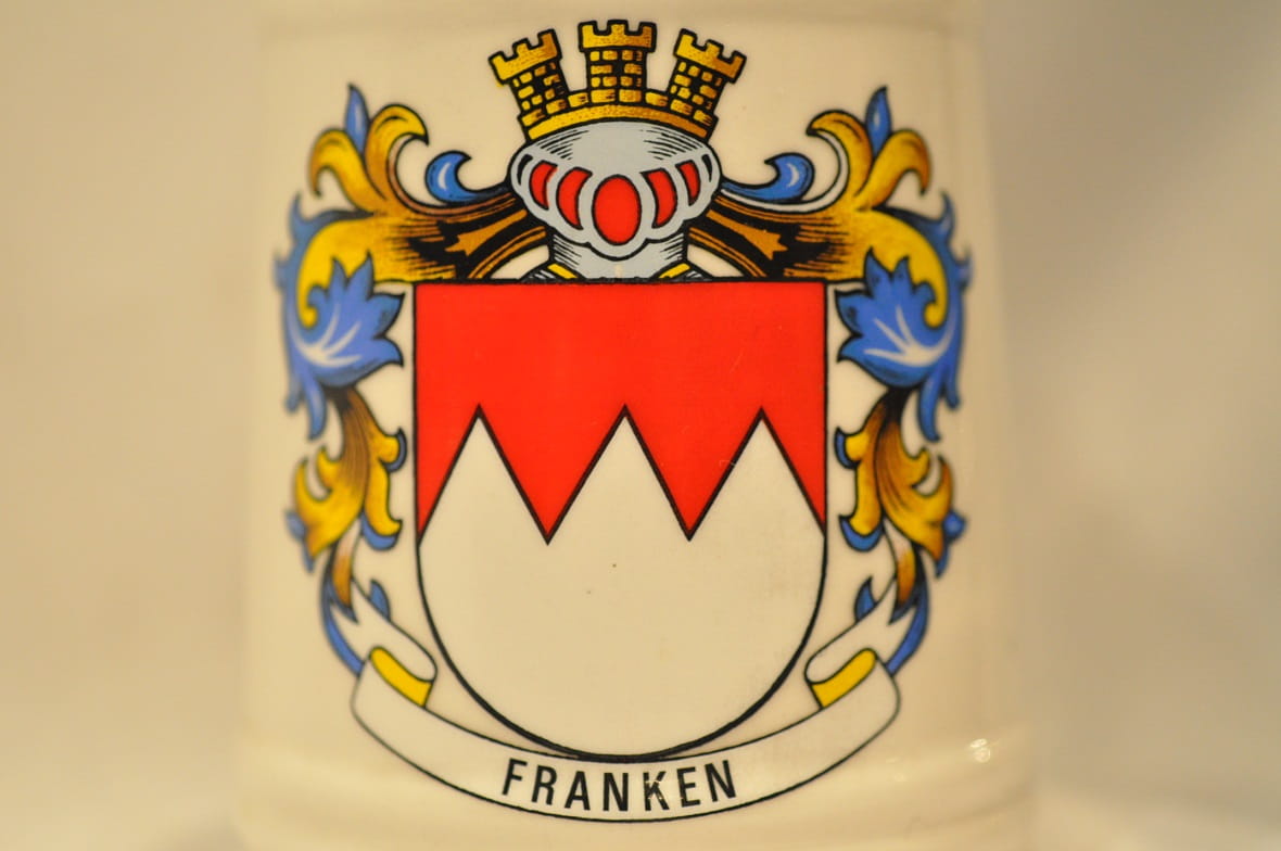 Na froncie kufla wielobarwny nadruk - herb "FRANKEN"