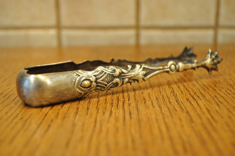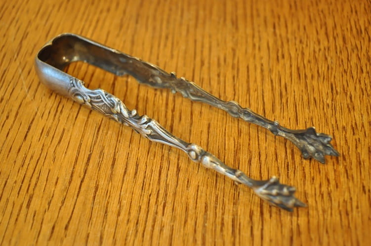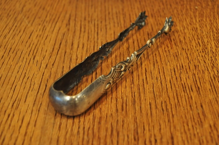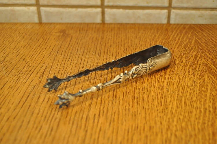 Szczypce posiadają pierwotne srebrzenie z minimalnymi przetarciami powłoki głównie na wyobleniach.