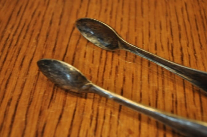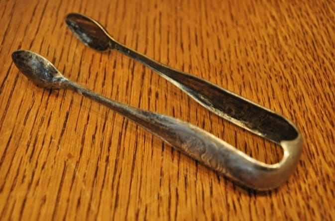 Szczypce posiadają pierwotne srebrzenie bez istotnych przetarć powłoki.