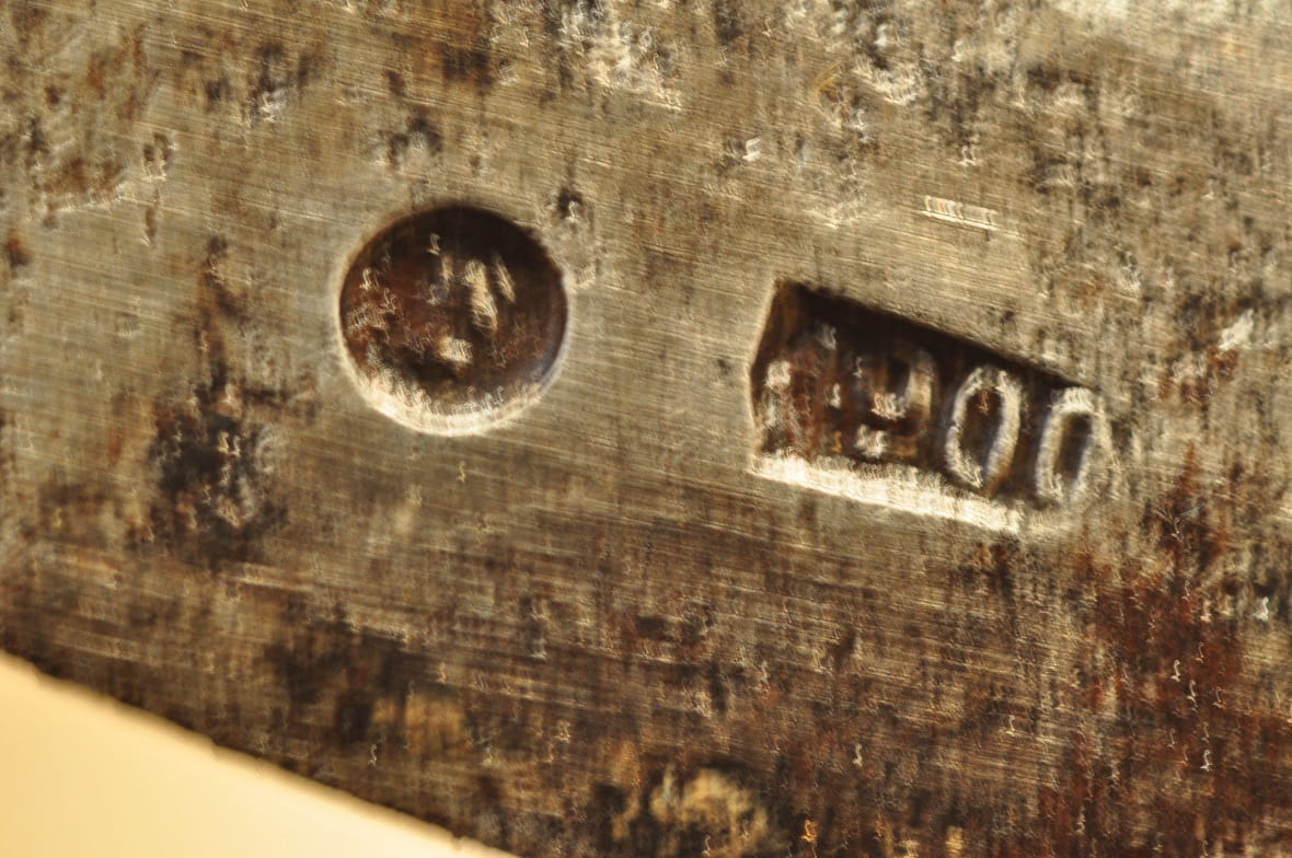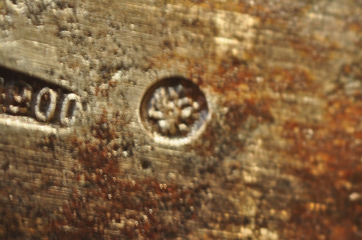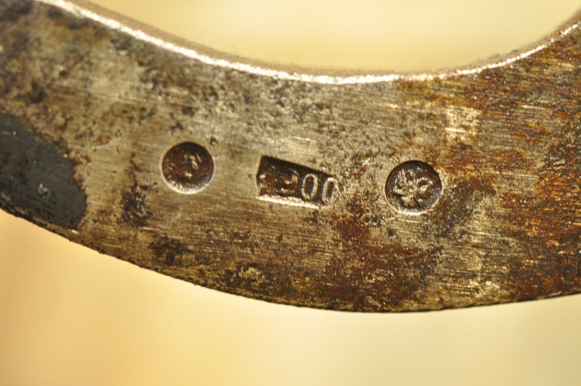Ramię główne z sygnaturami wytwórczymi oraz znakami legalizacji: