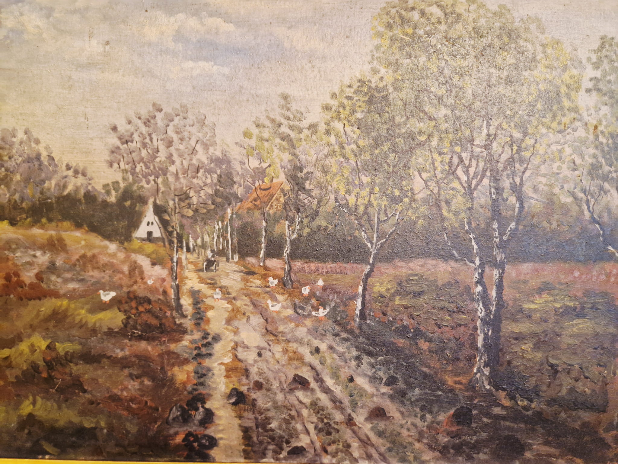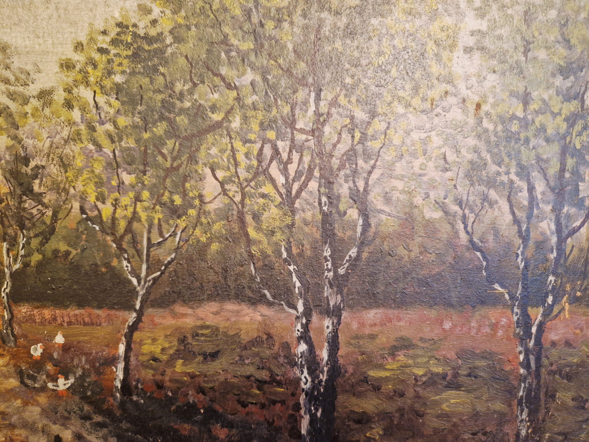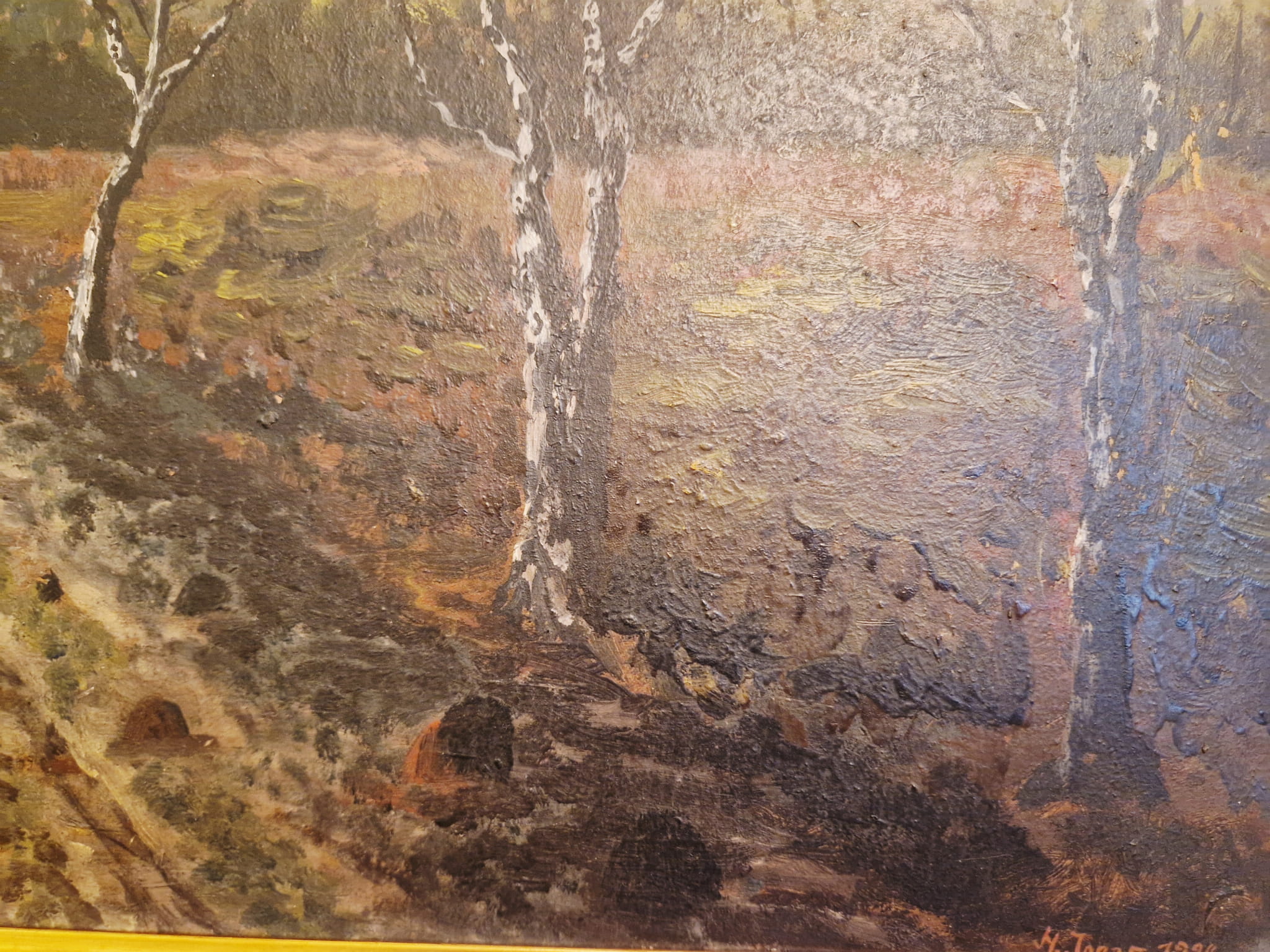 (1922) H. JONAS - "ALEJA BRZOZOWA" - OBRAZ OLEJNY NA DYKCIE (70cm x 49cm)