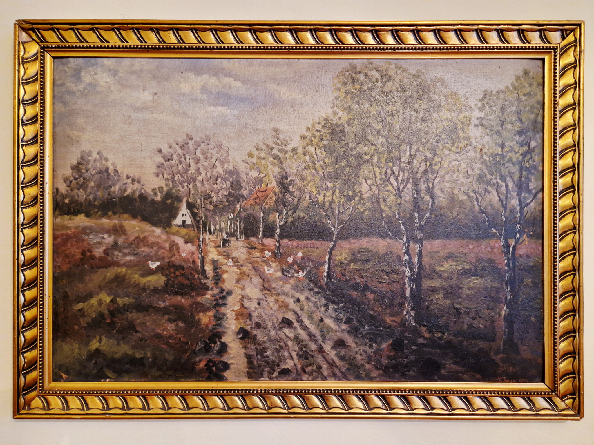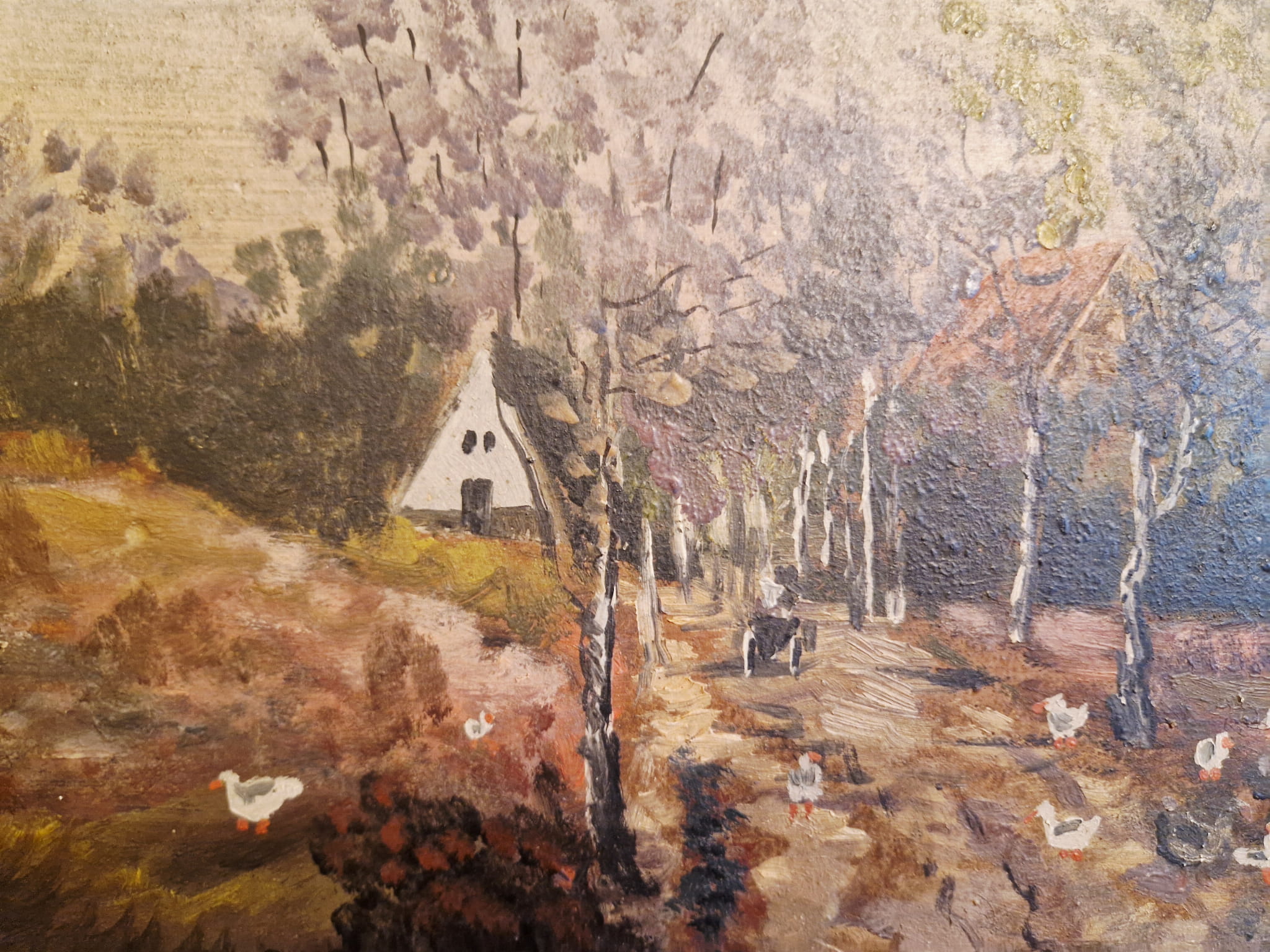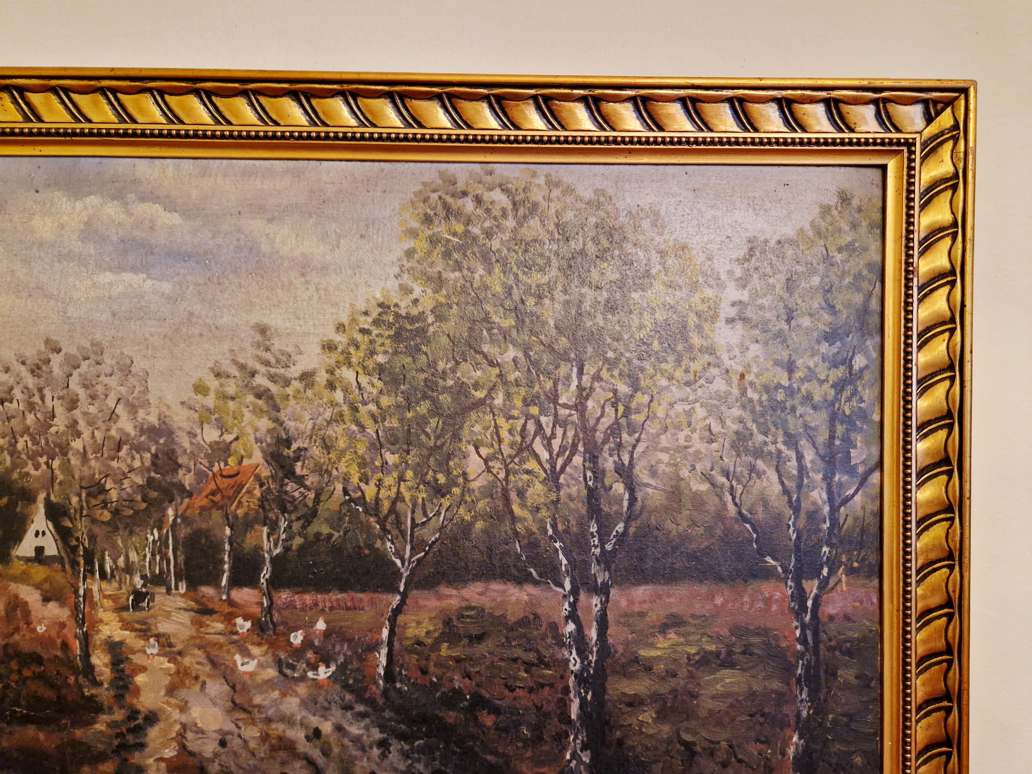 (1922) H. JONAS - "ALEJA BRZOZOWA" - OBRAZ OLEJNY NA DYKCIE (70cm x 49cm)