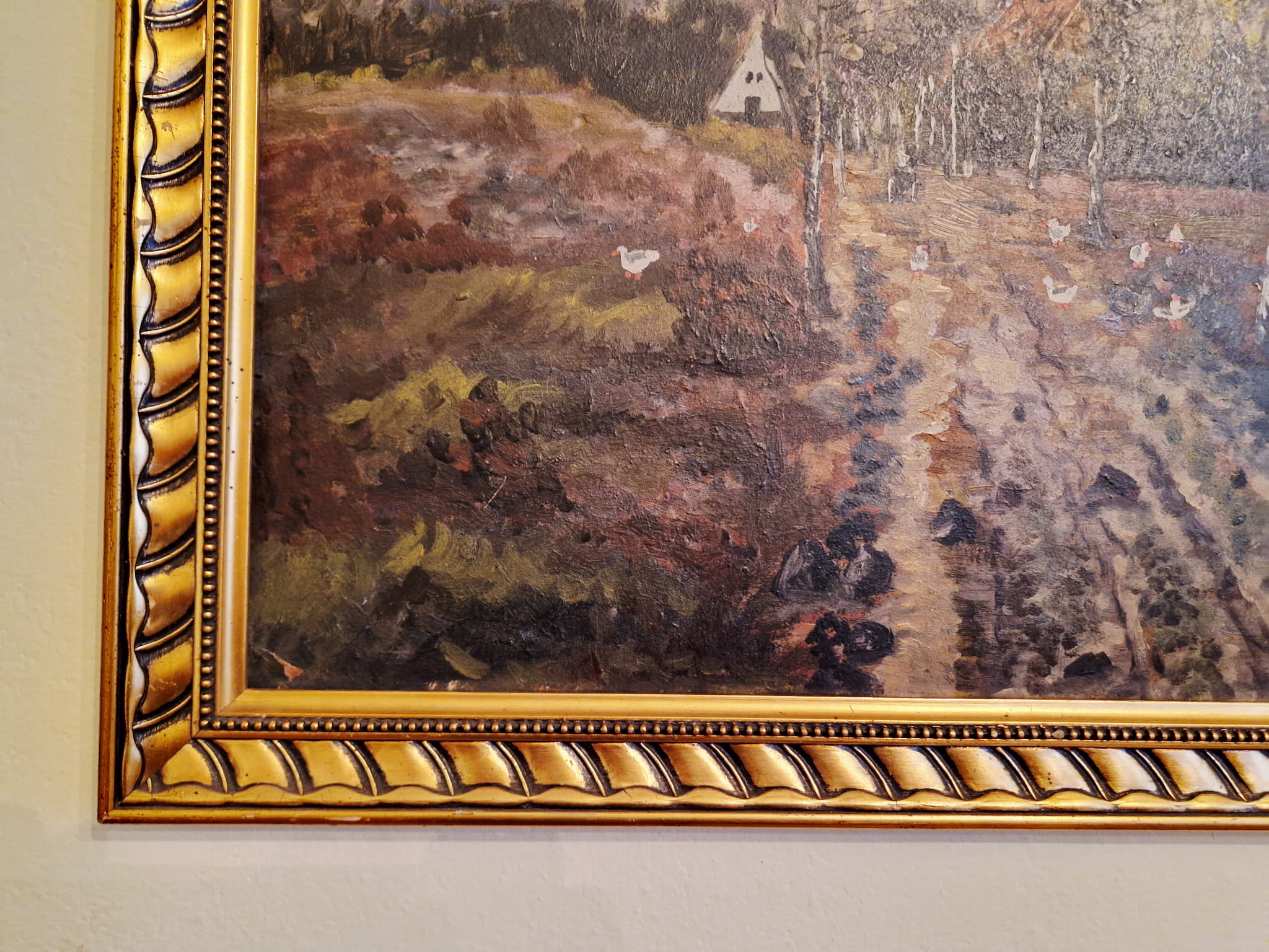 Oryginalna, przedwojenna rama ze sztukaterią - z umiarkowanymi uszkodzeniami - jeden ubytek (lewy, górny narożnik, odpryski, przytarcia.