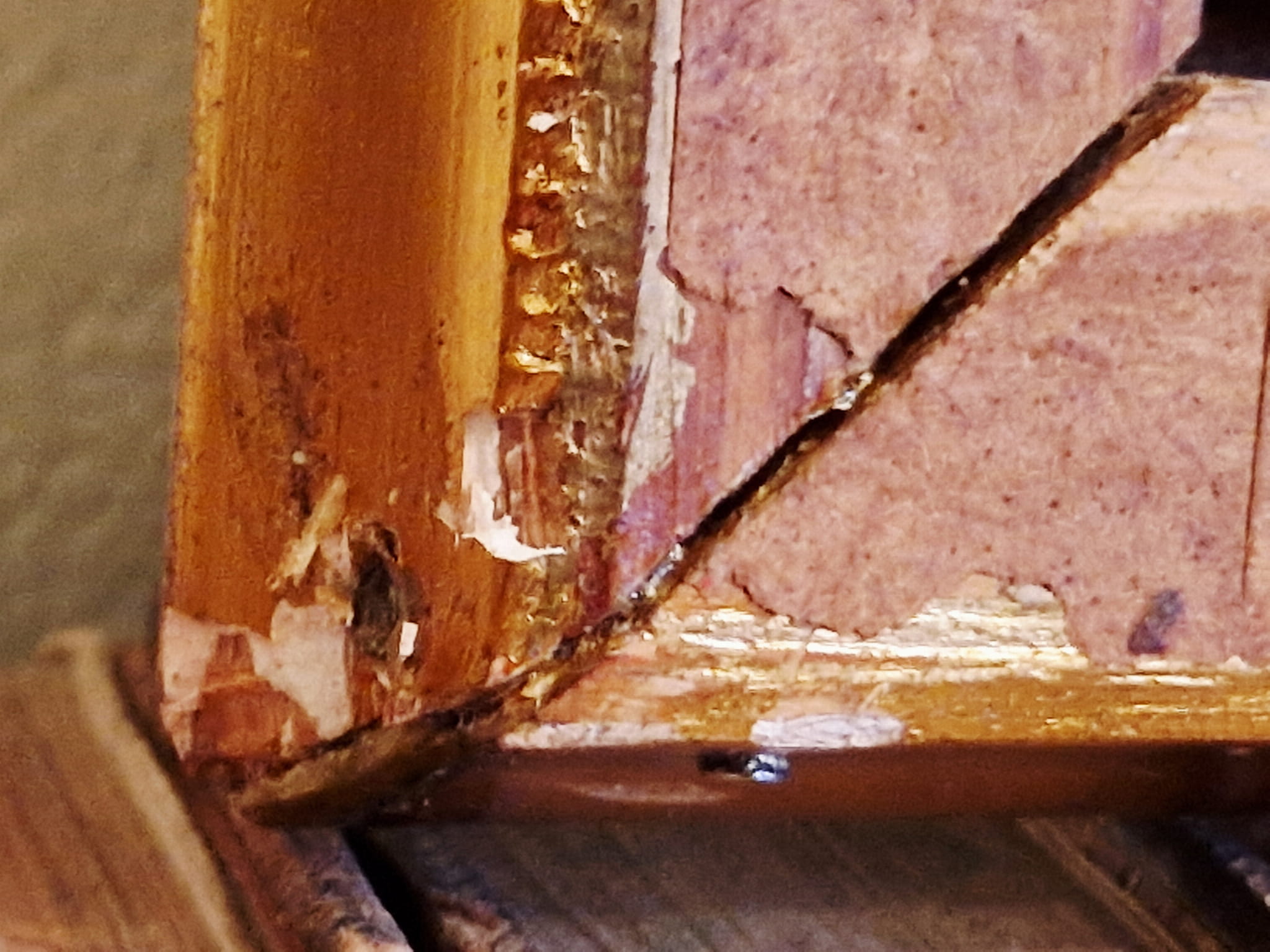 Rama amatorsko naprawiana gwoździkami - do profesjonalnej renowacji.