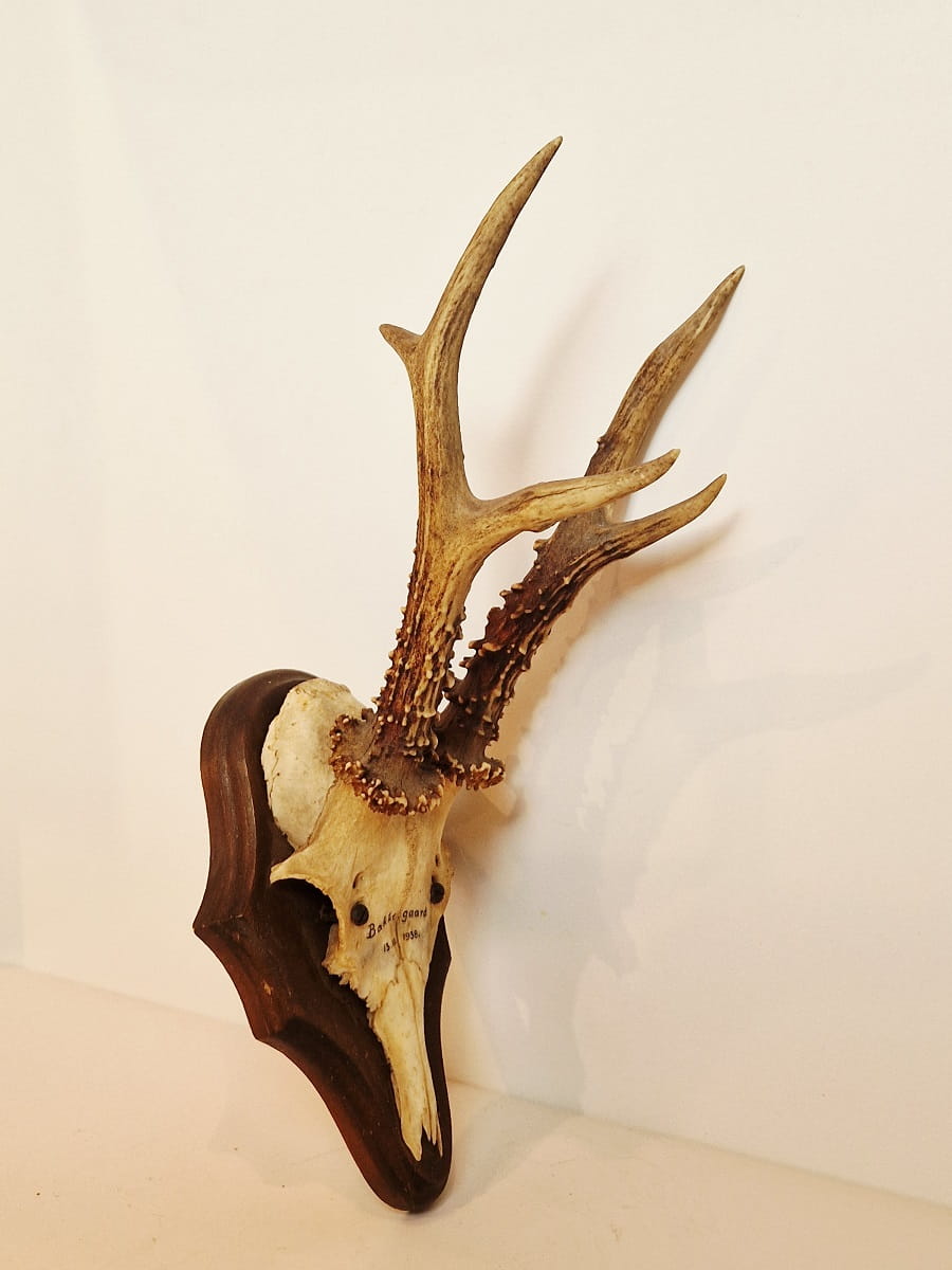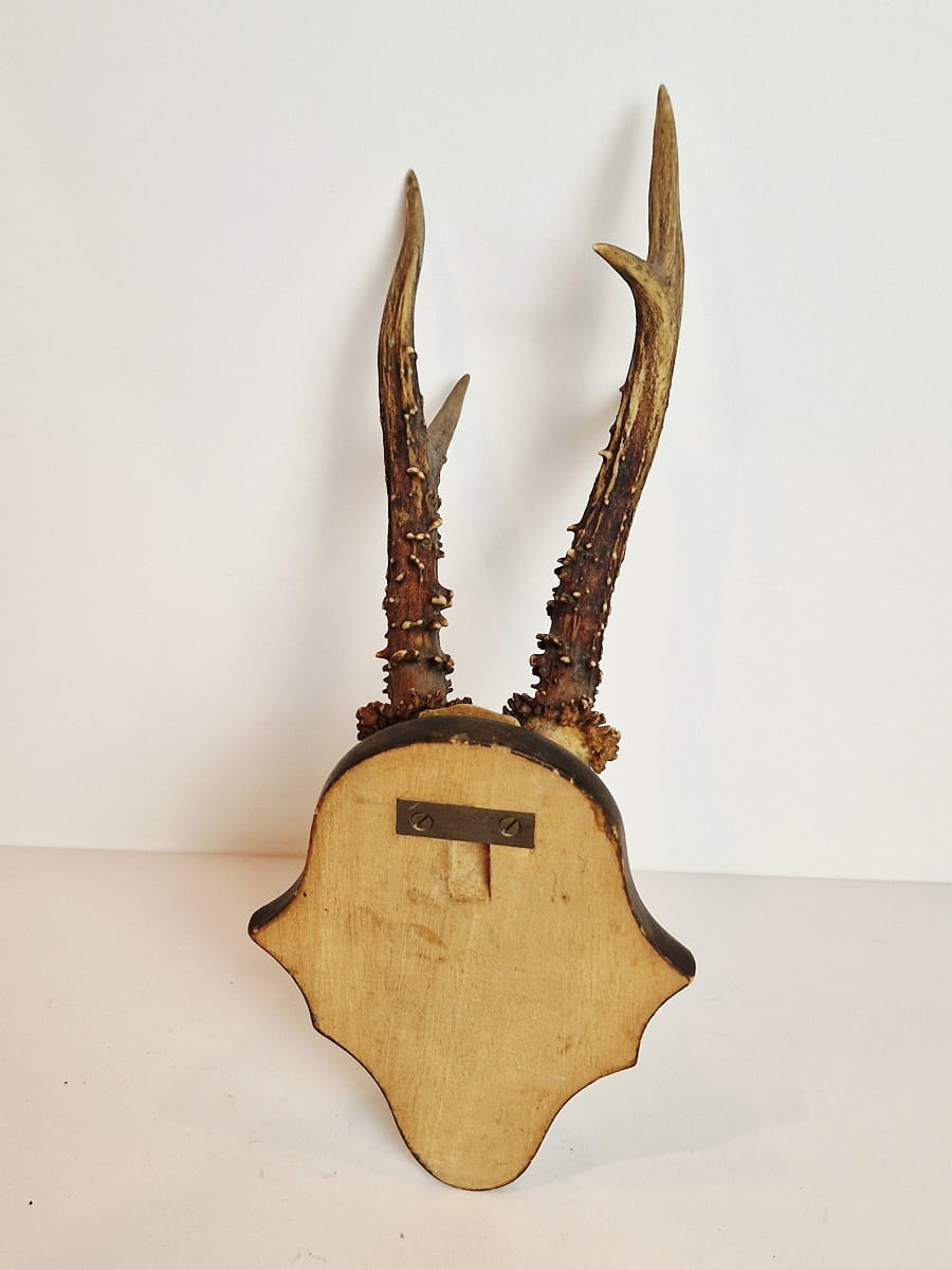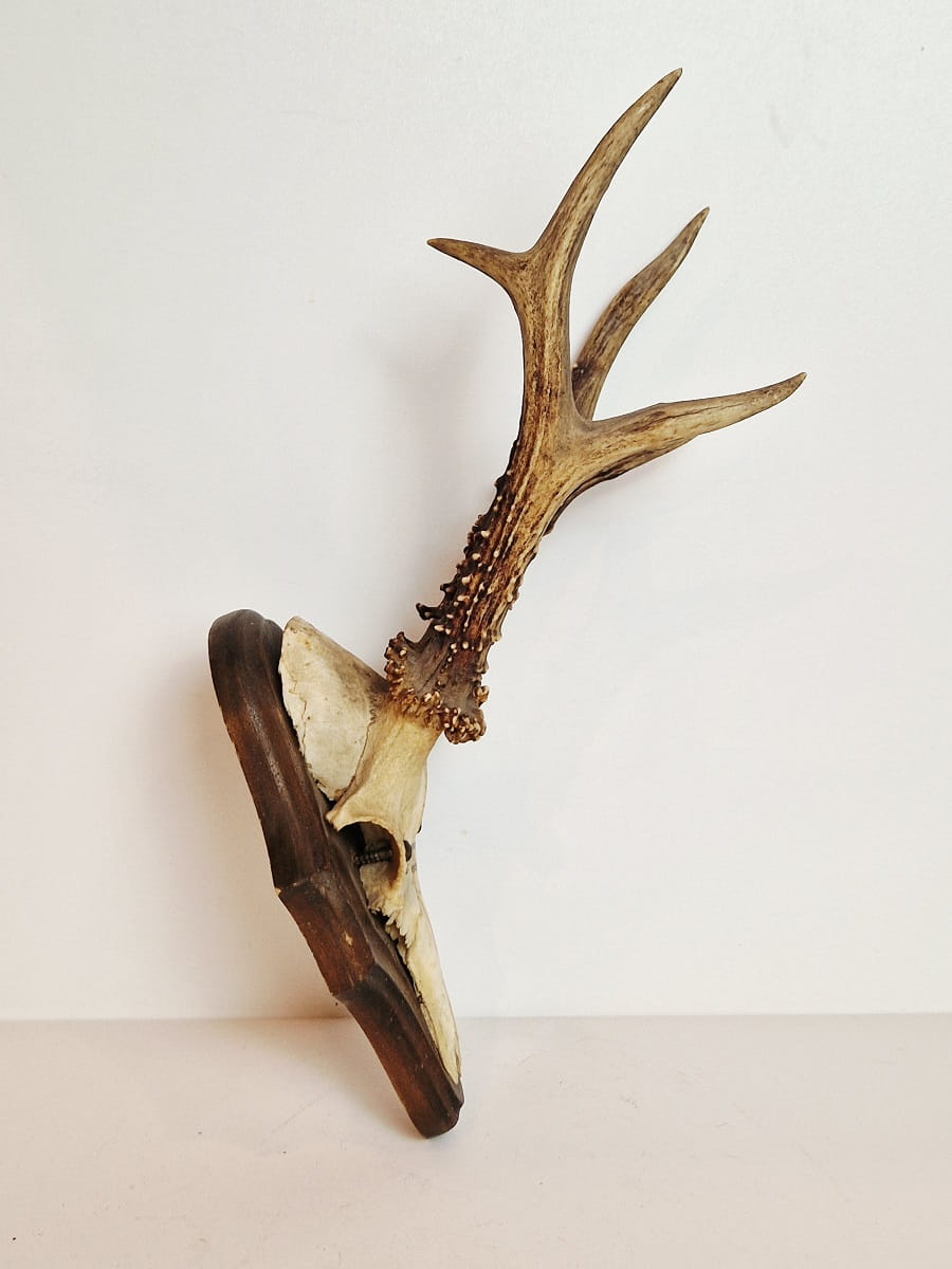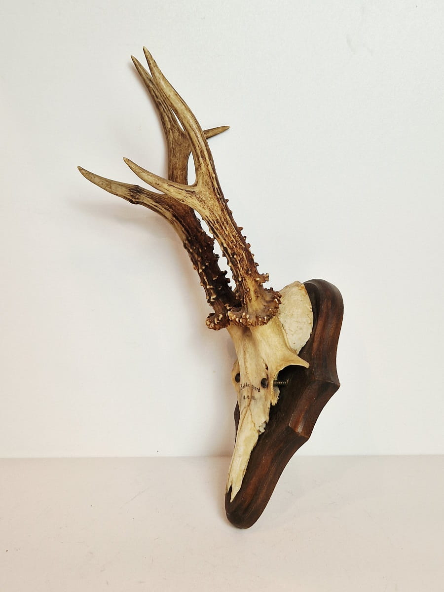 (1938) ZABYTKOWE TROFEUM POROŻE KOZŁA SARNY SZÓSTAKA Z FRAGMENTEM CZASZKI