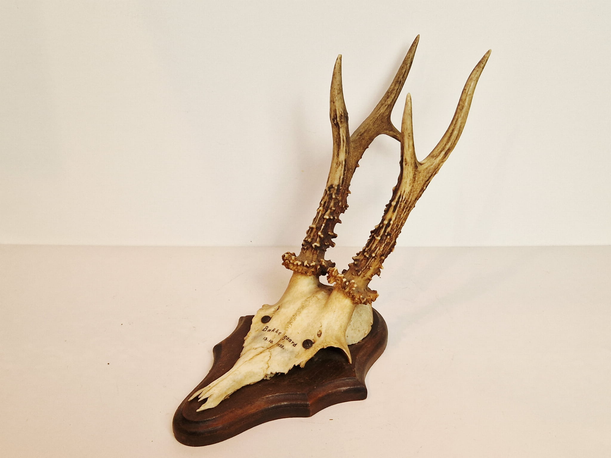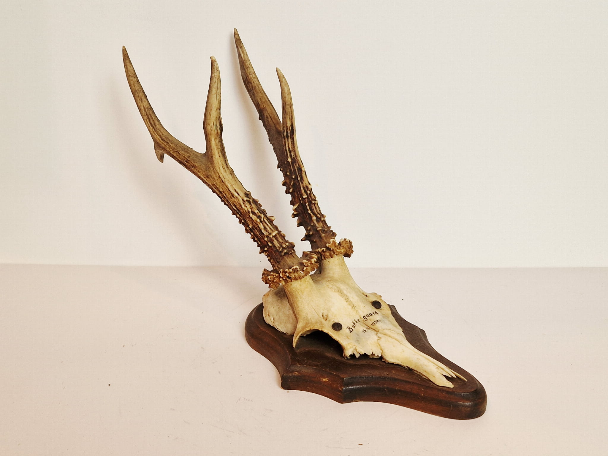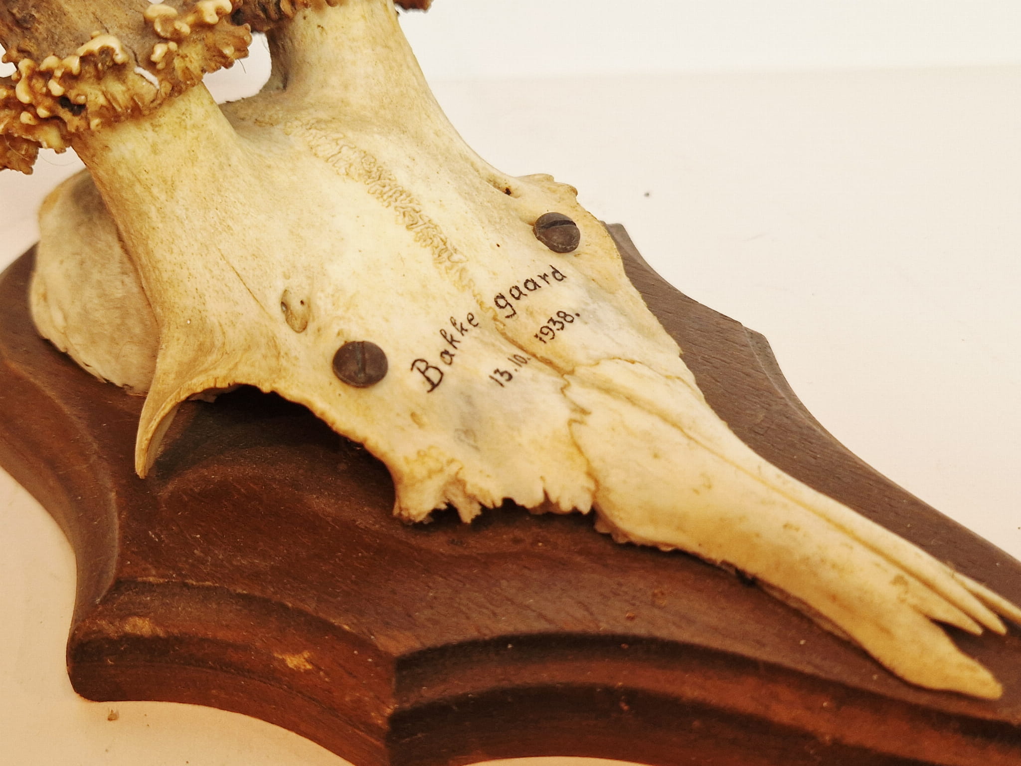 (1938) ZABYTKOWE TROFEUM POROŻE KOZŁA SARNY SZÓSTAKA Z FRAGMENTEM CZASZKI