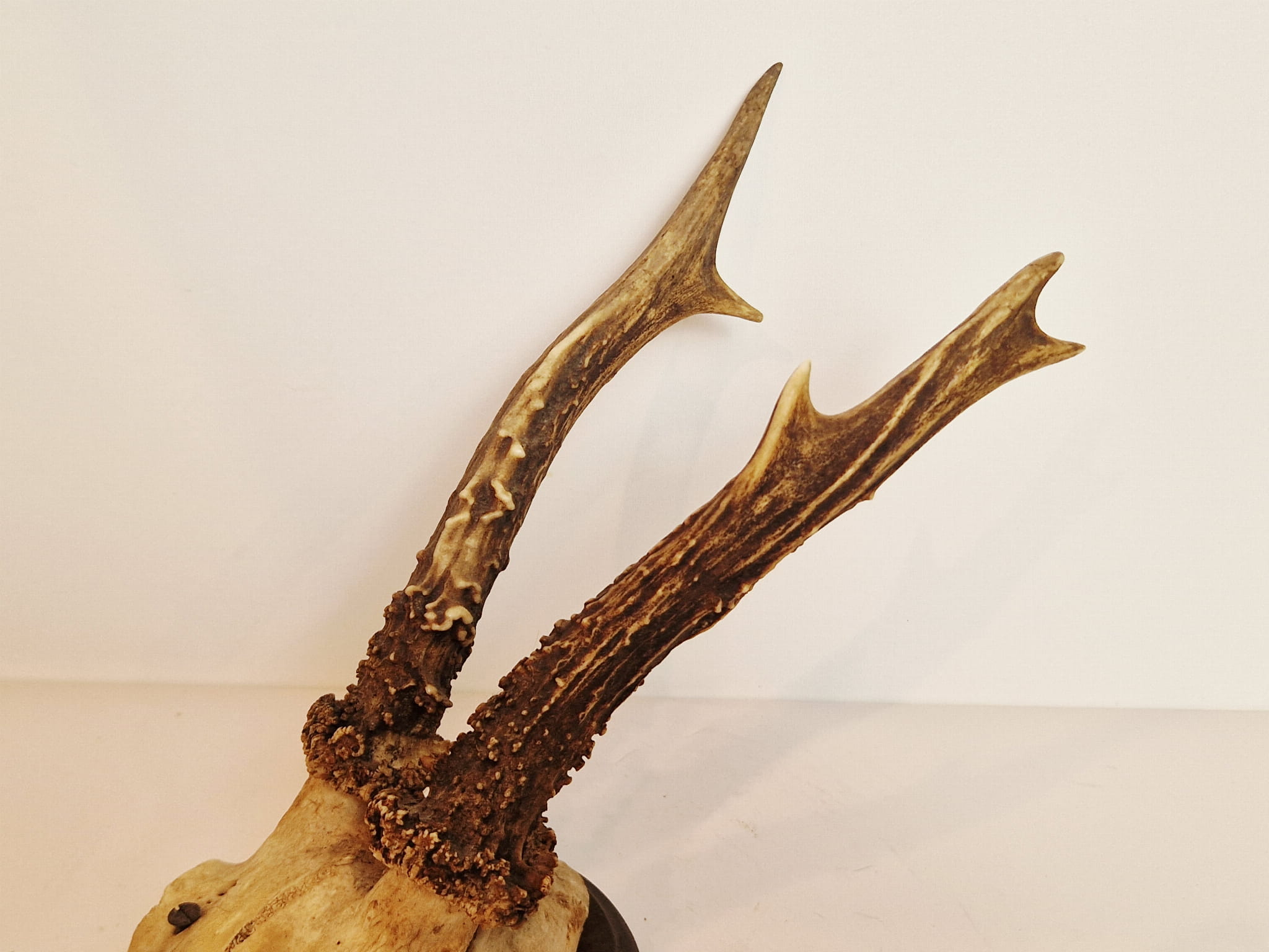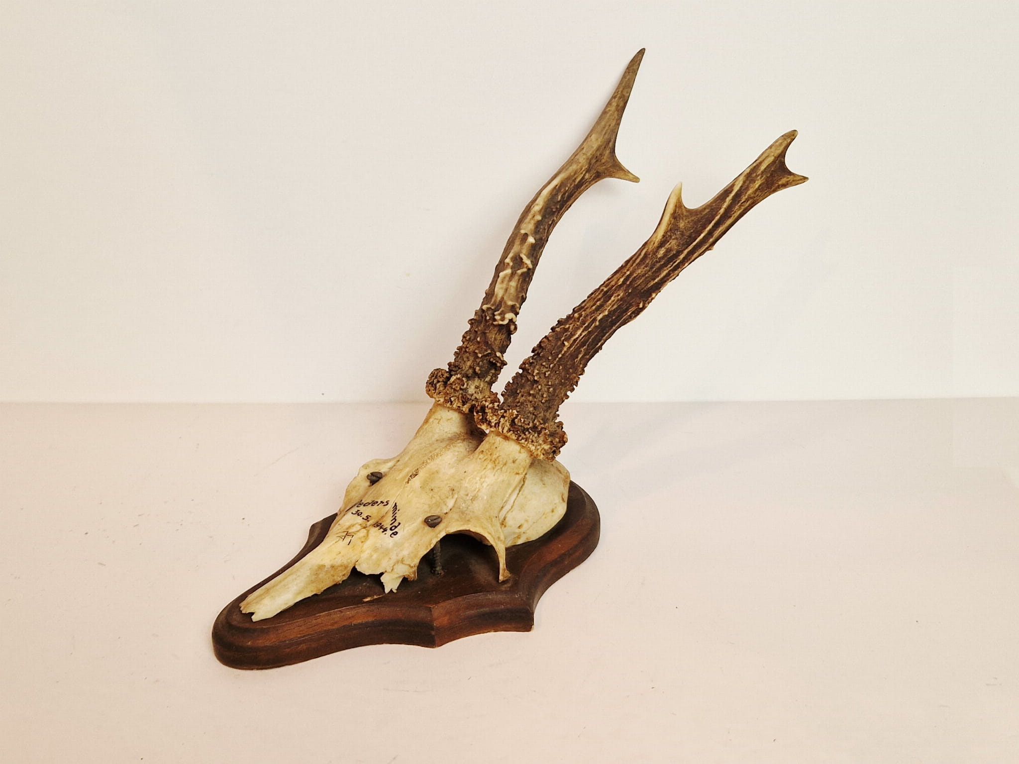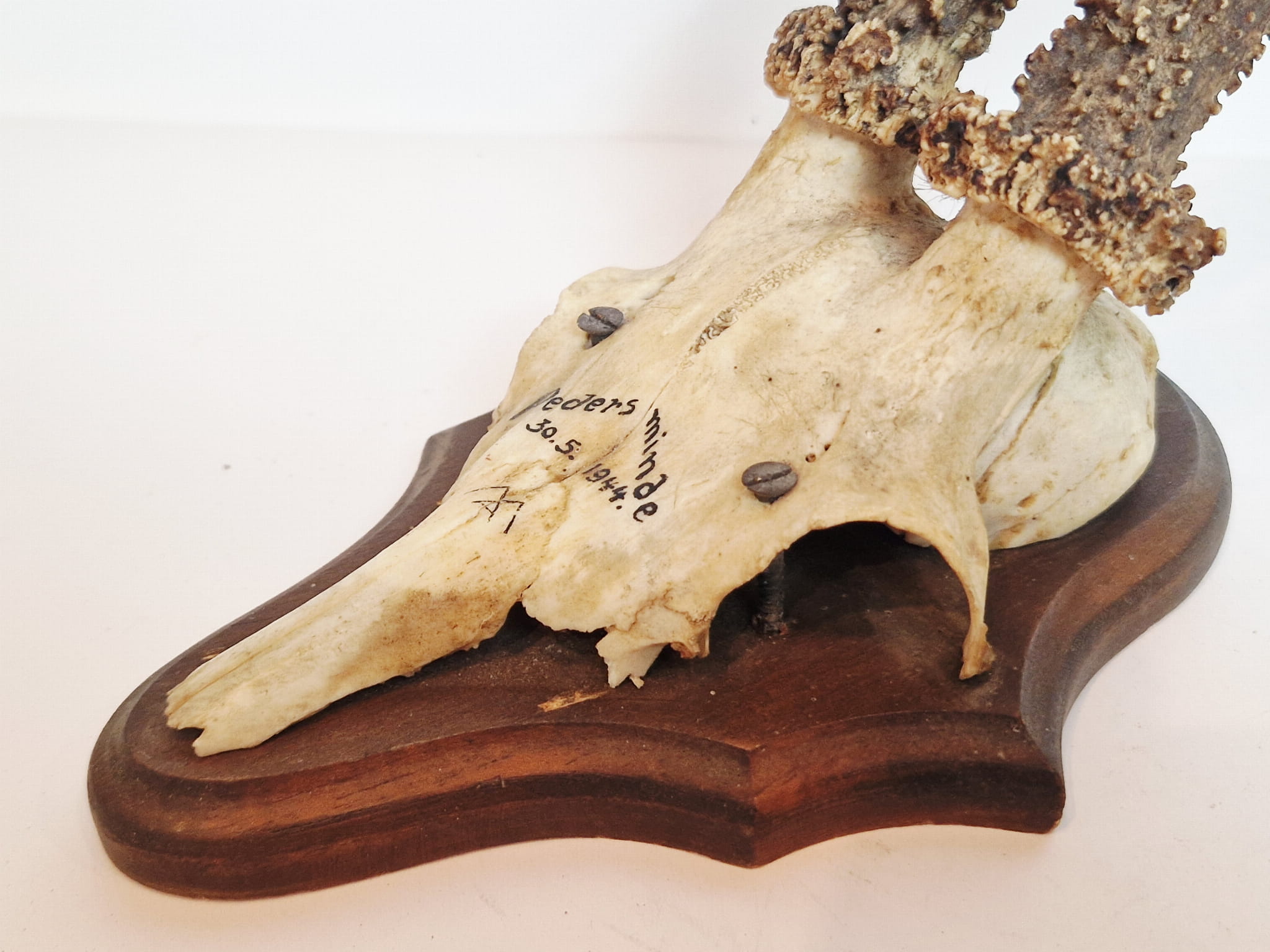 (1944) ZABYTKOWE TROFEUM POROŻE KOZŁA SARNY SZÓSTAKA Z FRAGMENTEM CZASZKI