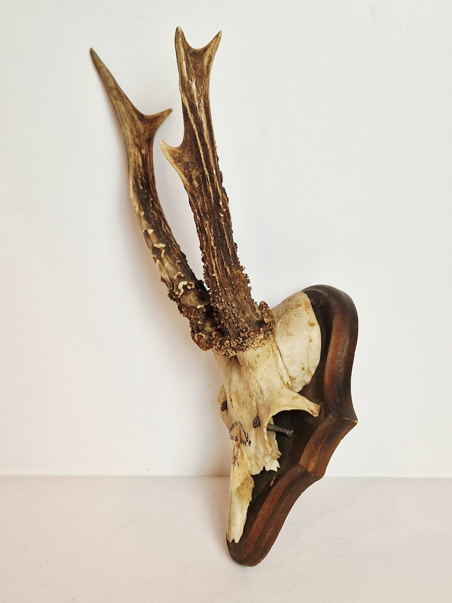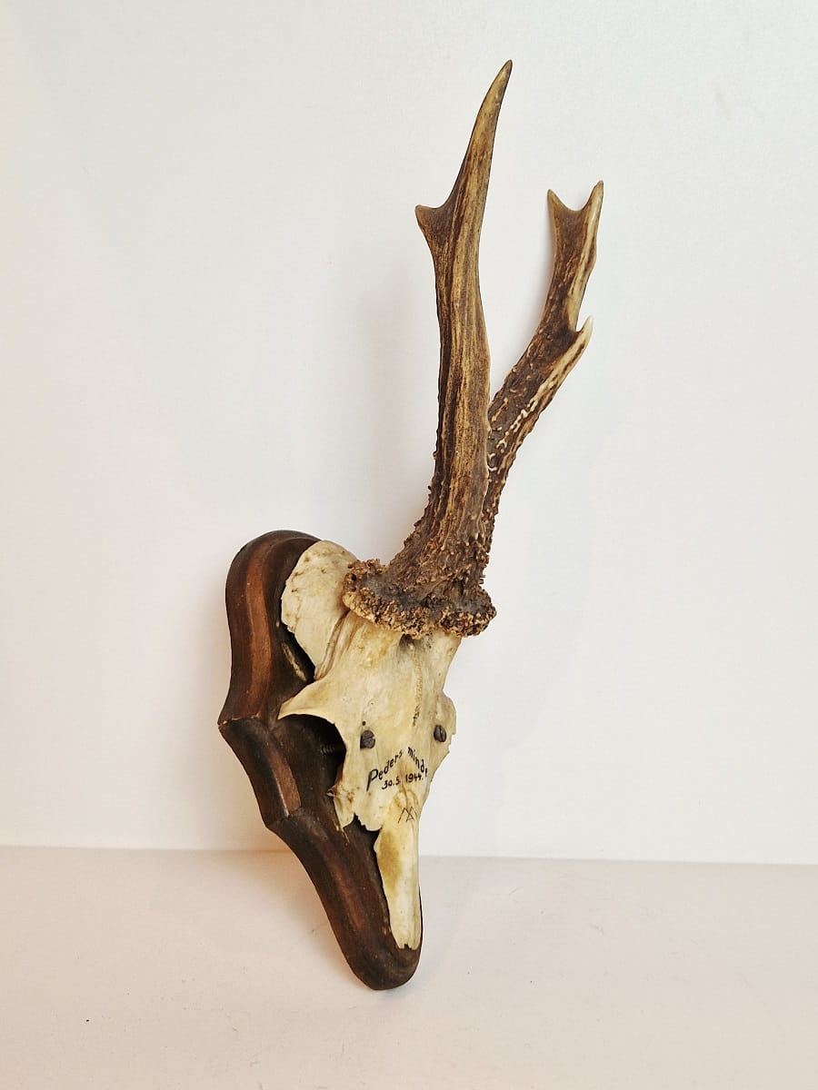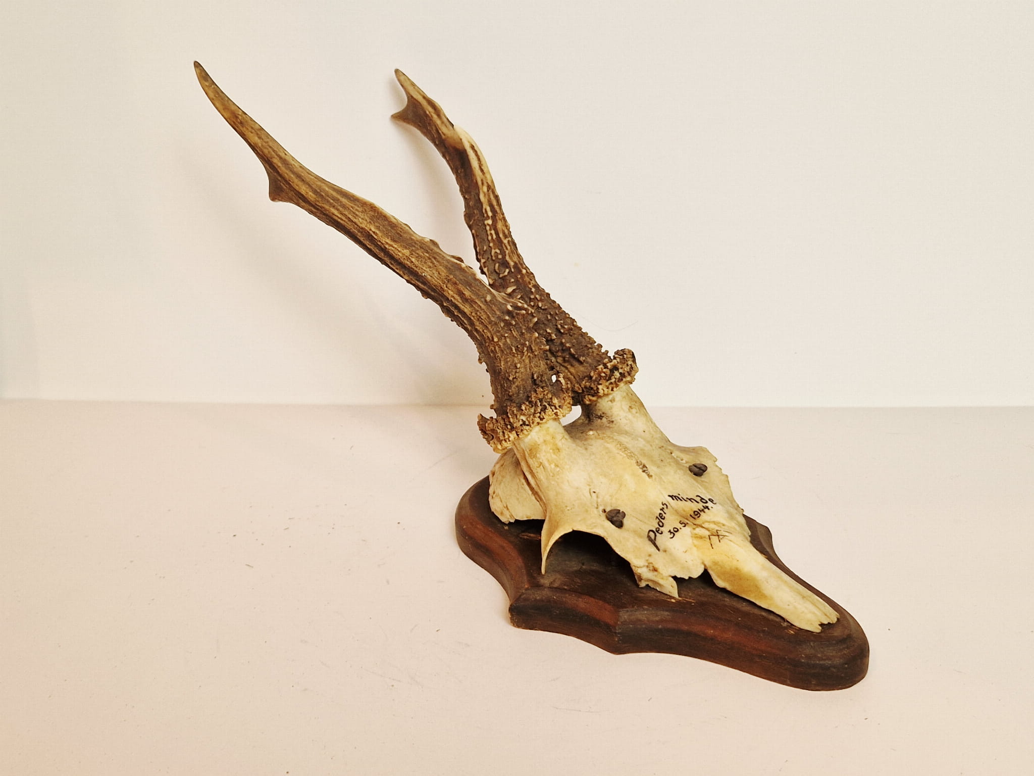 (1944) ZABYTKOWE TROFEUM POROŻE KOZŁA SARNY SZÓSTAKA Z FRAGMENTEM CZASZKI