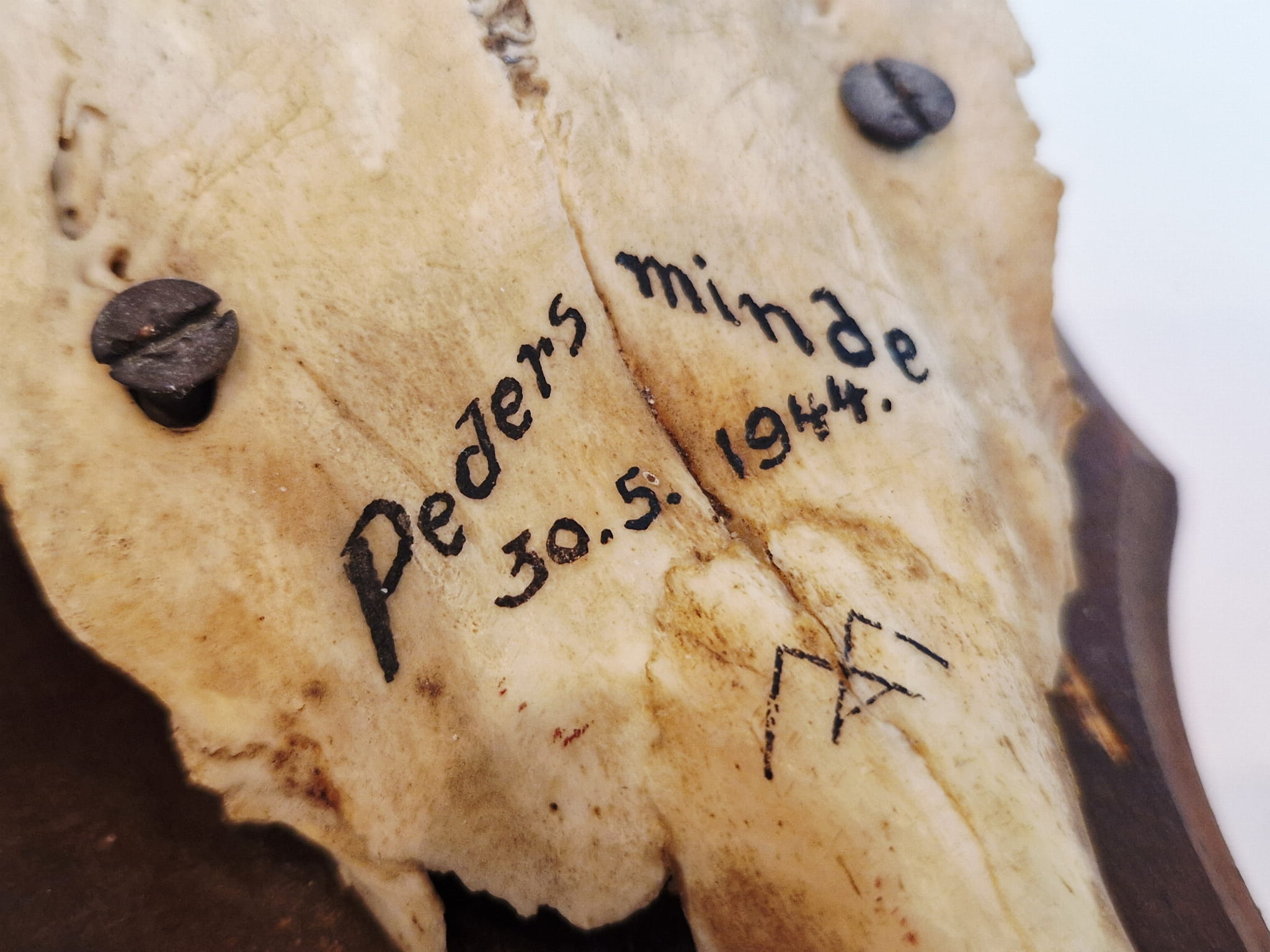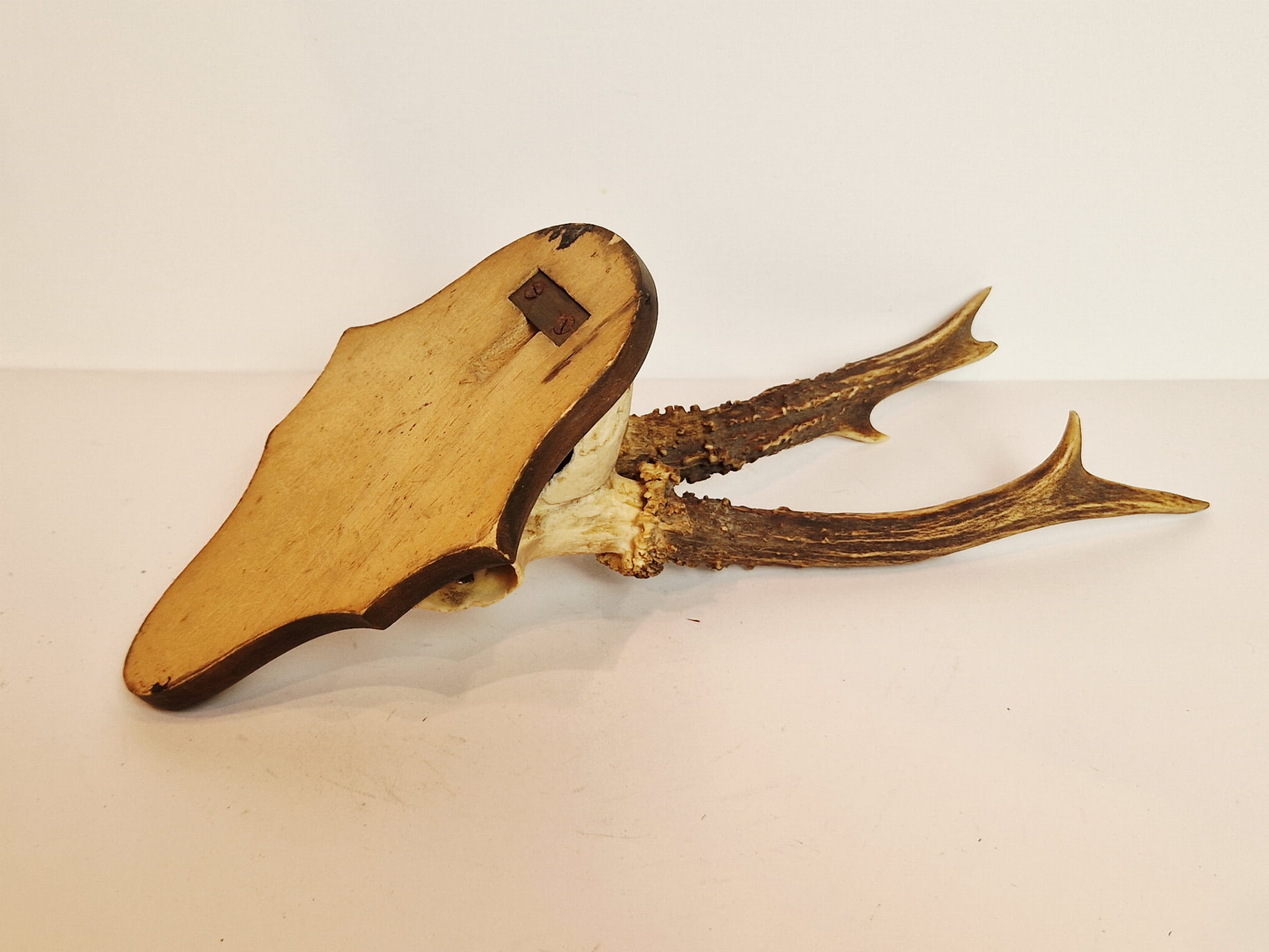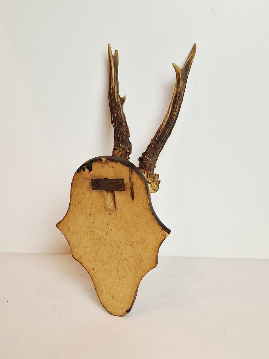 Poroże na desce - gotowe do powieszenia na ścianie.