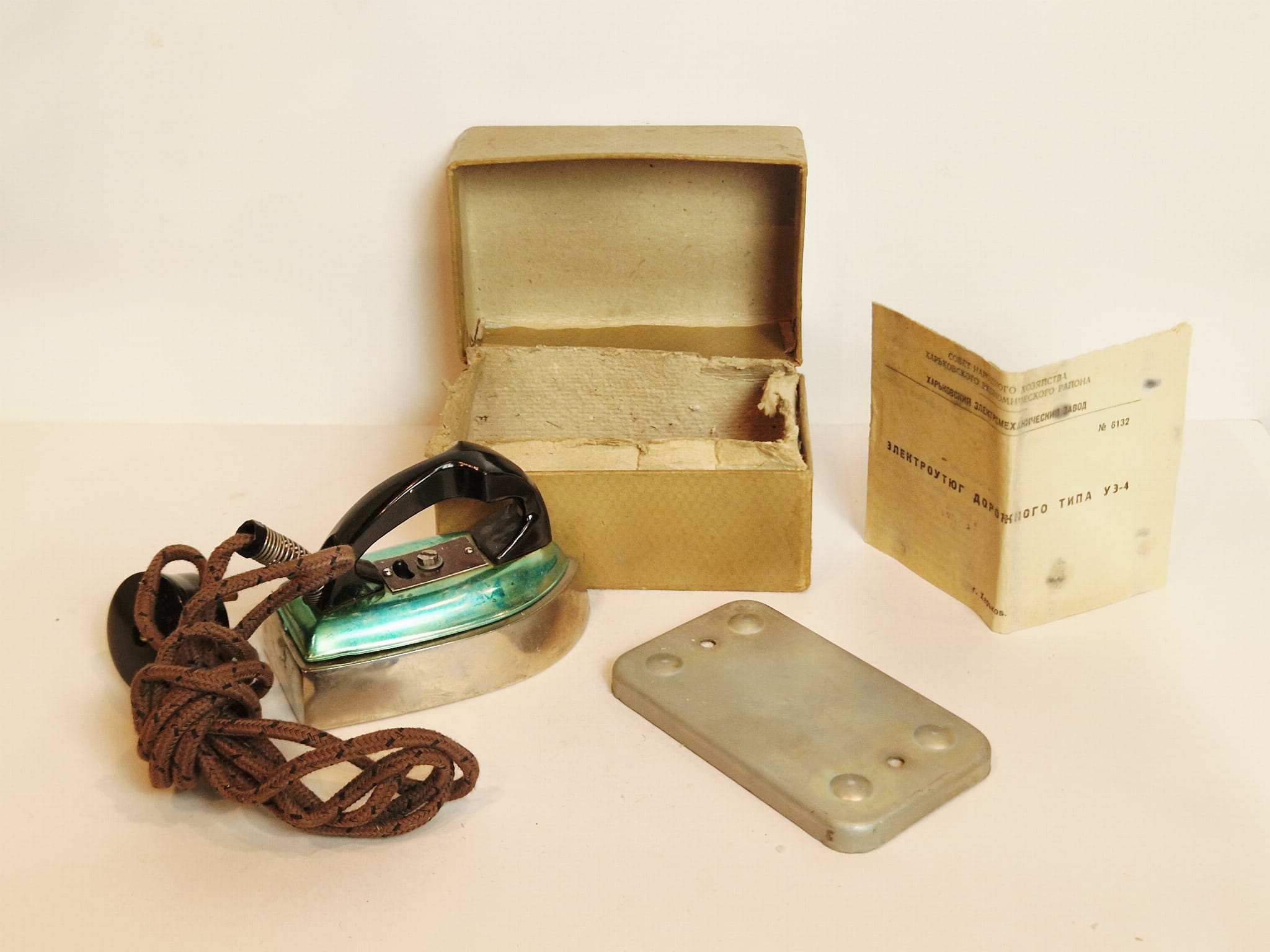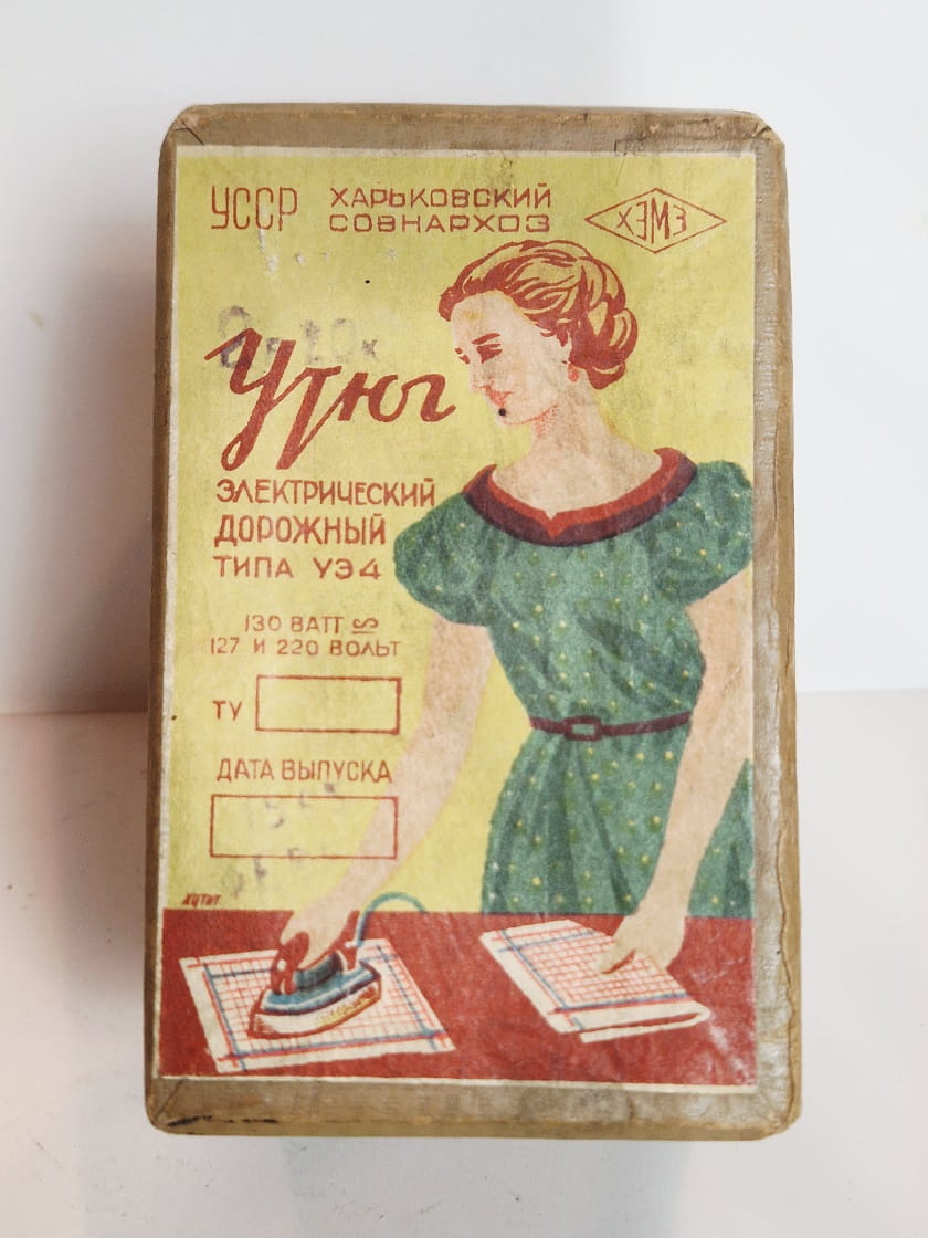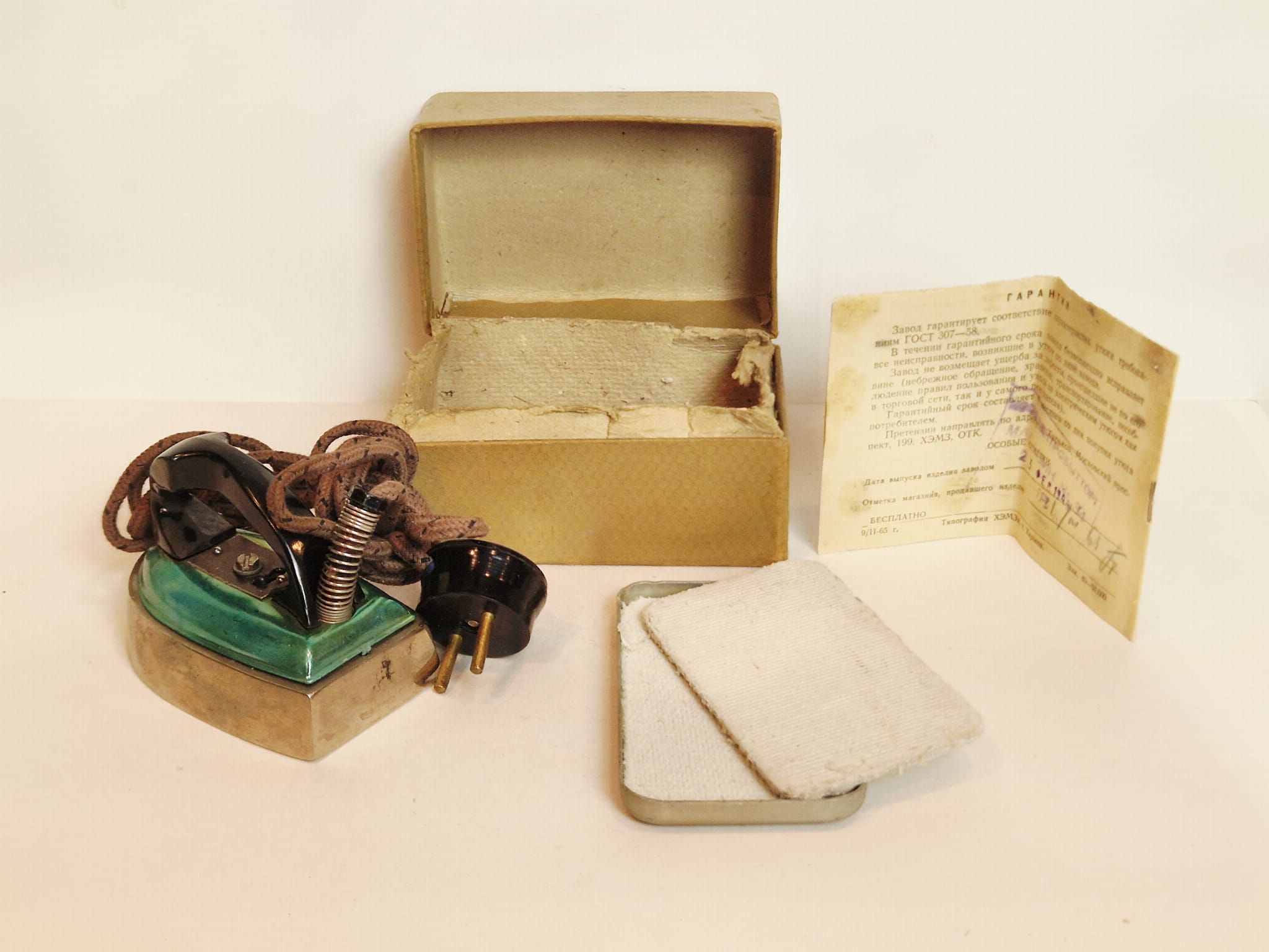 (1965) ZSRR (CCCP) / MAŁE (10,9 cm) ŻELAZKO ELEKTRYCZNE W PUDEŁKU + DOK.