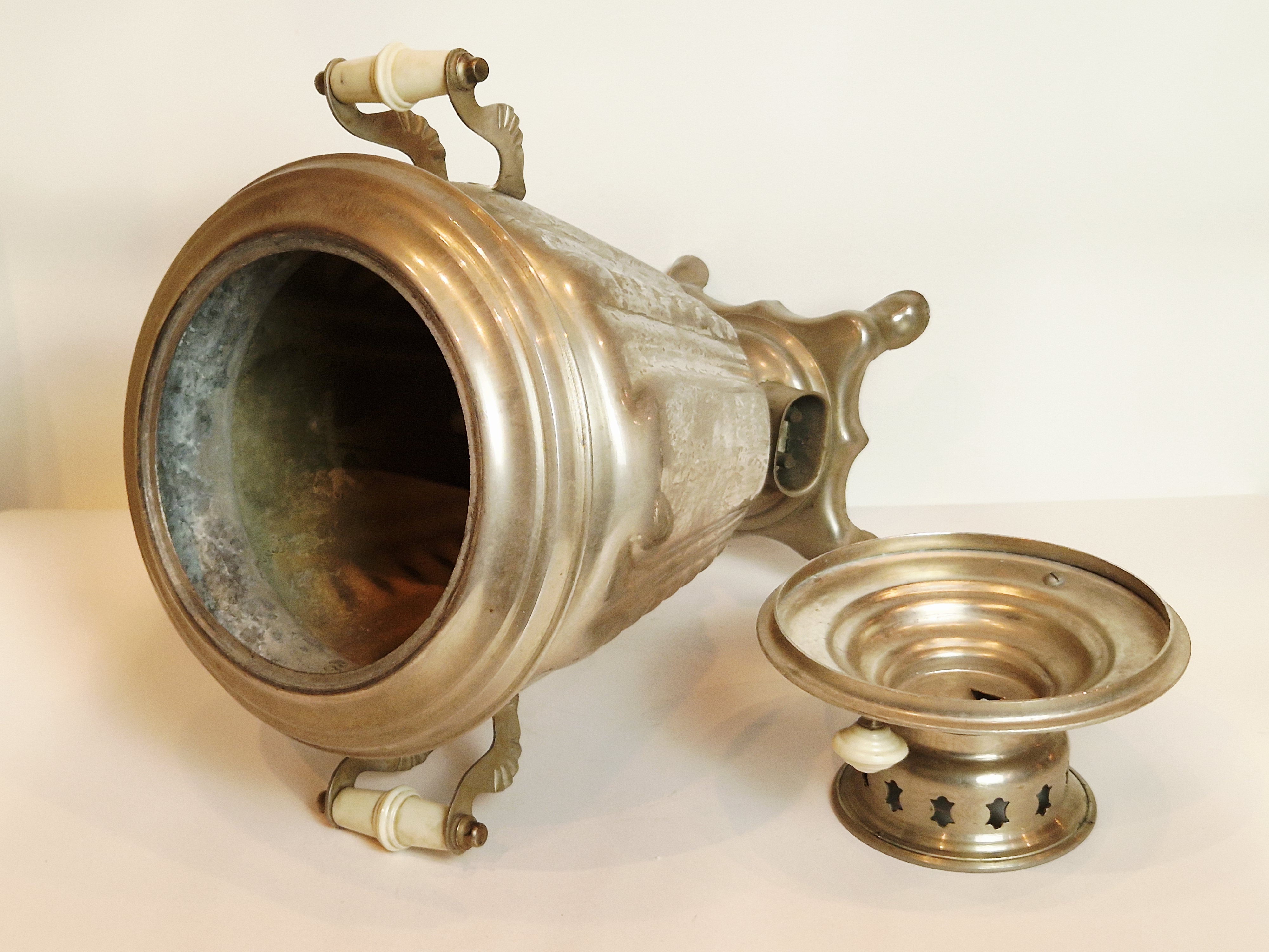Płaszcz samowara pokryty umiarkowanym, obcym nalotem - nie był czyszczony / polerowany.