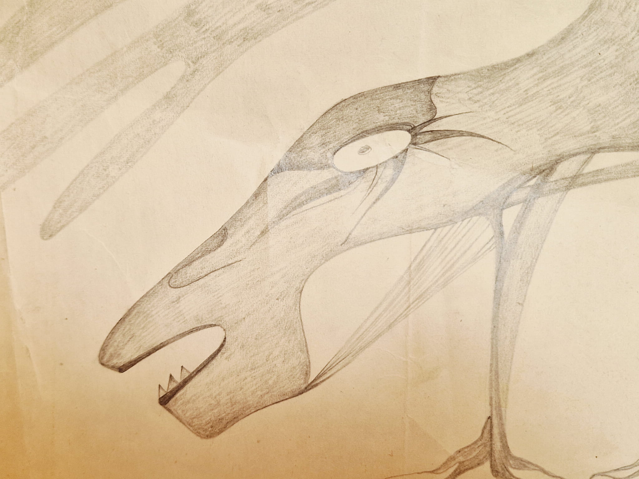 (1972) ADAM KOZACZKA - "SMOK" (CYKL ZWIERZYNIEC) RYSUNEK SZKIC (ołówek) 42,0 cm x 29,7 cm