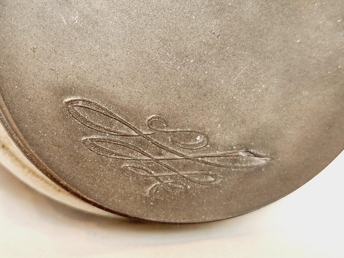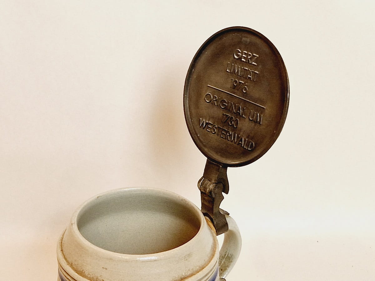 STARY (1976) MASYWNY (606 g) LIMITOWANY (0400) KUFEL CERAMICZNY Z CYNOWĄ POKRYWKĄ