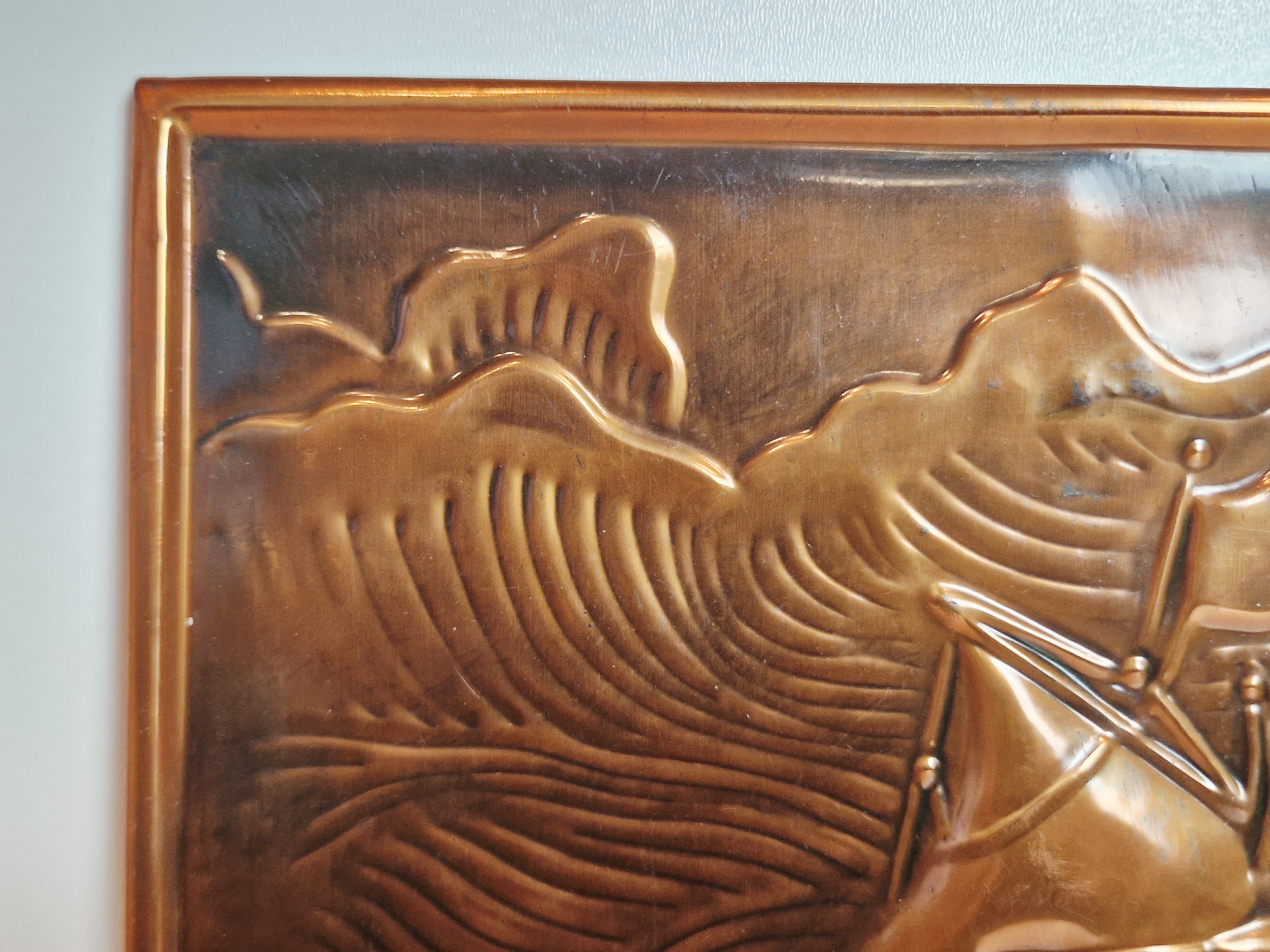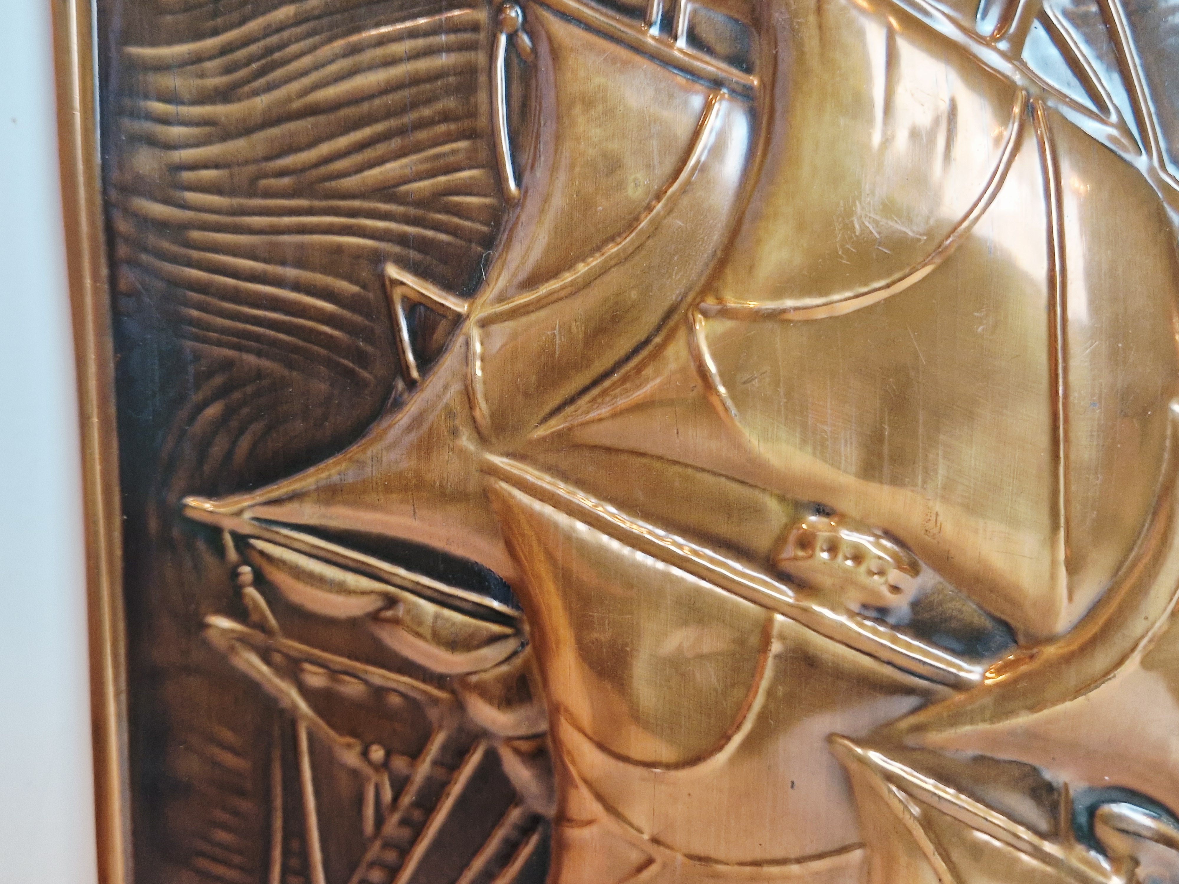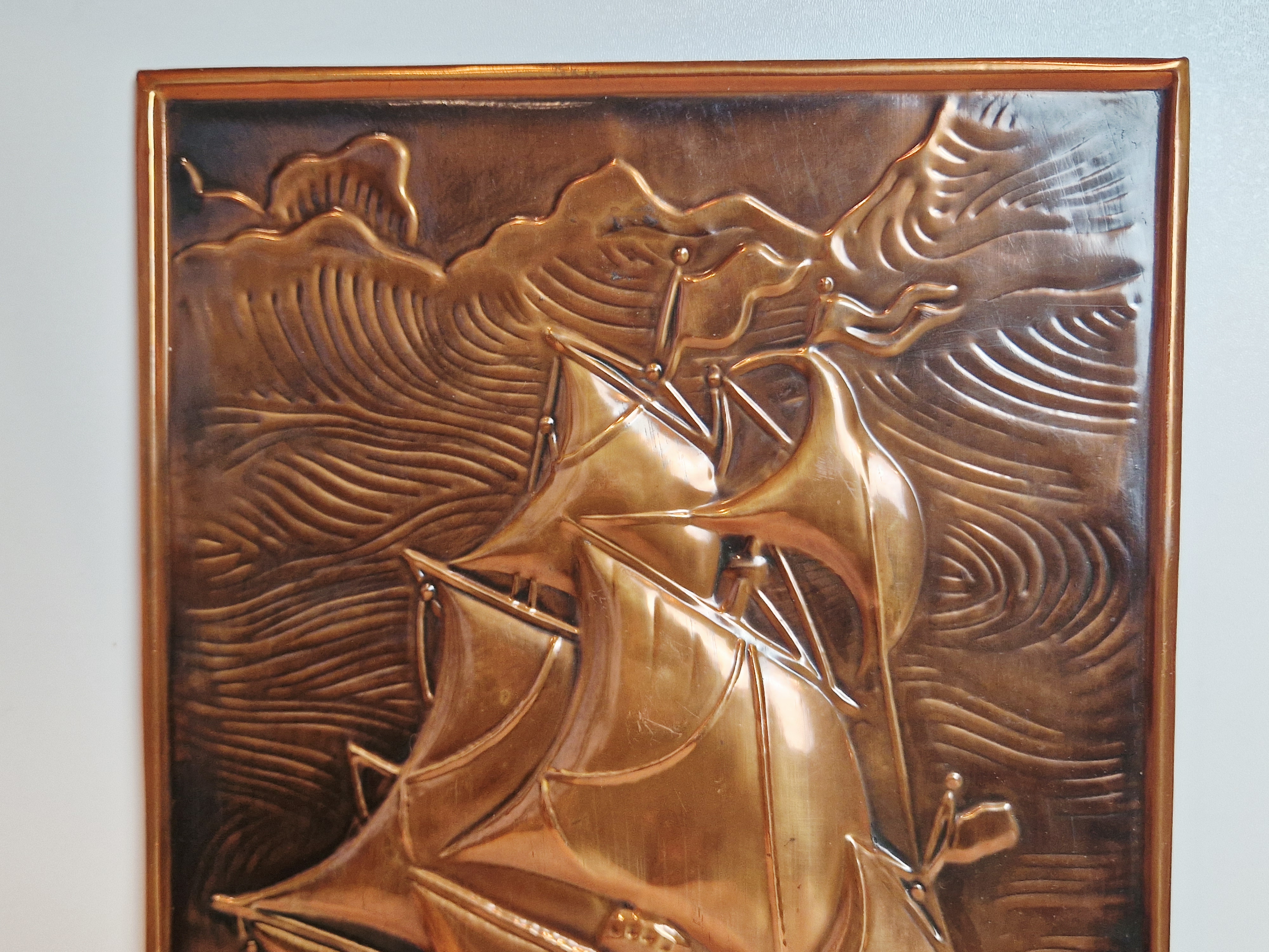 (1978) "ŻAGLOWIEC" - METALOPLASTYKA PLAKIETA (35,6 cm) WYTŁOK MIEDZIANY