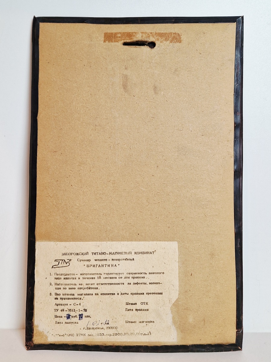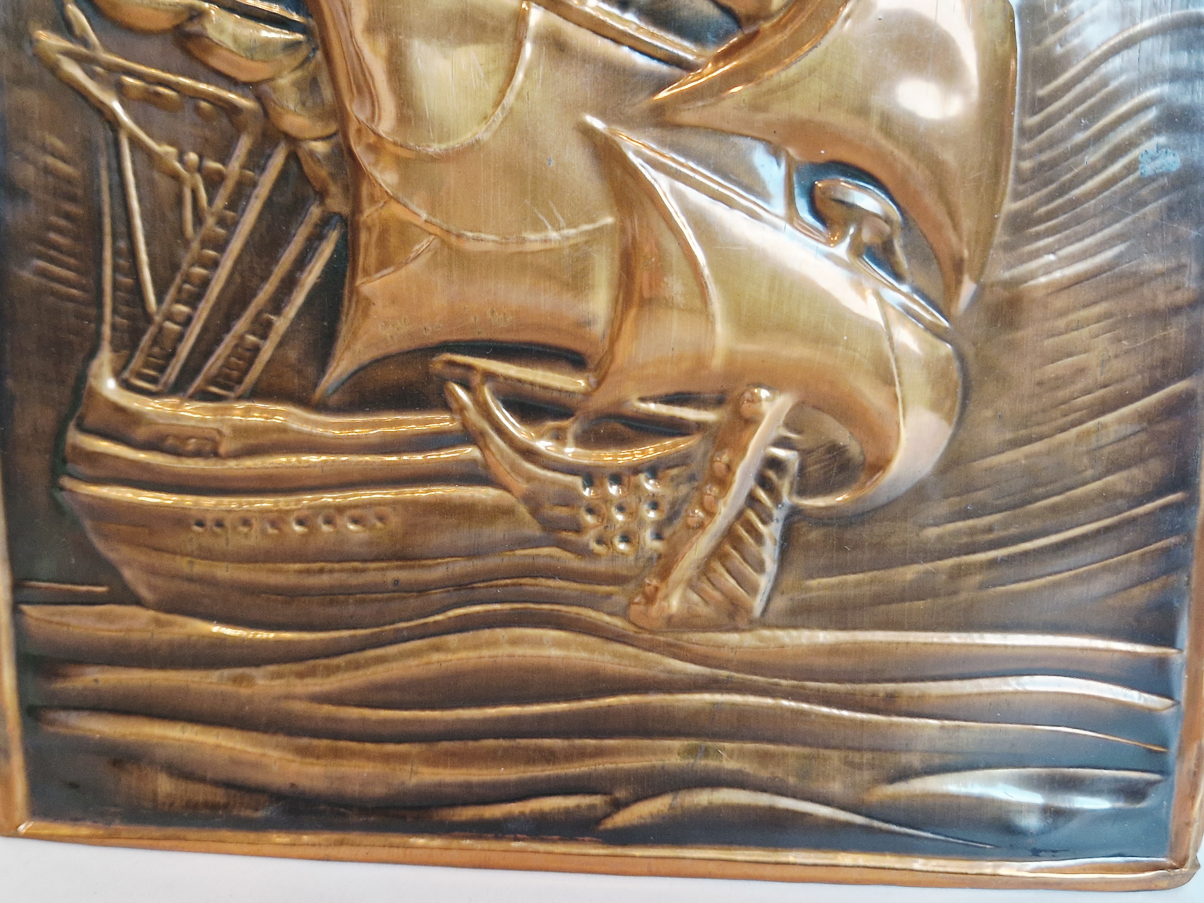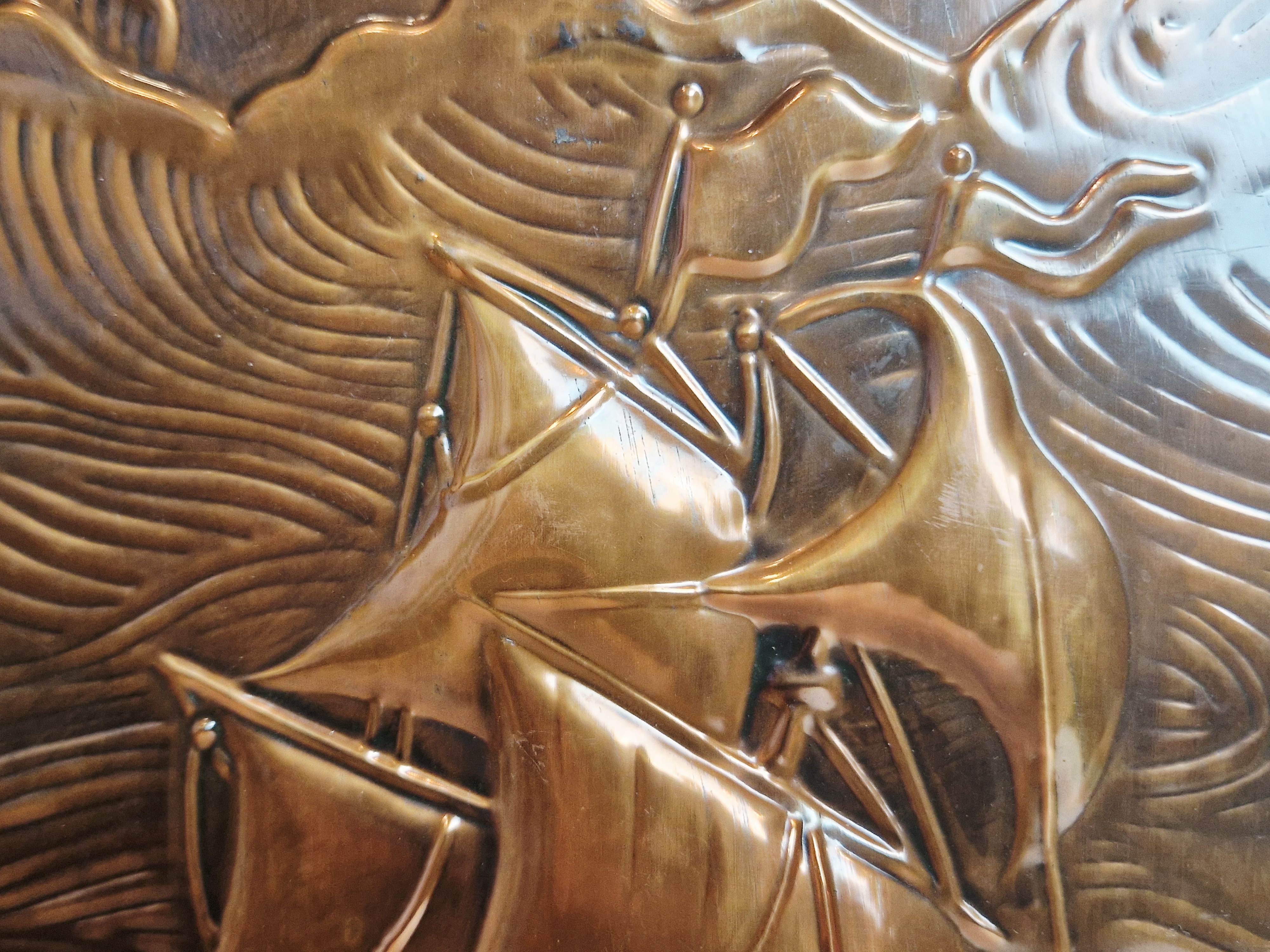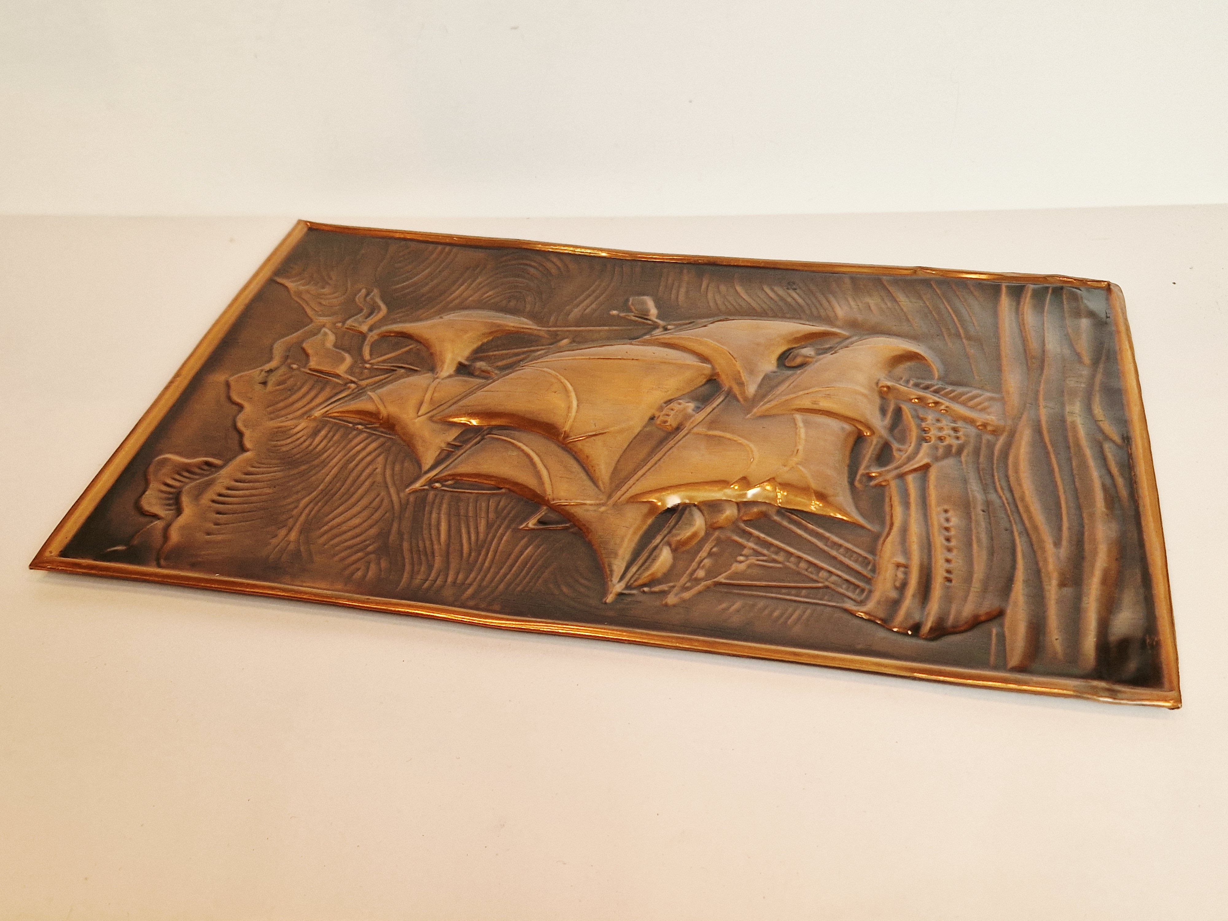 (1978) "ŻAGLOWIEC" - METALOPLASTYKA PLAKIETA (35,6 cm) WYTŁOK MIEDZIANY