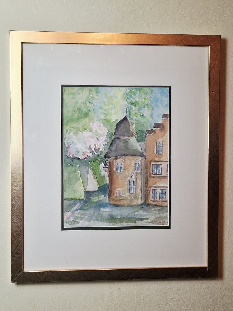 Temat akwareli: "pejzaż z fragmentem kamienicy"...