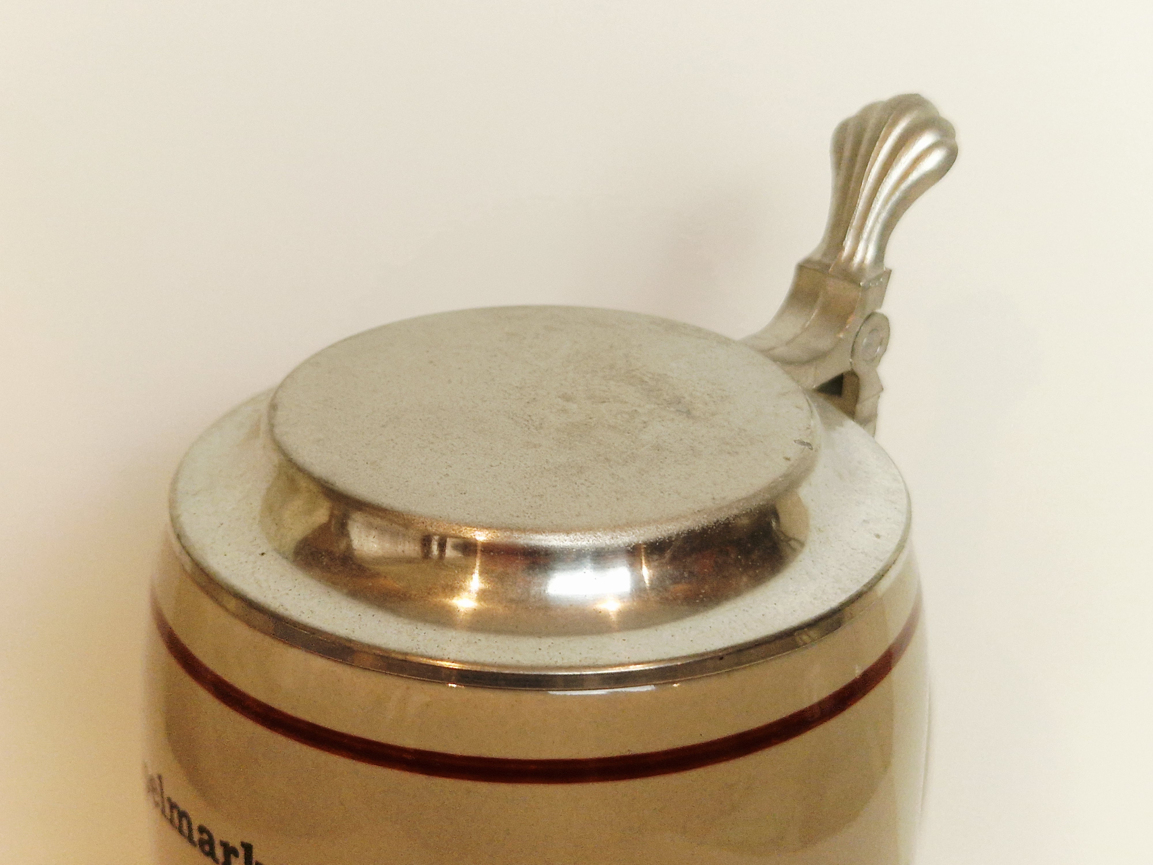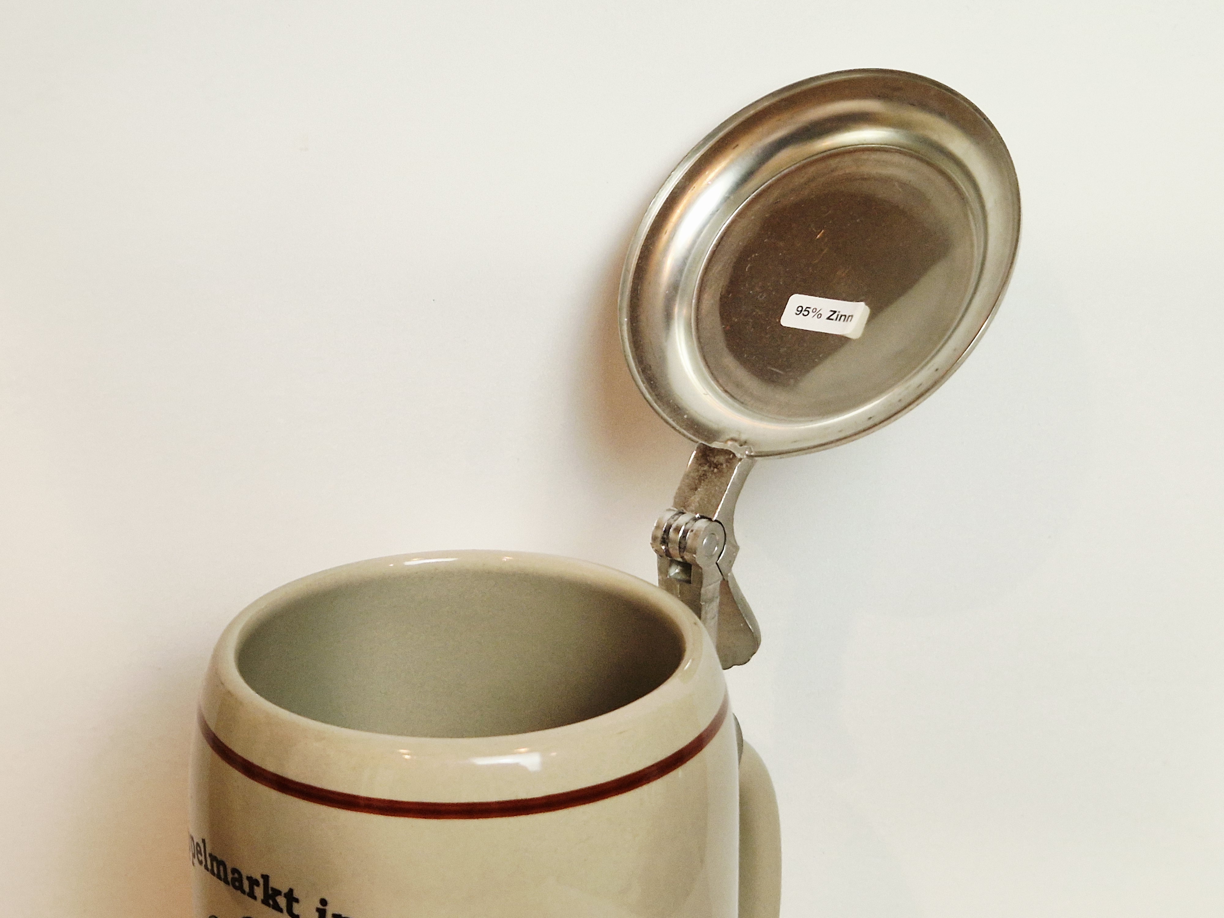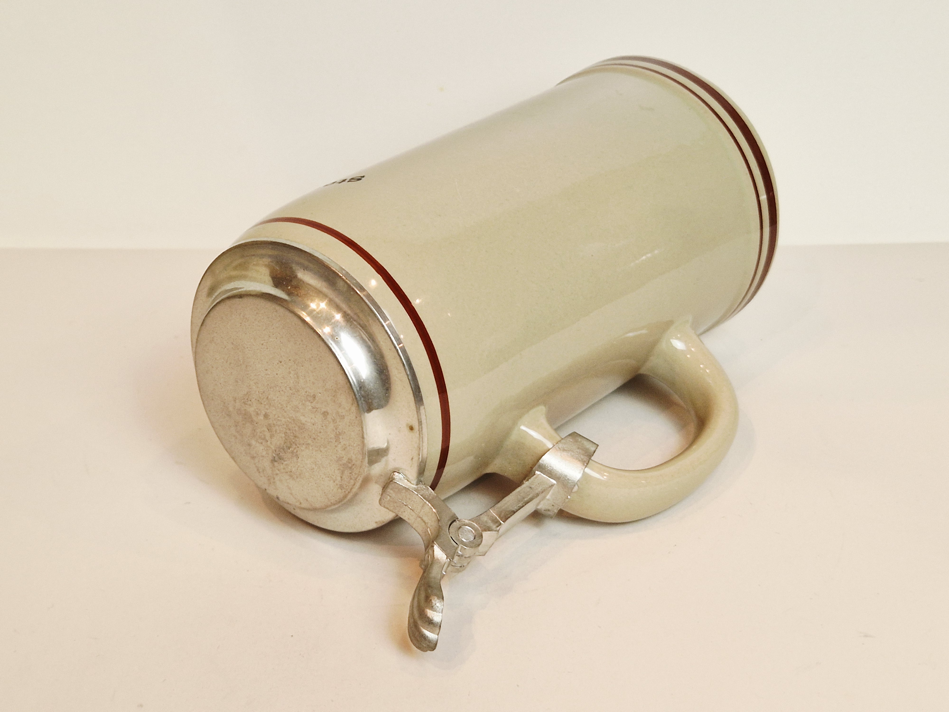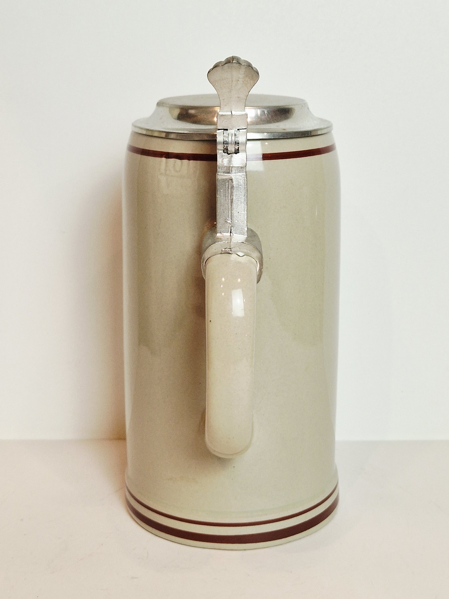 DUŻY (22,7 cm / 1.19 kg) KOLEKCJONERSKI KUFEL KAMIONKOWY Z CYNOWĄ POKRYWKĄ