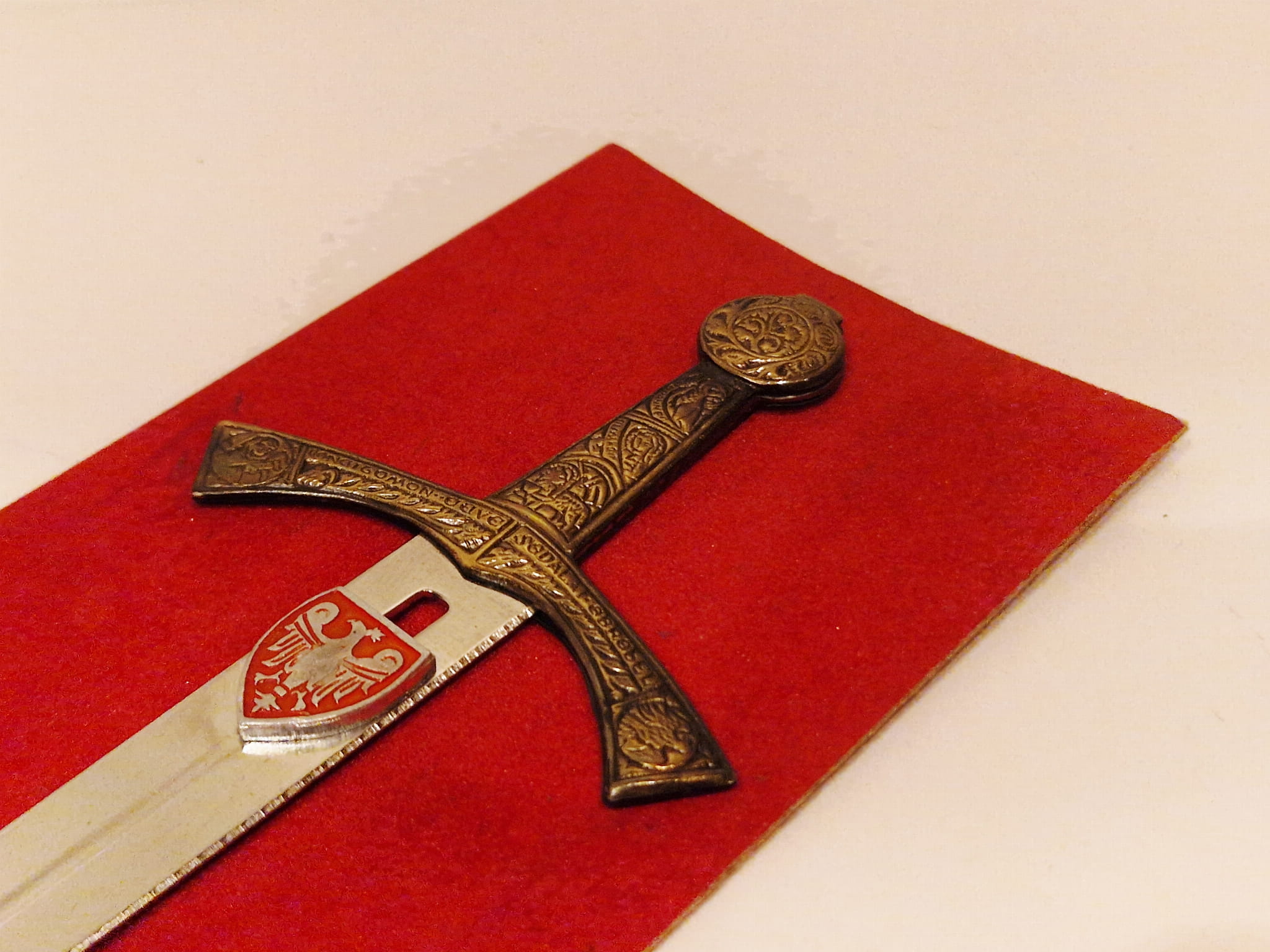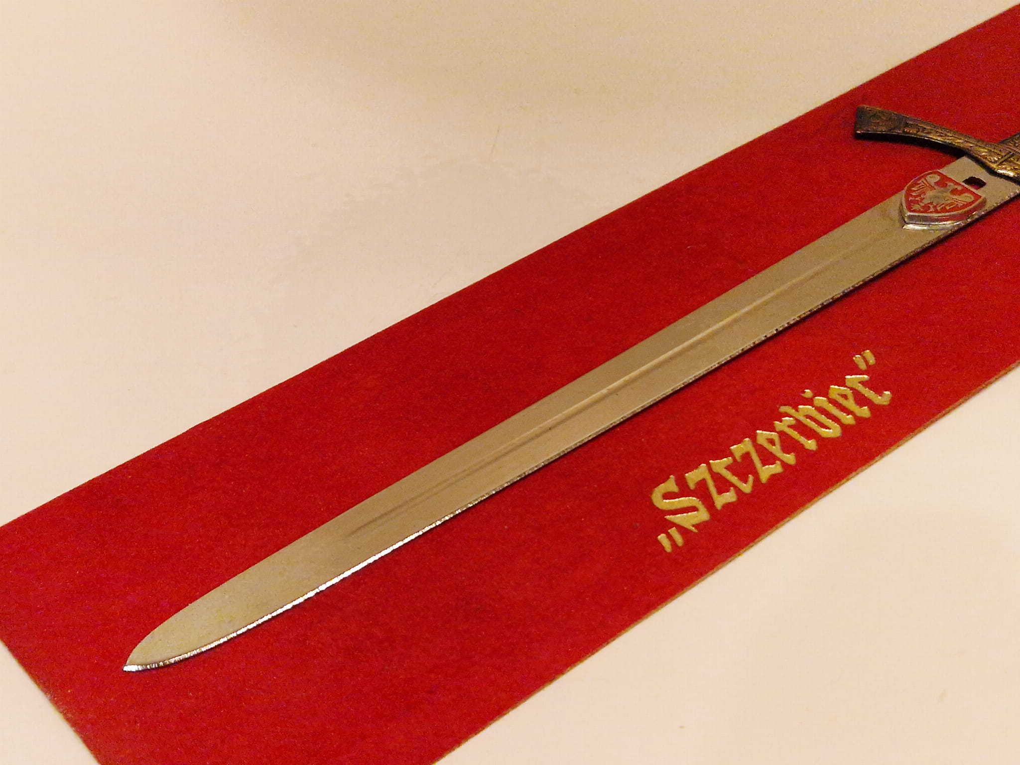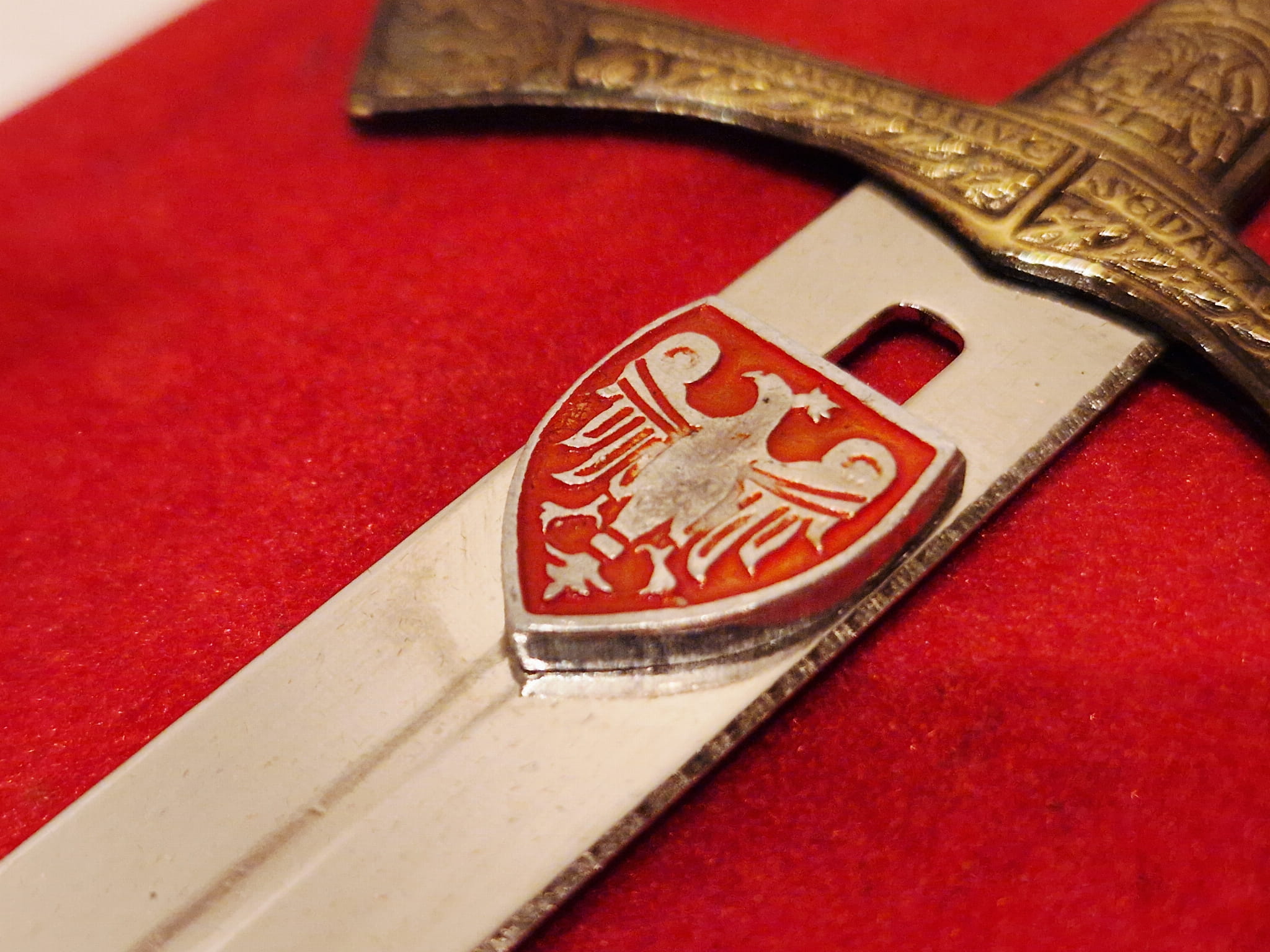 Na klindze osadzony "orzeł piastowski w tarczy"...