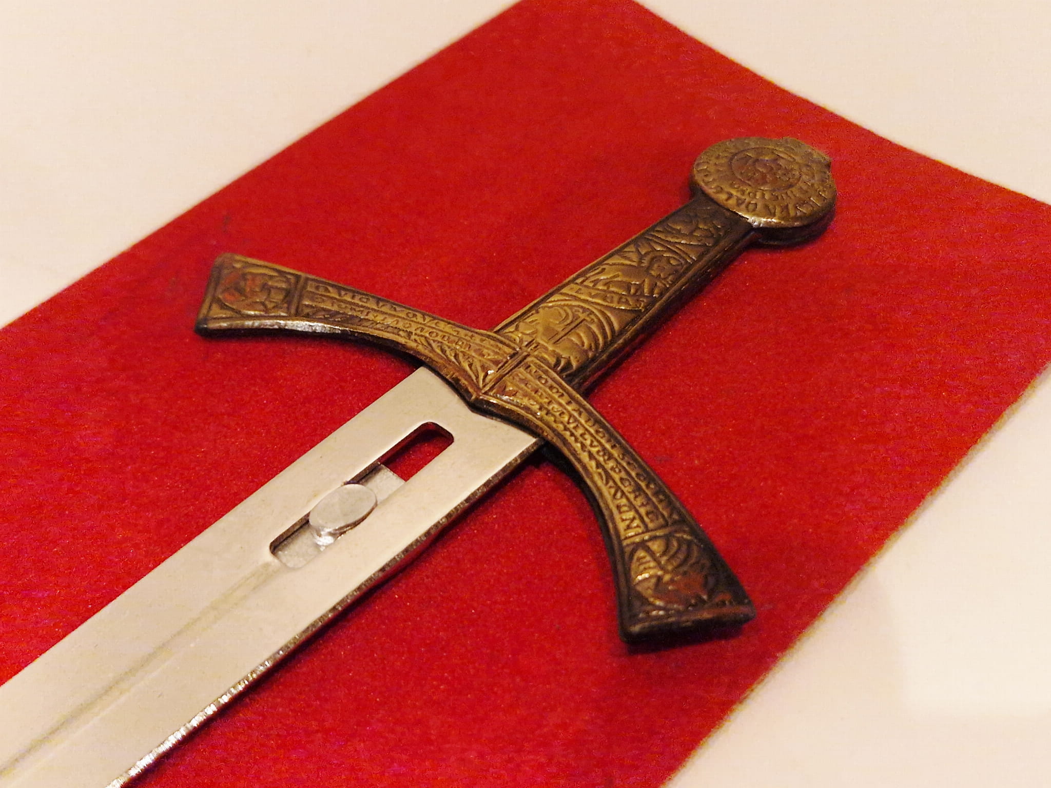 Uchwyt "miecza" ozdobiony piastowskimi symbolami...