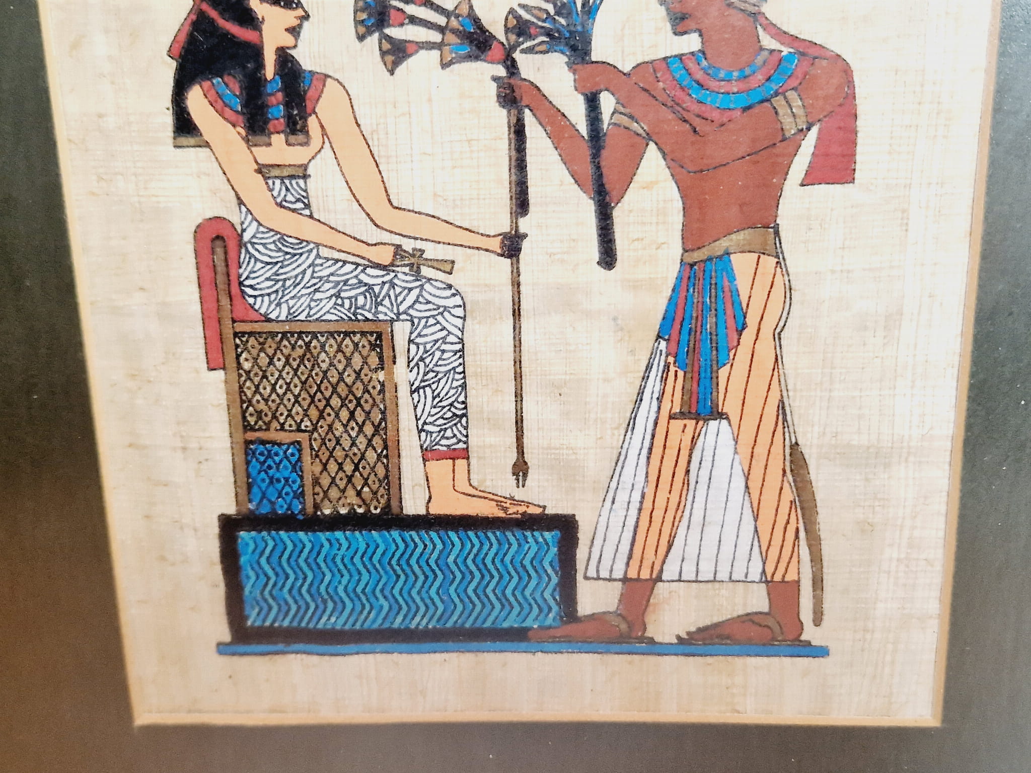 27,5 cm x 32,5 cm / PAMIĄTKA Z EGIPTU - OBRAZ / PAPIRUS W DREWNIANEJ RAMIE