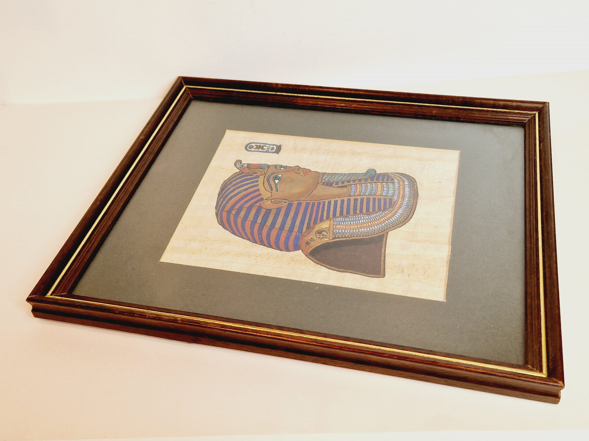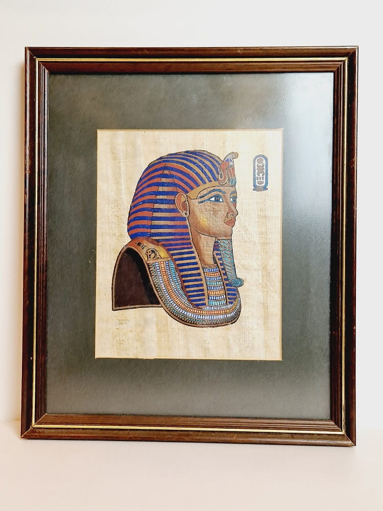 27,5 cm x 32,5 cm / PAMIĄTKA Z EGIPTU - OBRAZ / PAPIRUS W DREWNIANEJ RAMIE