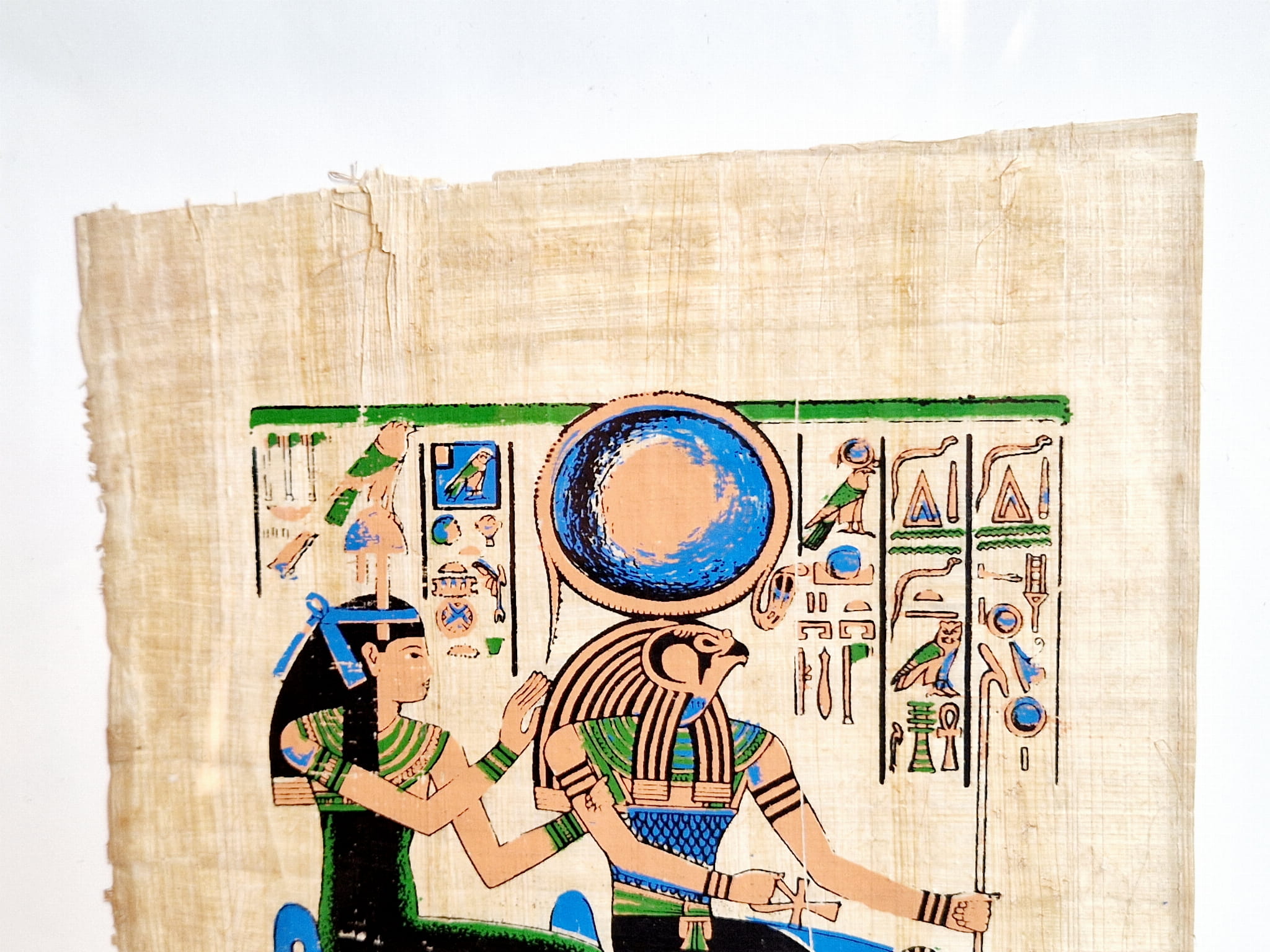 30,5 cm x 40,5 cm / PAPIRUS - OBRAZ W OSZKLONEJ RAMIE / PAMIĄTKA Z EGIPTU