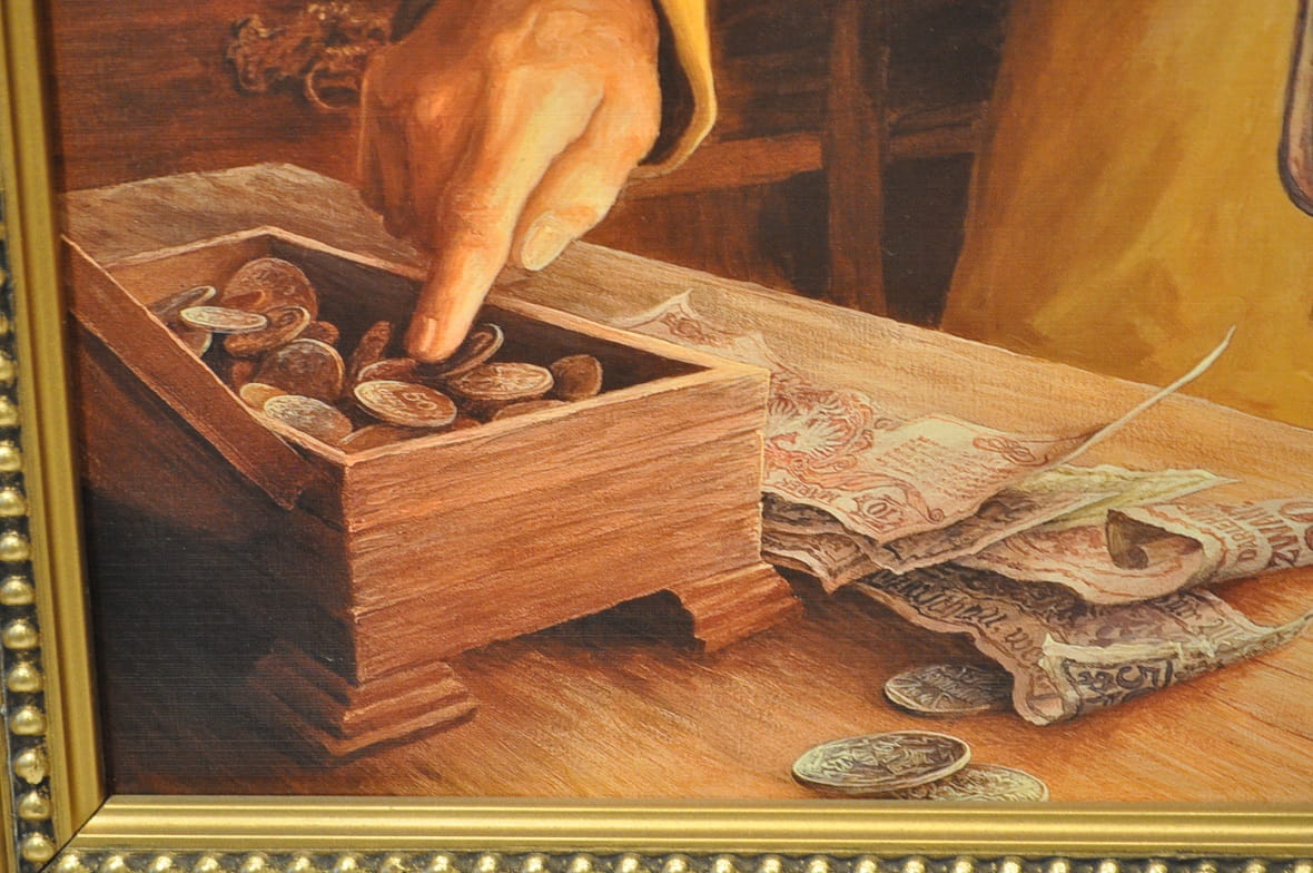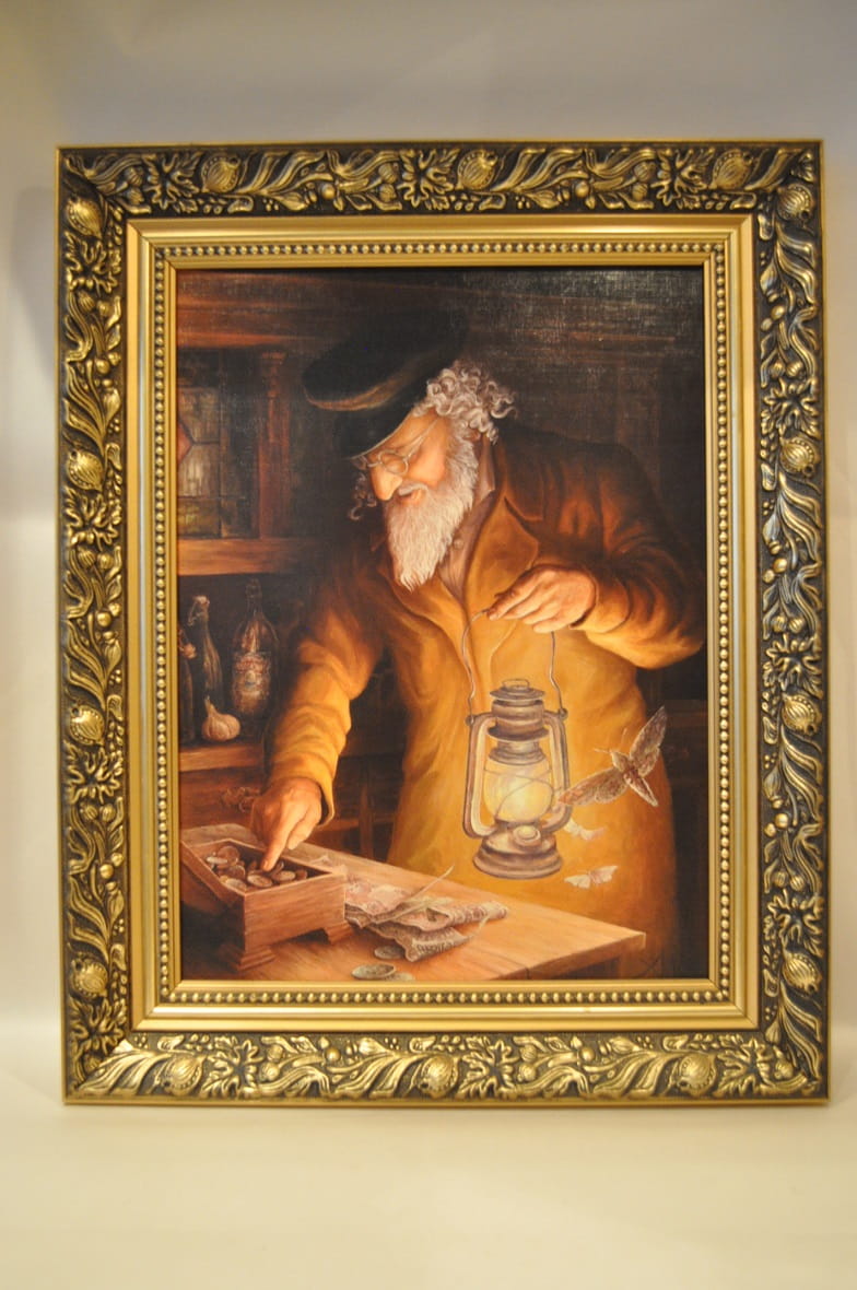 40,3 cm x 50,2 cm / "ŻYD LICZĄCY PIENIĄDZE" - OBRAZ W RAMIE