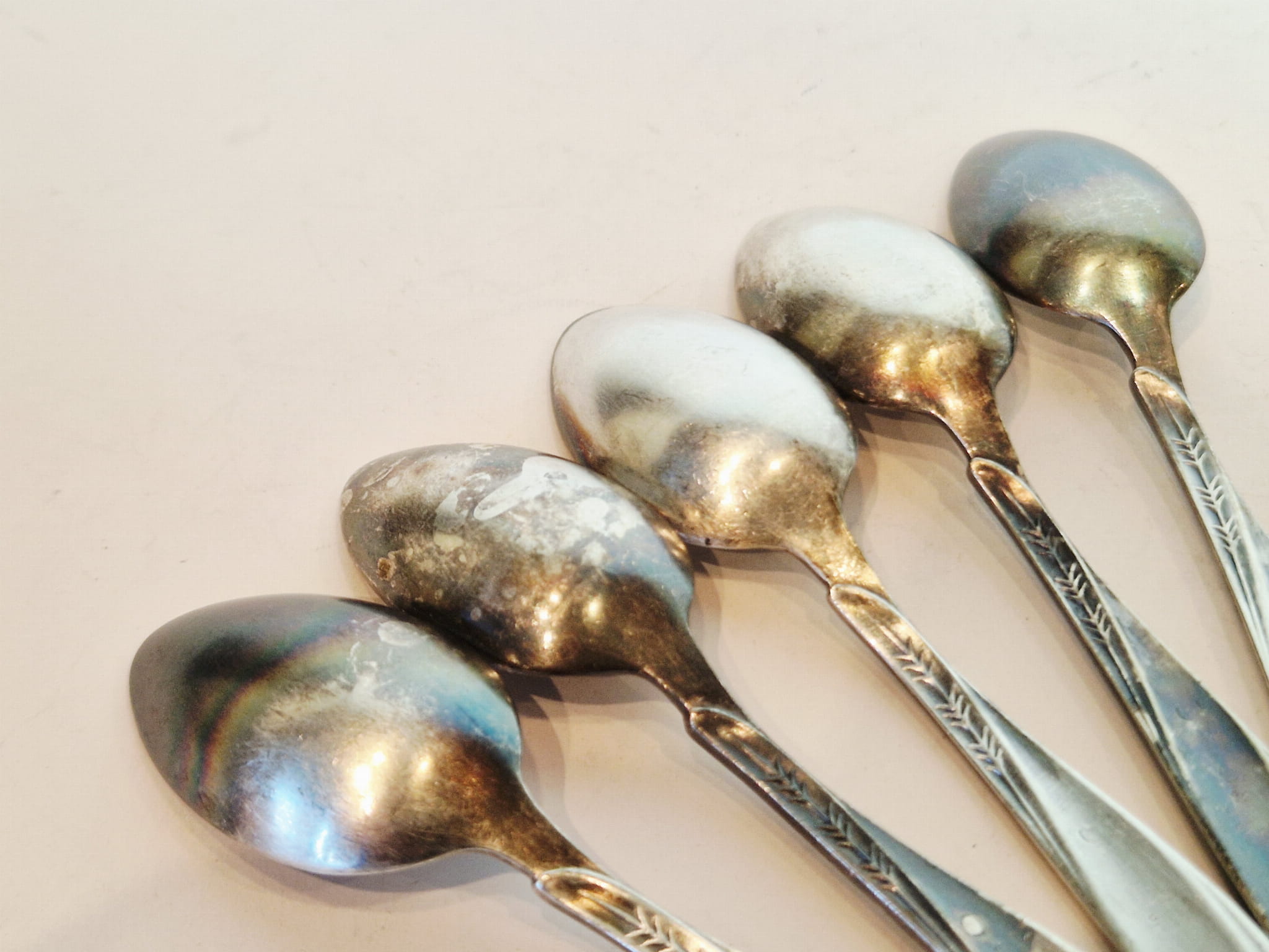 STARE (l. 70 / 80-te XX w) POSREBRZANE (grubo srebrzone) ŁYŻECZKI DO KAWY (11,0 cm)