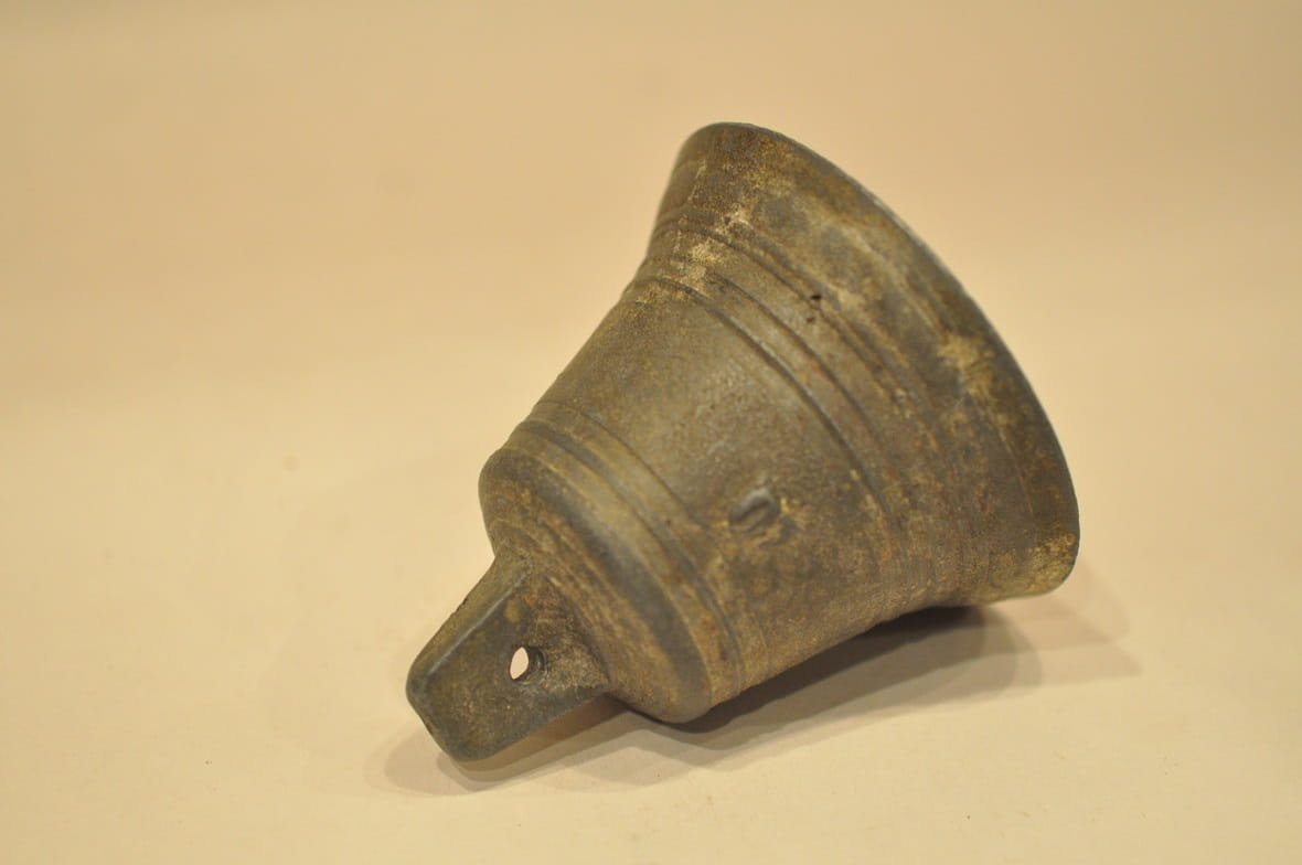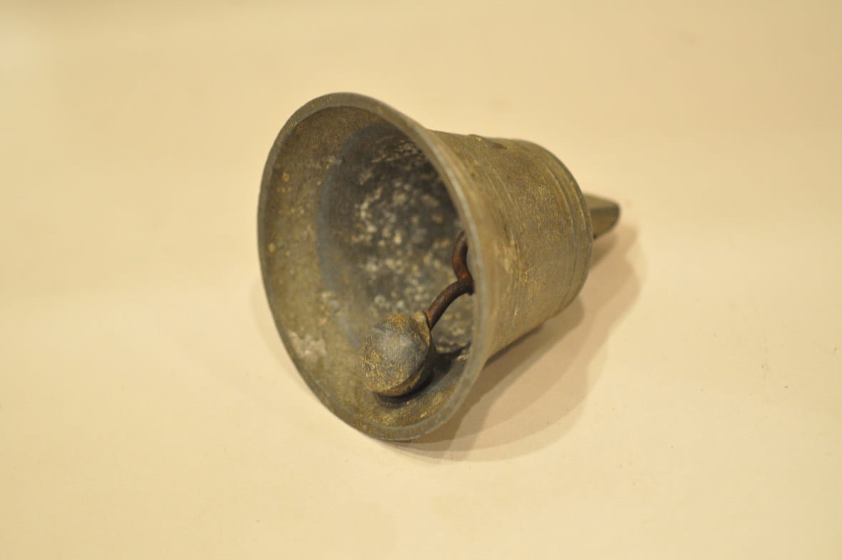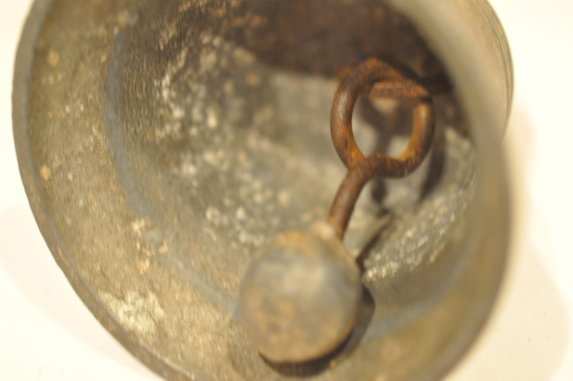 Dzwonek nie był czyszczony - pokryty jest oryginalną, starą, ciemną patyną (wewnątrz śniedziowy nalot).