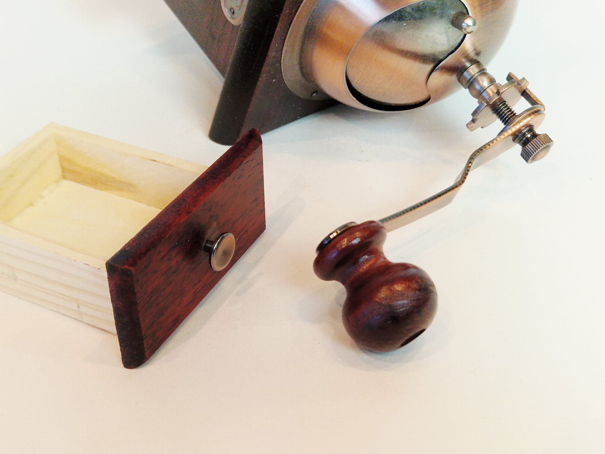 STARY (l. 90-te XX w) STYLIZOWANY KOLEKCJONERSKI DREWNIANY MŁYNEK DO KAWY
