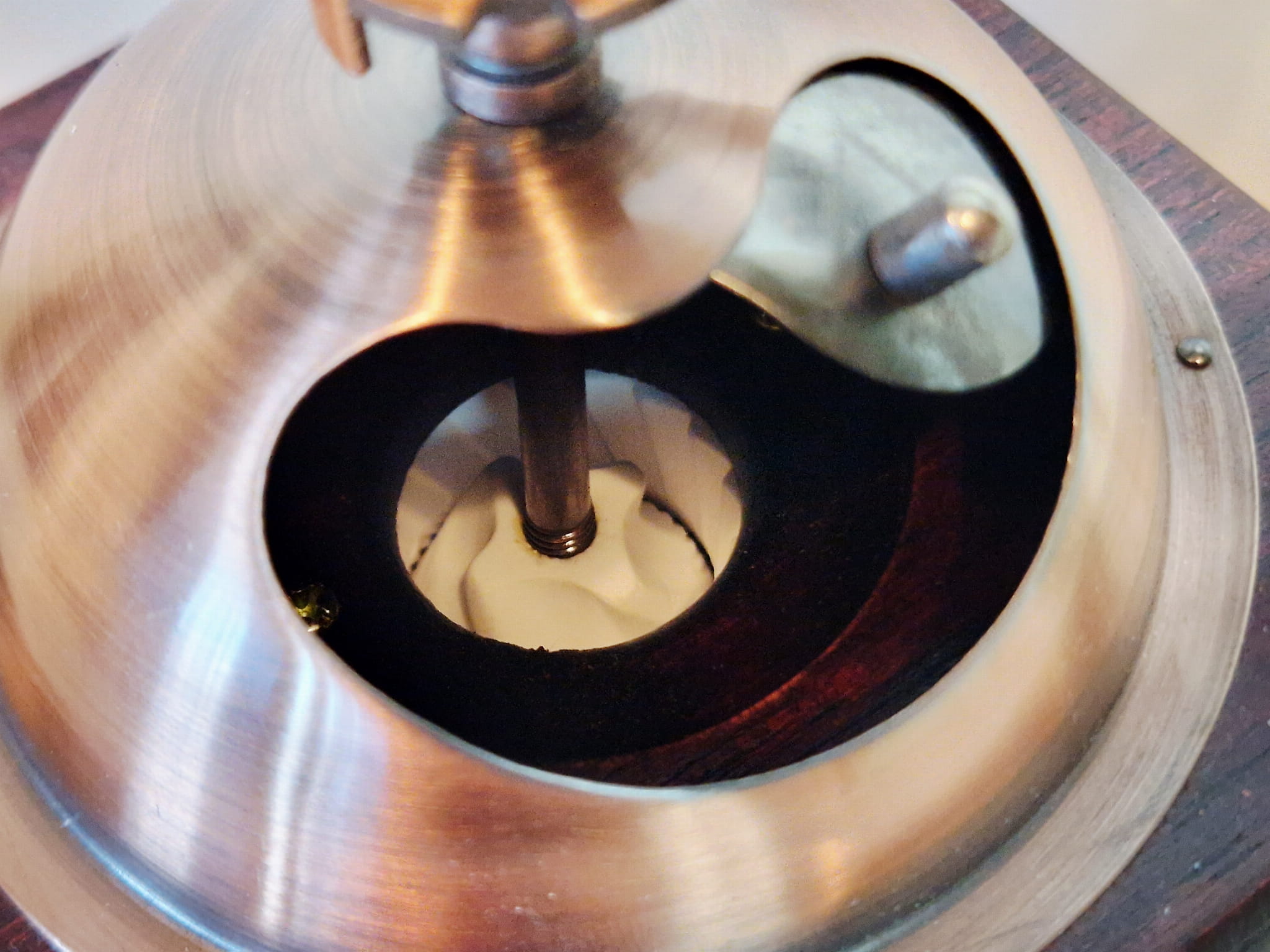 komora wsypu / mielenia, pokrętło, szyld: stal miedziowana