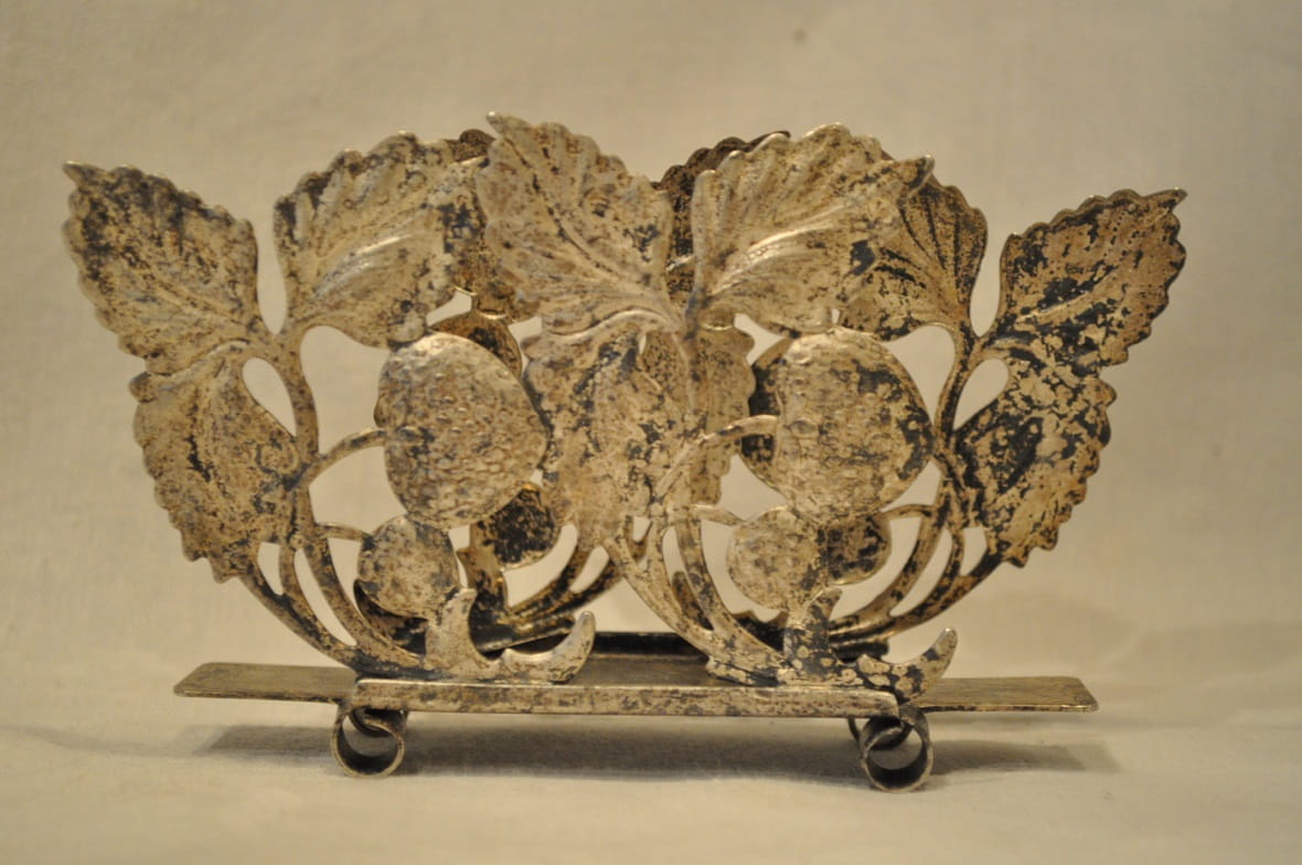 ZABYTKOWY (l. 60 / 70-te XX w) POSREBRZANY SERWETNIK "poziomki"