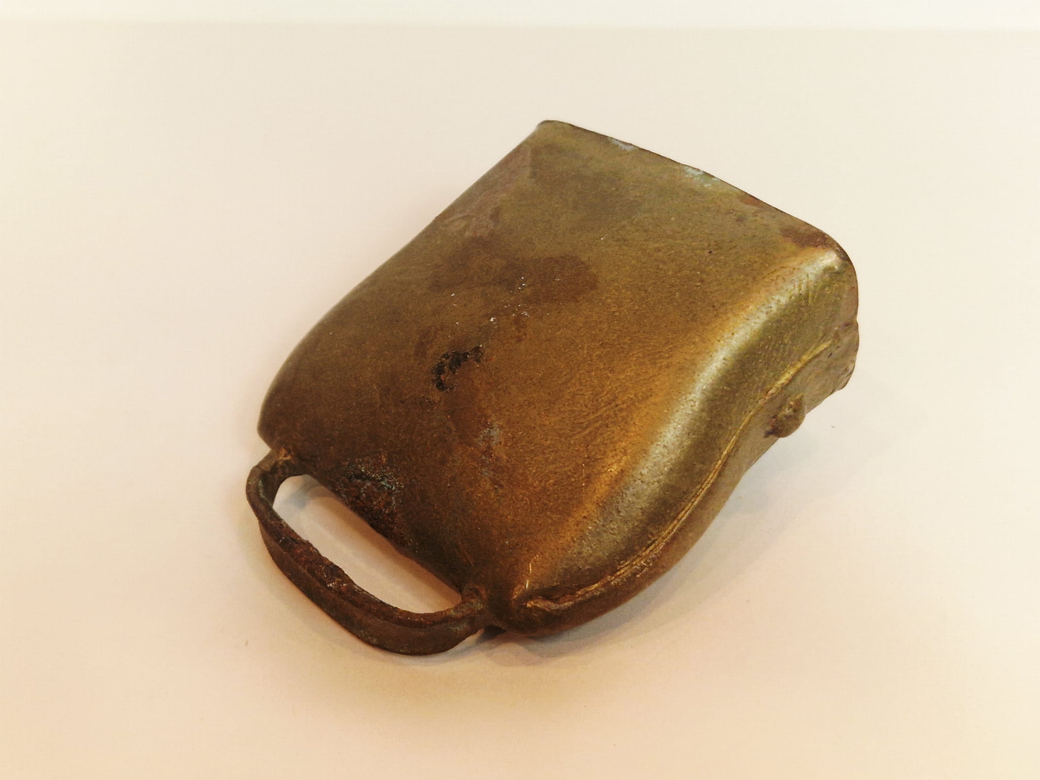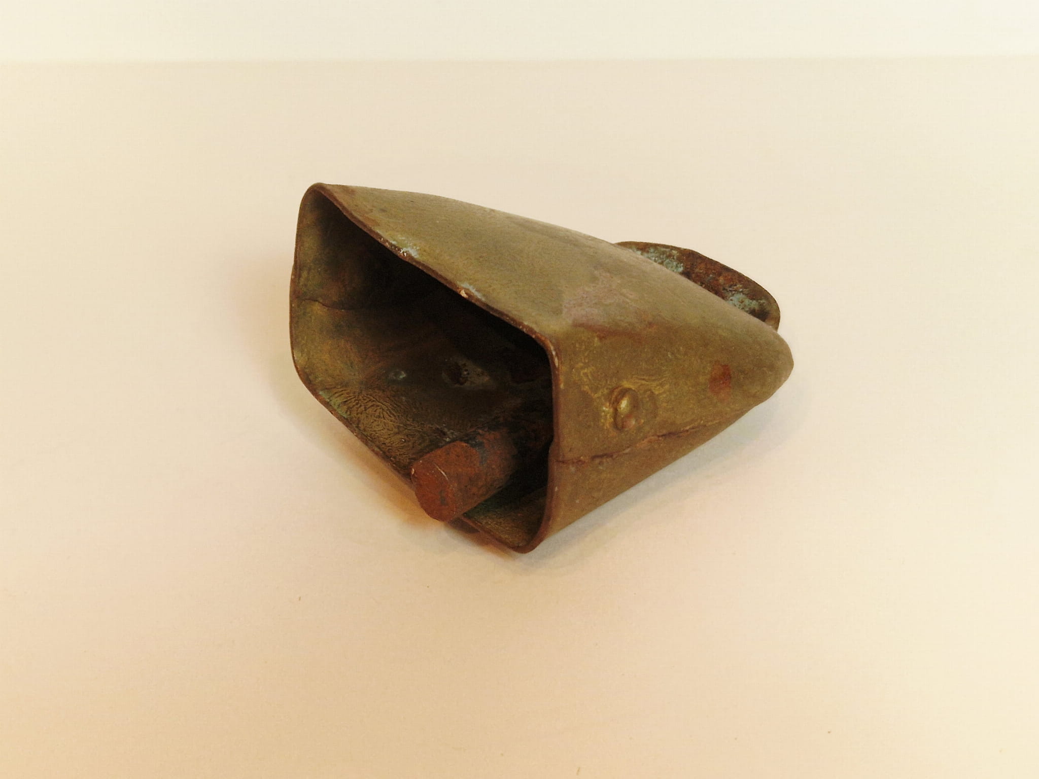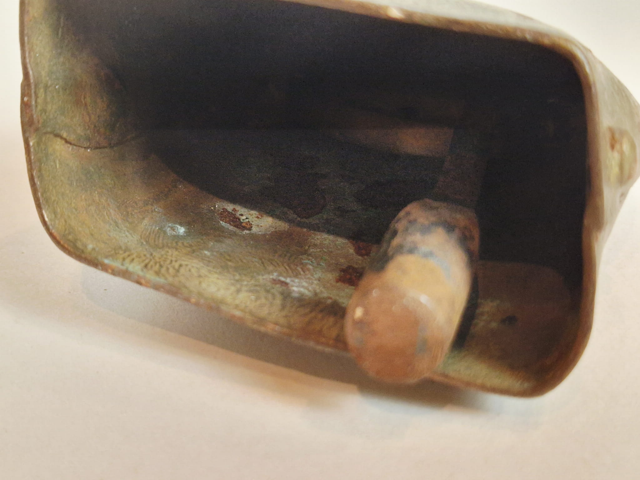 STARY (I poł. XX w) KOLEKCJONERSKI MASYWNY (8,7 cm / 183 g) ŻELAZNY DZWONEK PASTERSKI