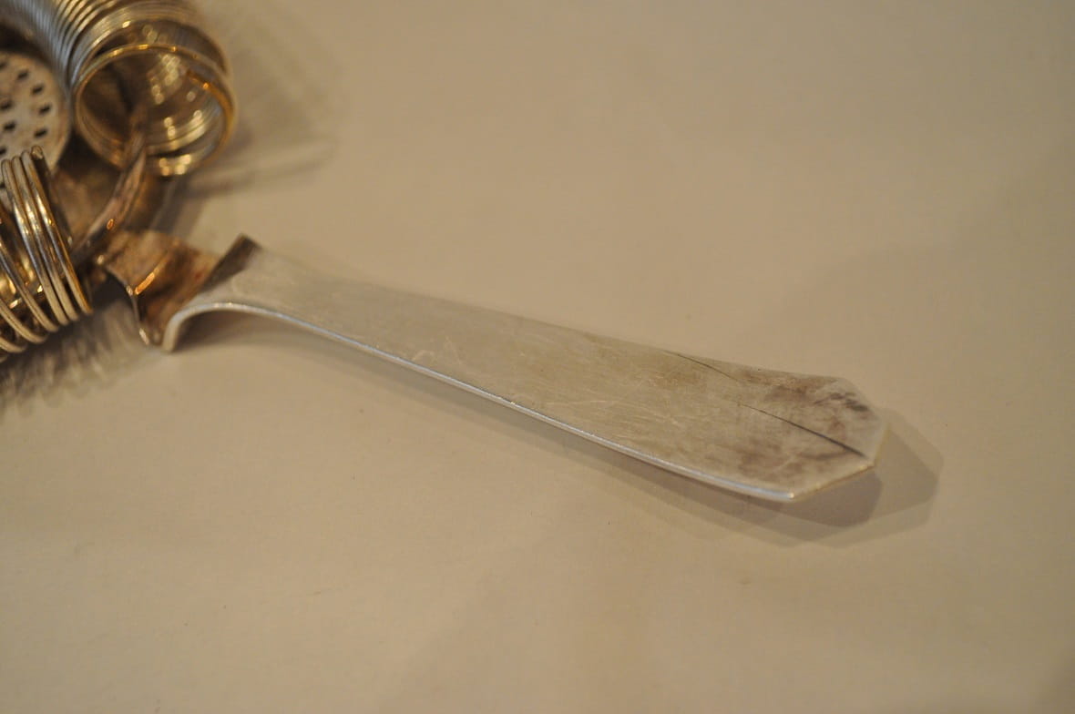 Sitko i posrebrzana sprężyna trzepaczki bez przetarć srebrzenia.