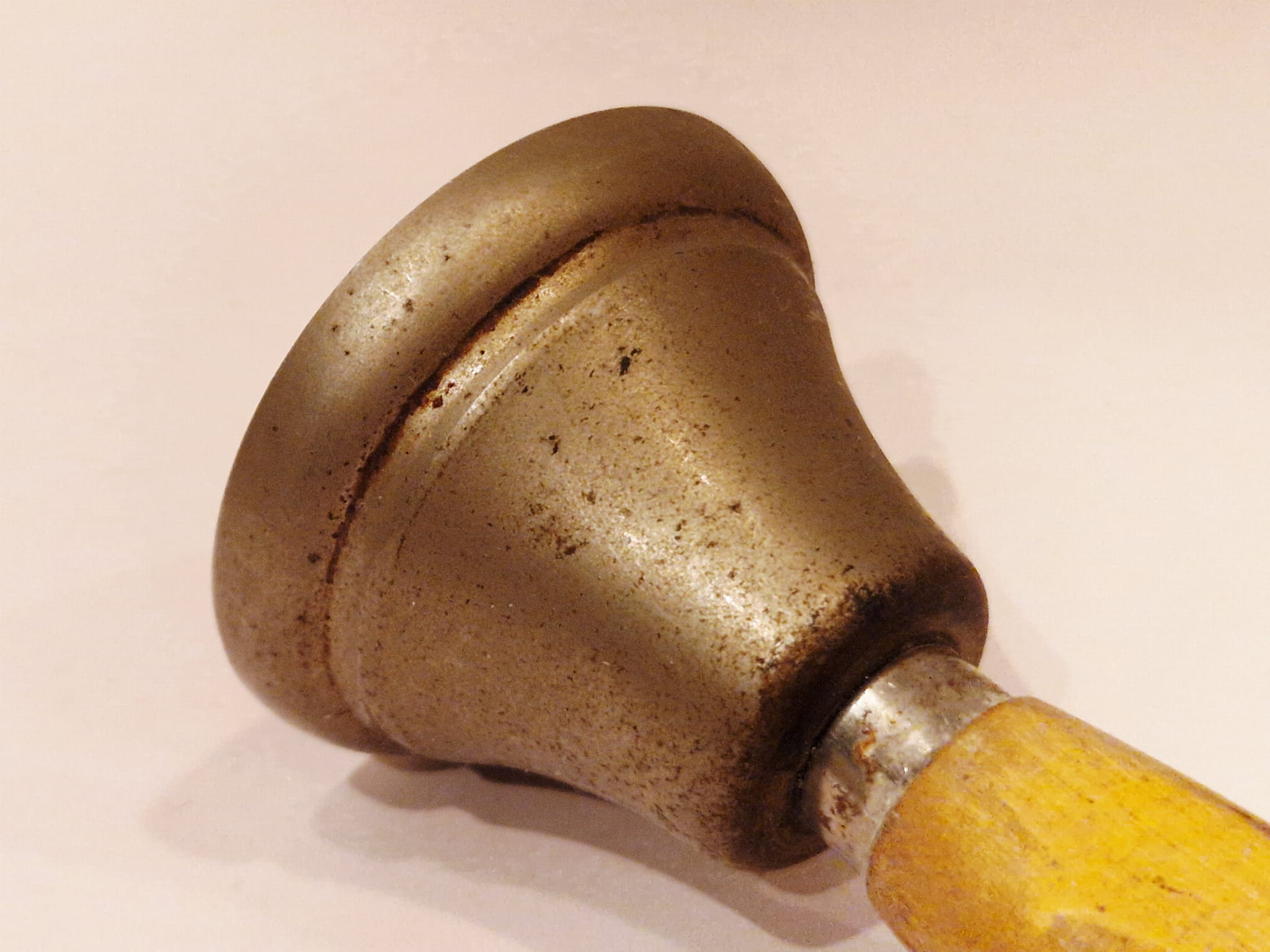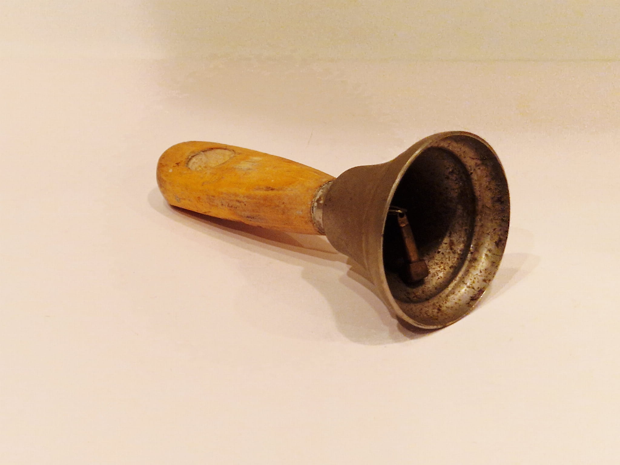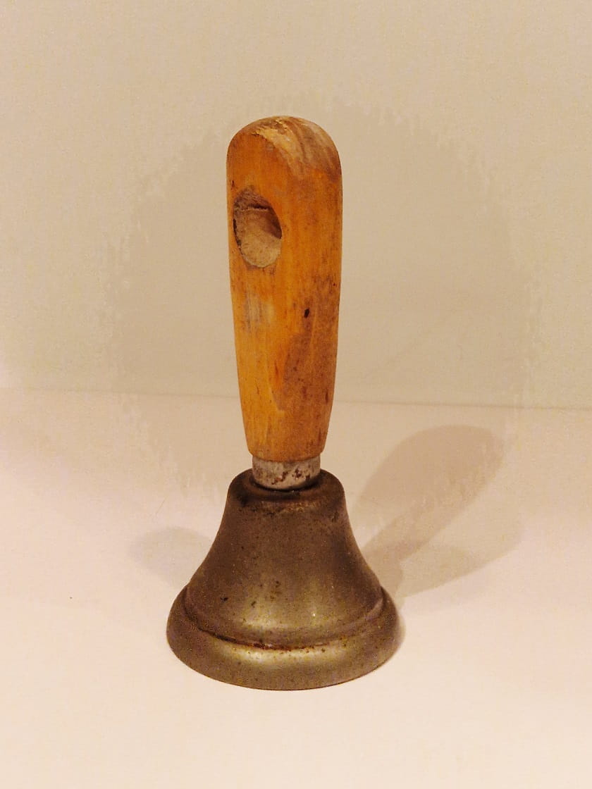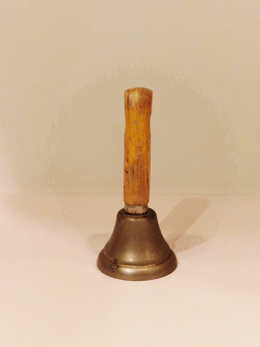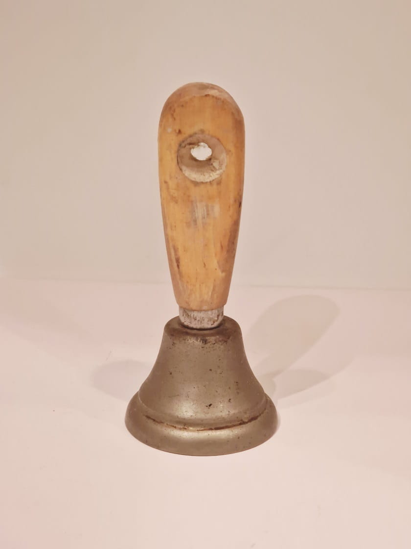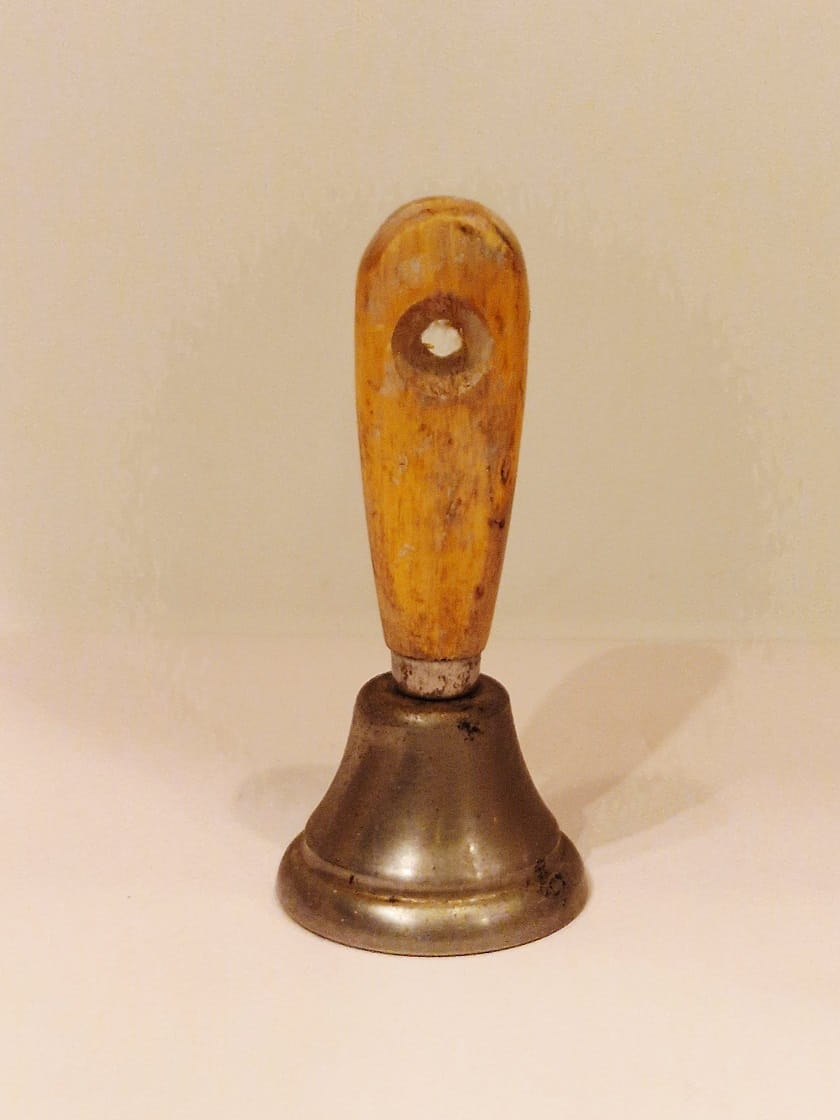 (I poł. XX w) STARY DZWONEK STOJĄCY Z DREWNIANĄ RĄCZKĄ